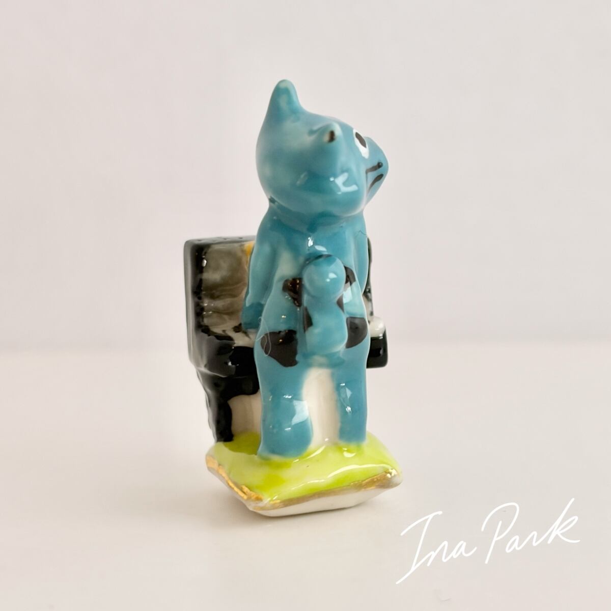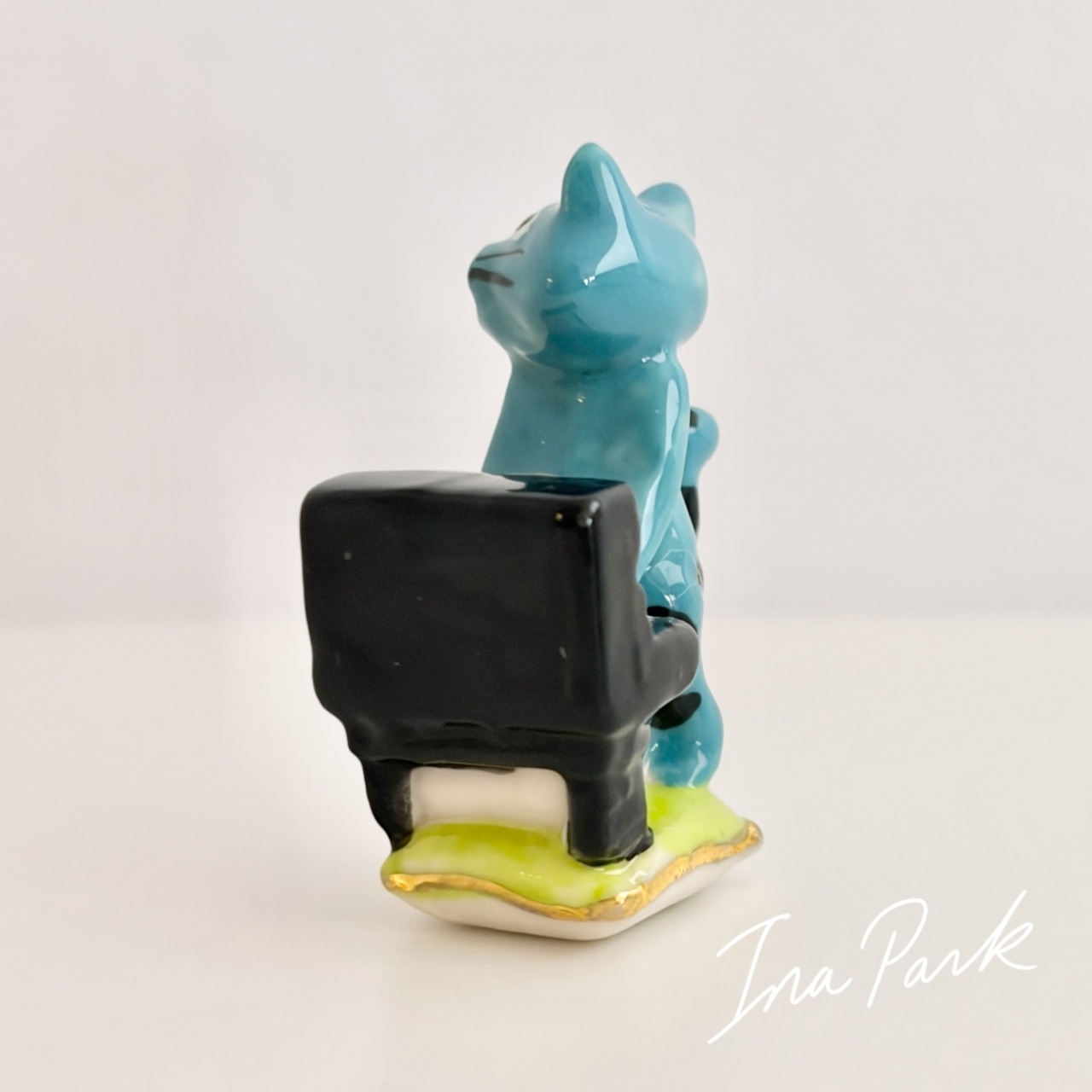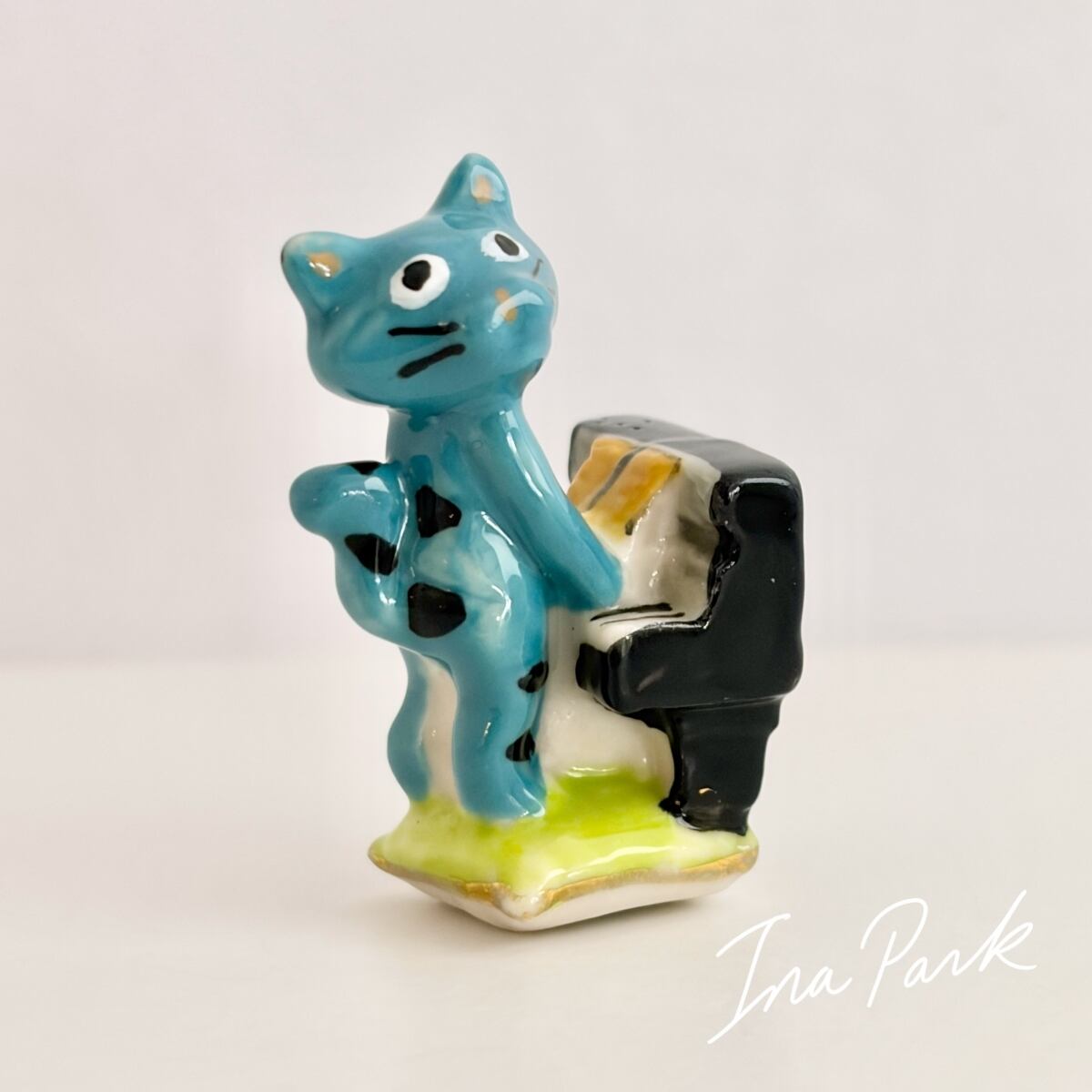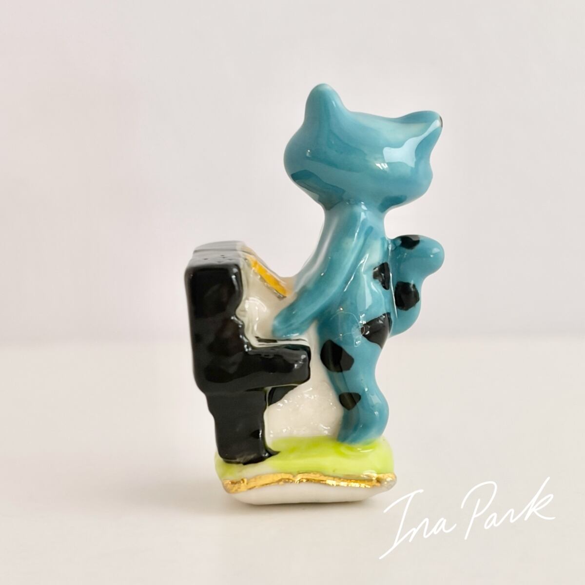 ピアノを弾く青い猫のフェーヴ ネコ フェーブ フランス製 ミニチュア 陶器 雑貨 置物