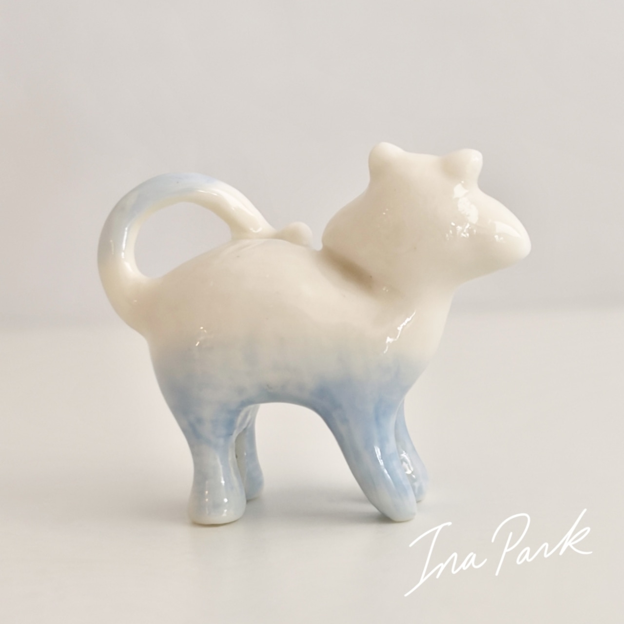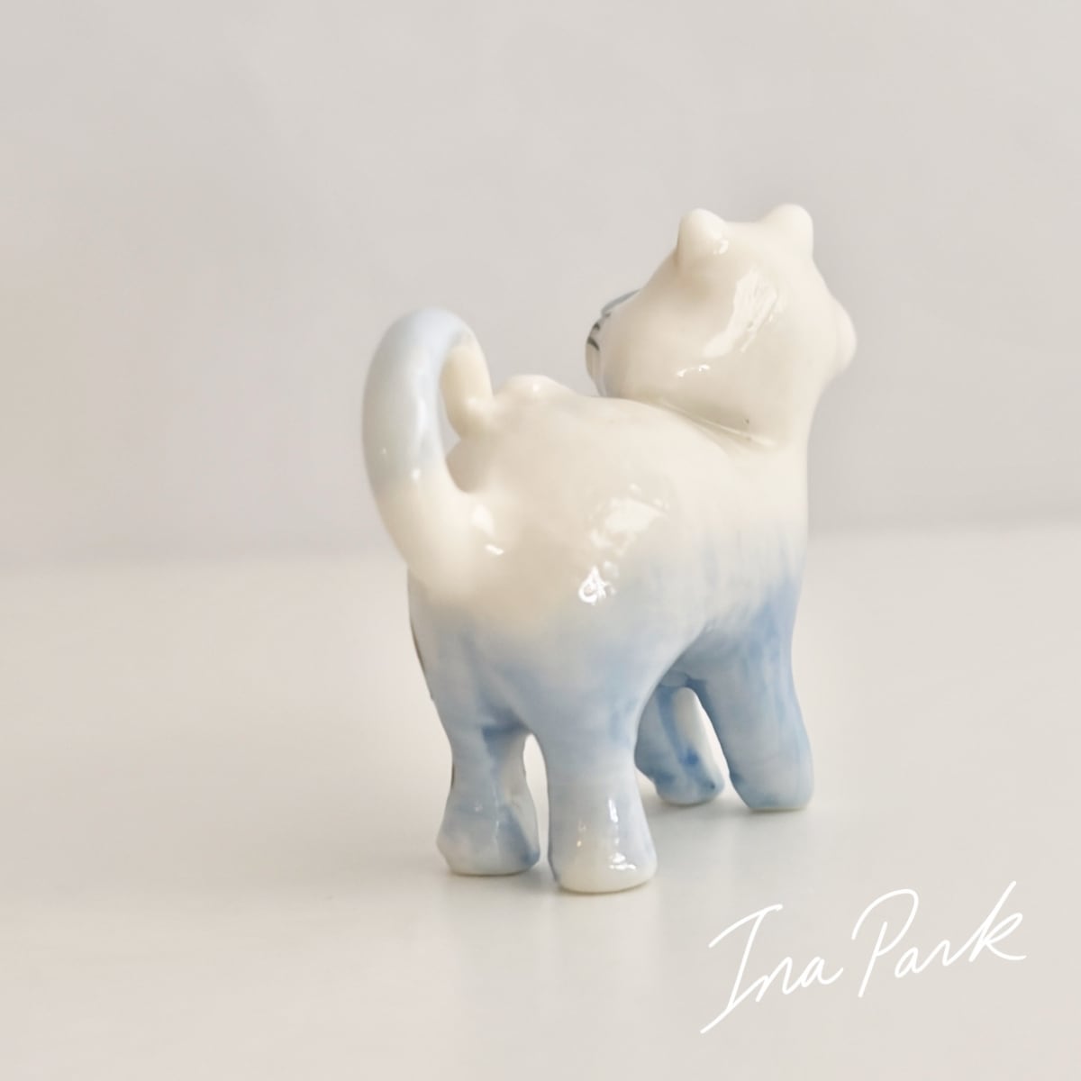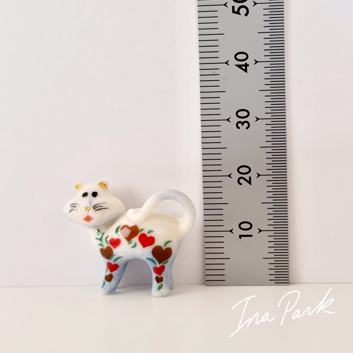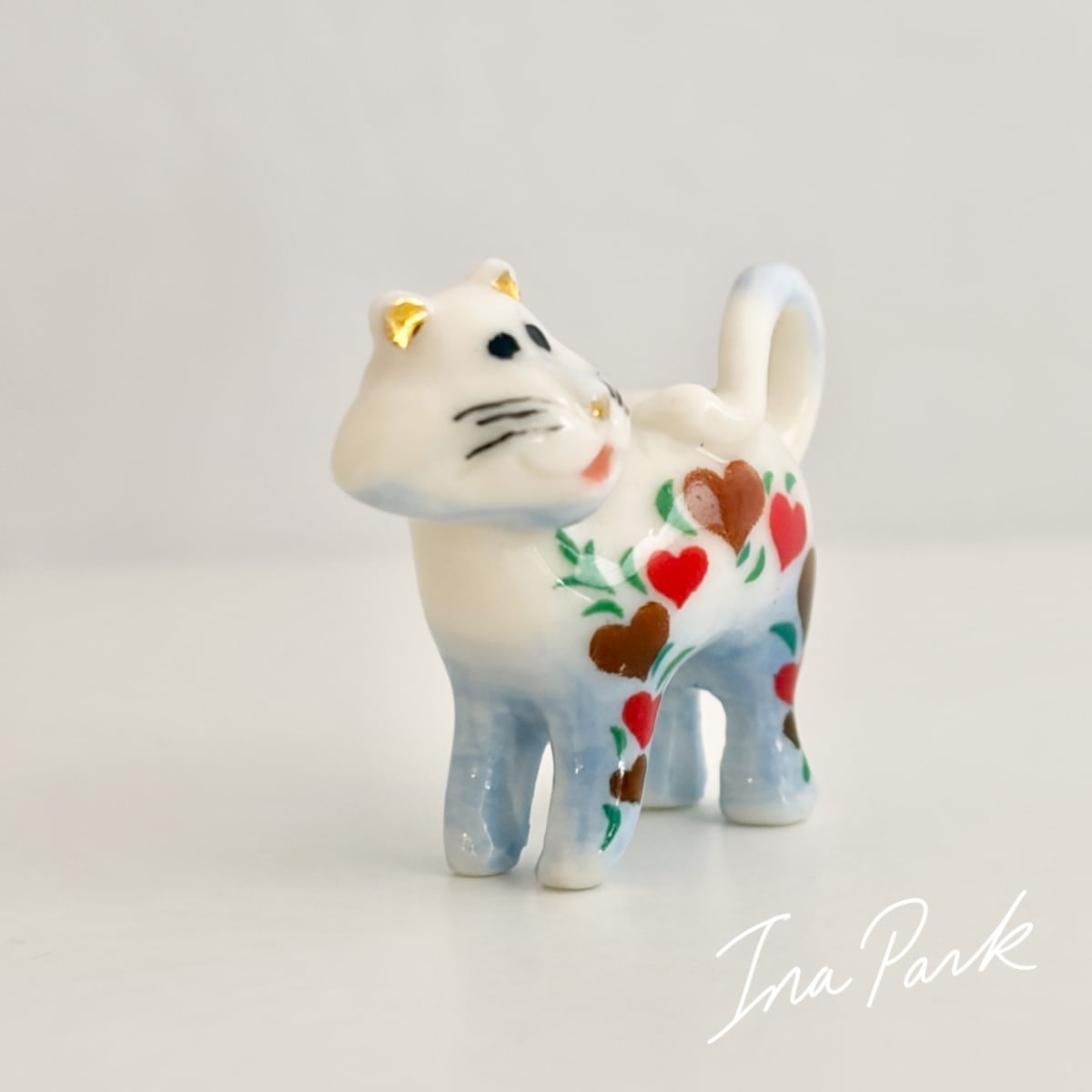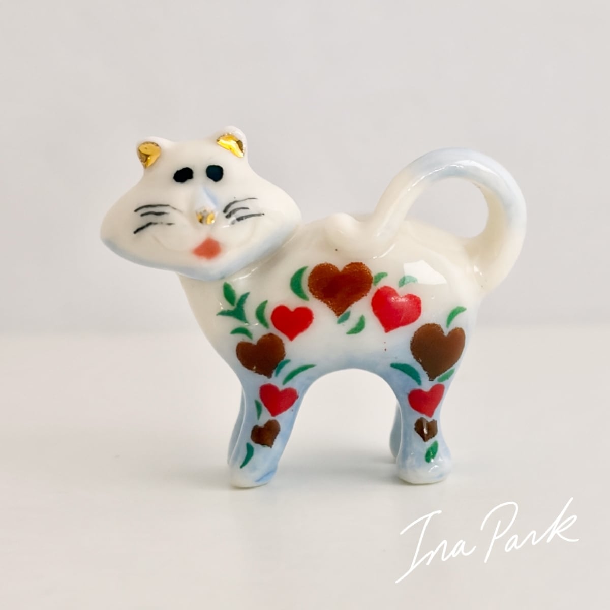 金彩の耳 ハート模様の猫 ネコのフェーヴ フェーブ フランス製 ミニチュア 陶器 雑貨 置物