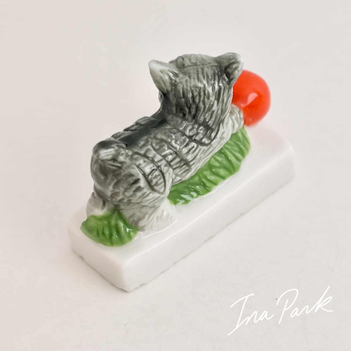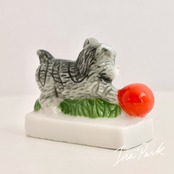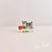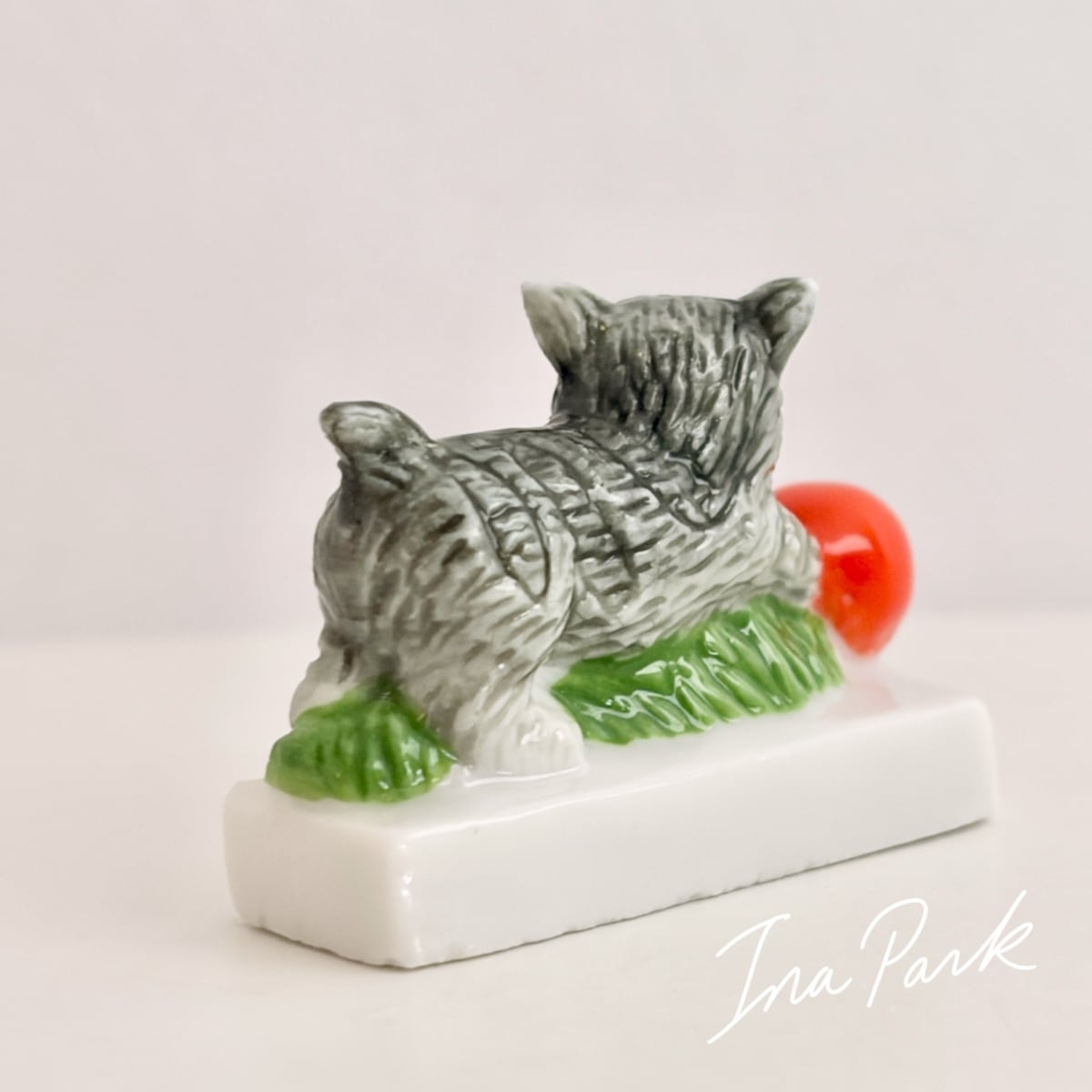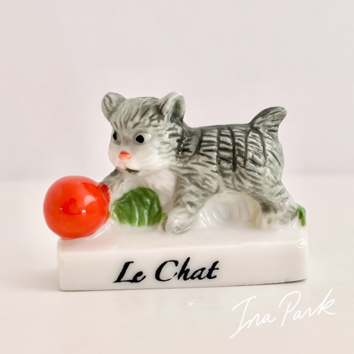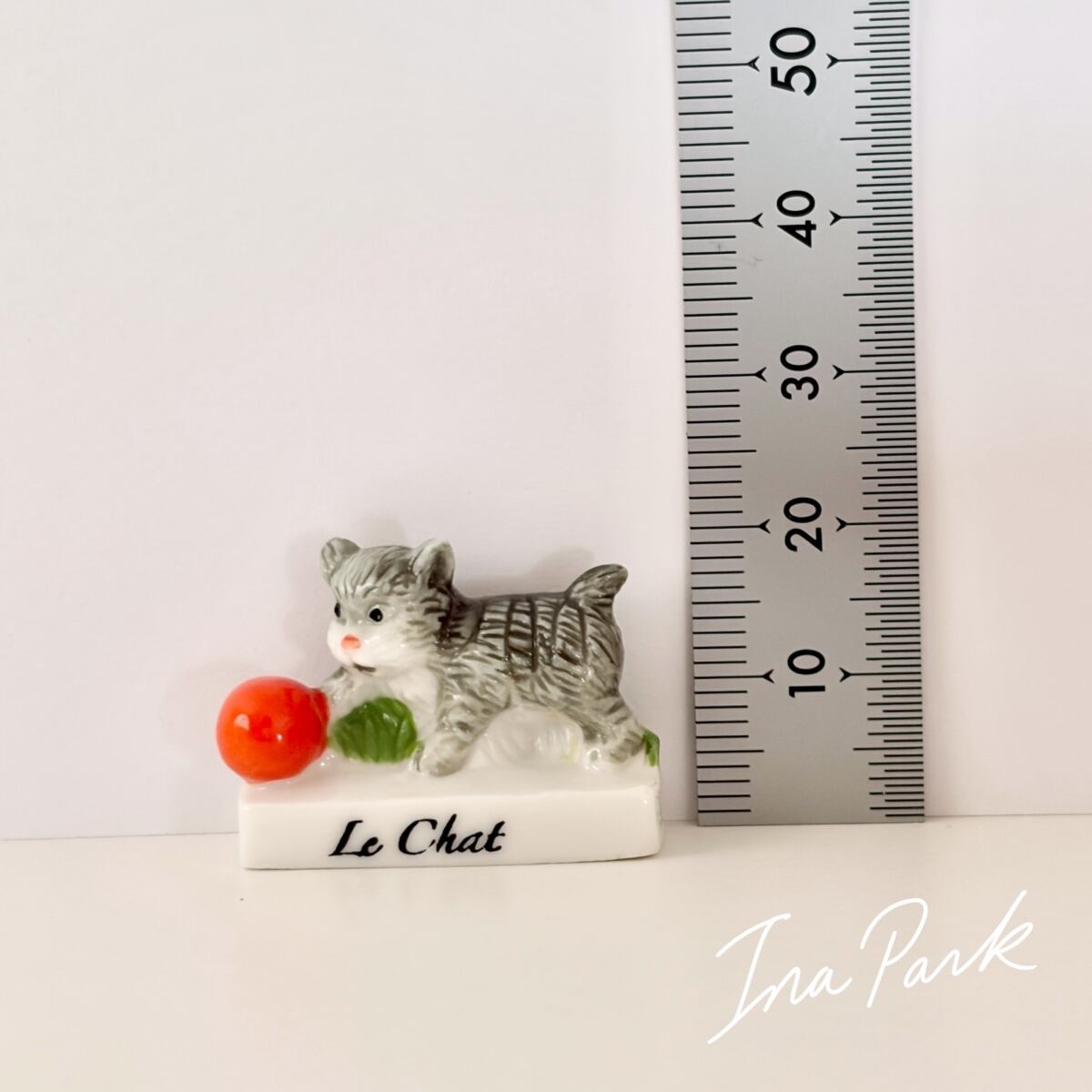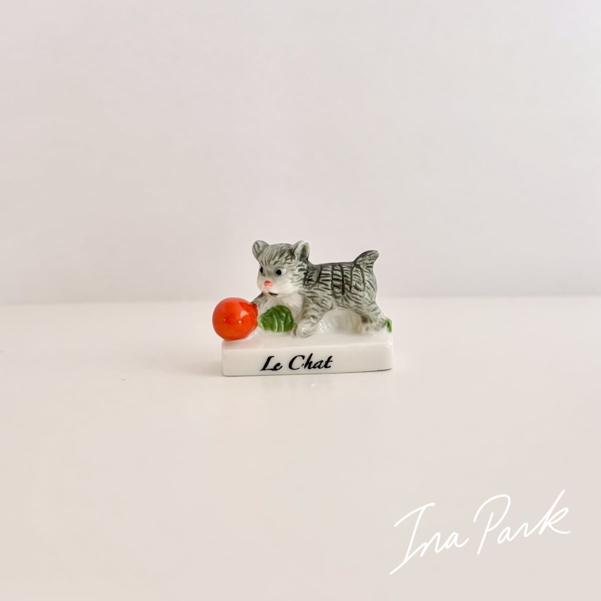 ボールを追いかける猫 ネコのフェーヴ フェーブ フランス製 ミニチュア 陶器 雑貨 置物