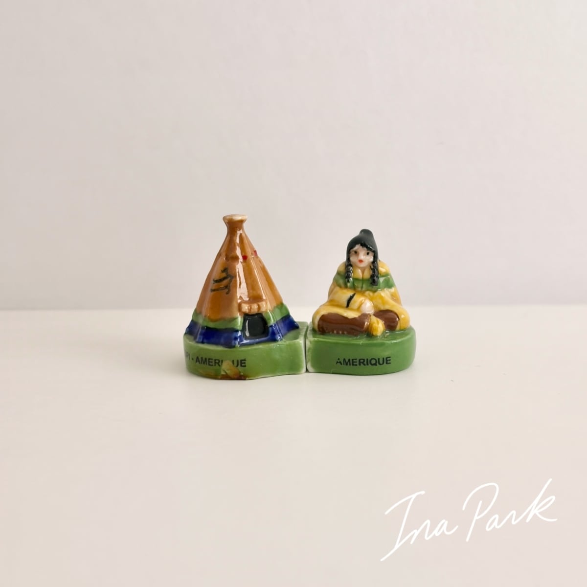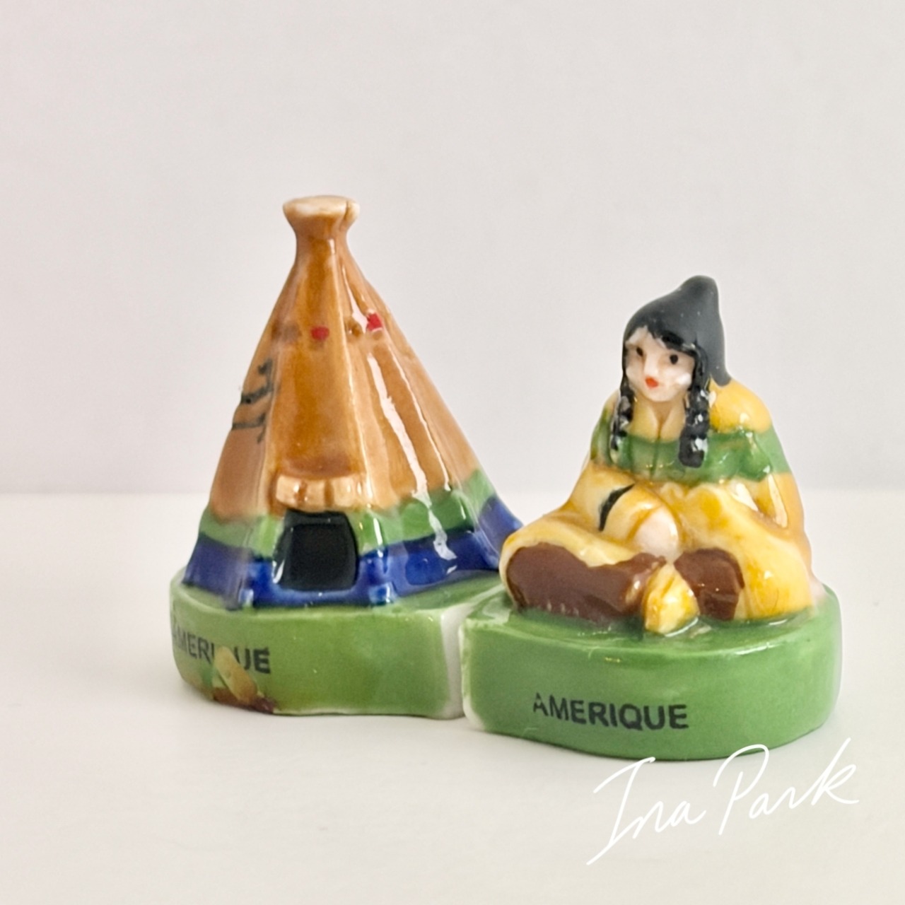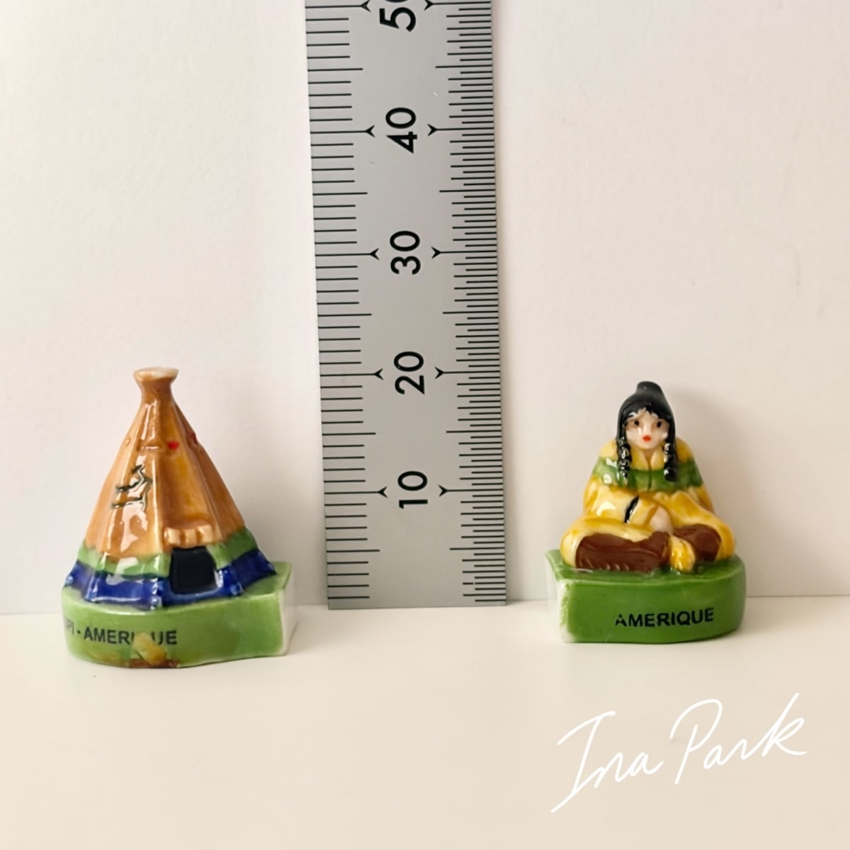 【アウトレット価格】1997 ティピーとインディアン フェーヴ 2点セット 世界の家 フェーブ フランス製 ミニチュア 陶器 雑貨 置物