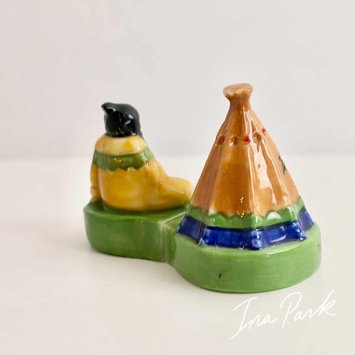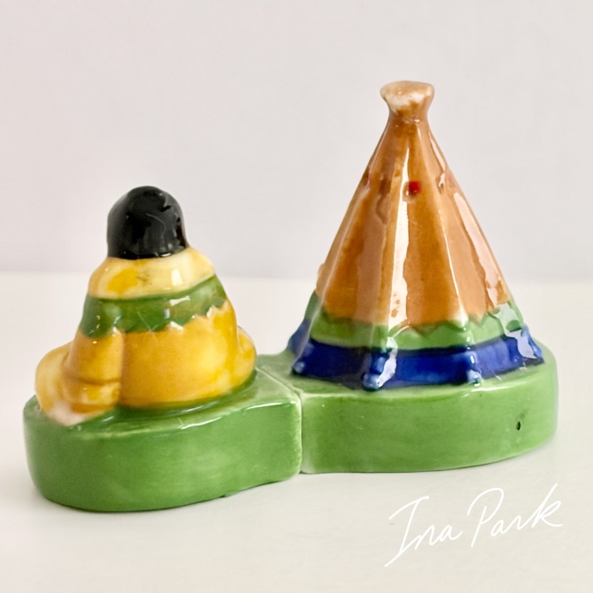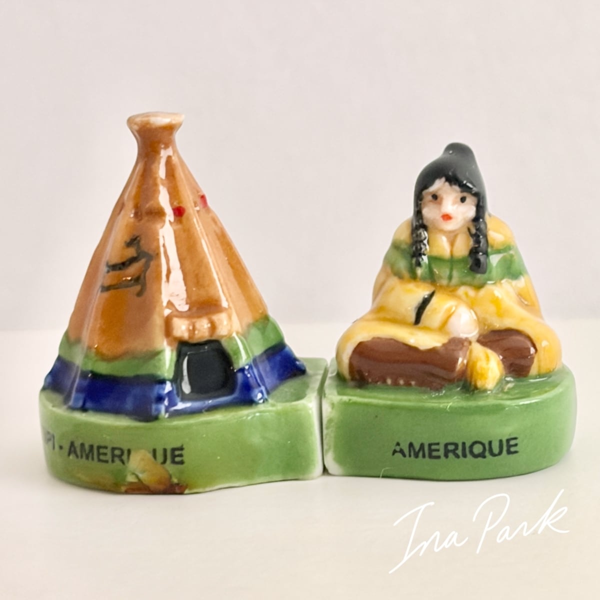 【アウトレット価格】1997 ティピーとインディアン フェーヴ 2点セット 世界の家 フェーブ フランス製 ミニチュア 陶器 雑貨 置物