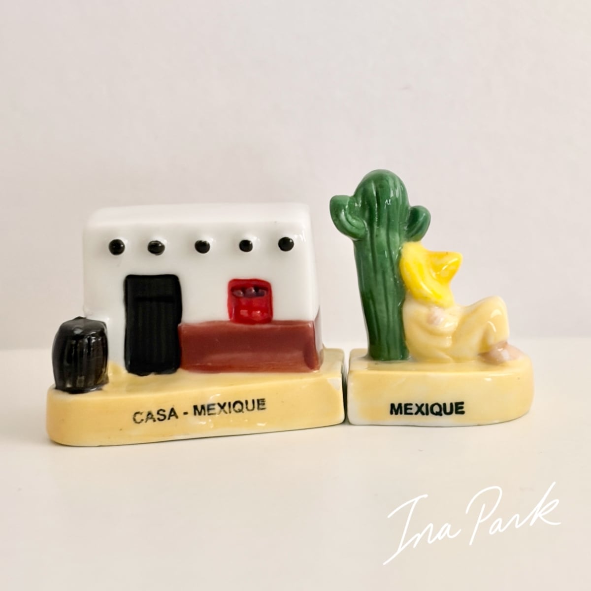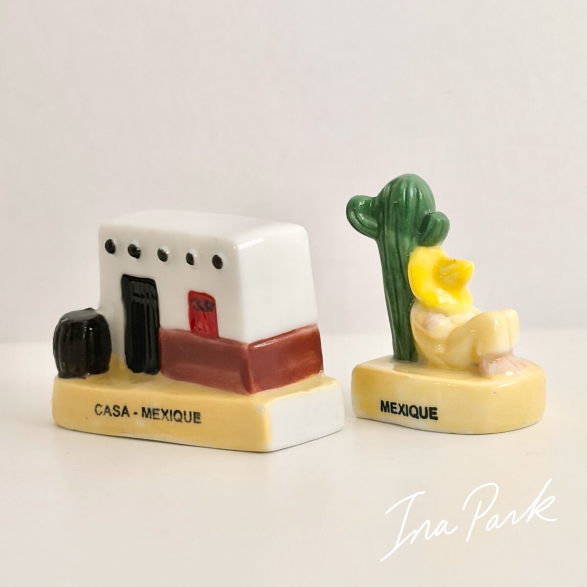 1997 メキシコの家と住人 フェーヴ 2点セット 世界の家 フェーブ フランス製 ミニチュア 陶器 雑貨 置物
