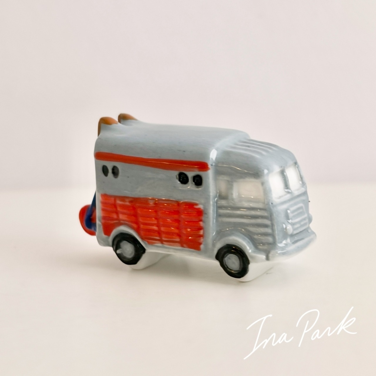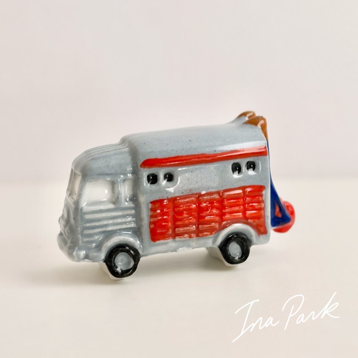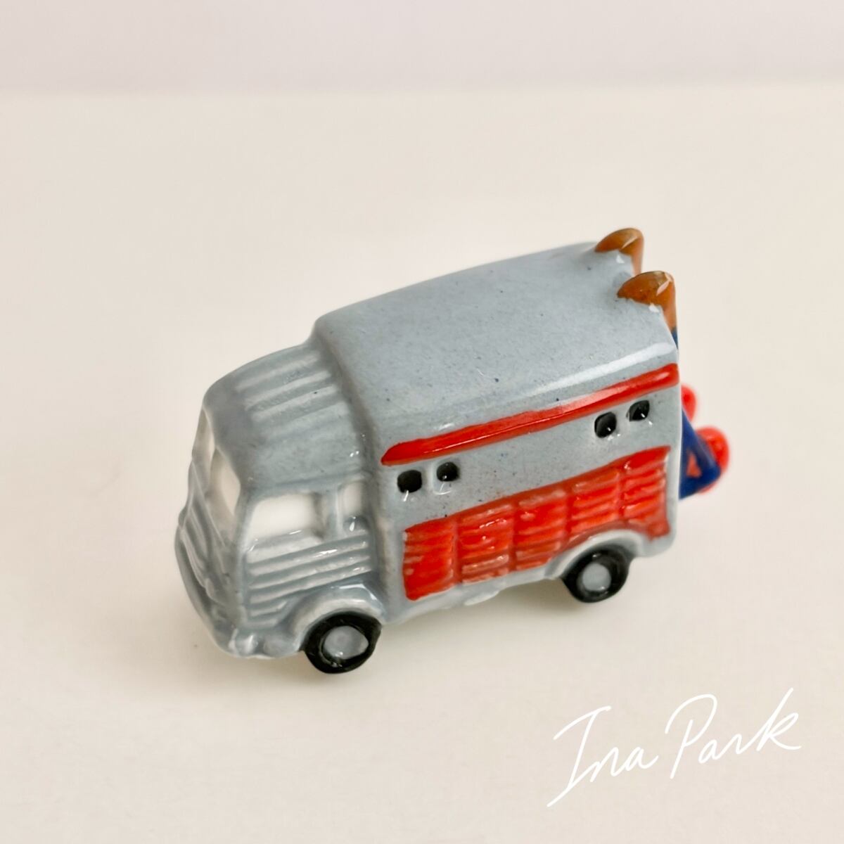 馬運搬車 トランスポーター 競馬のフェーヴ フェーブ フランス製 ミニチュア 陶器 雑貨 置物