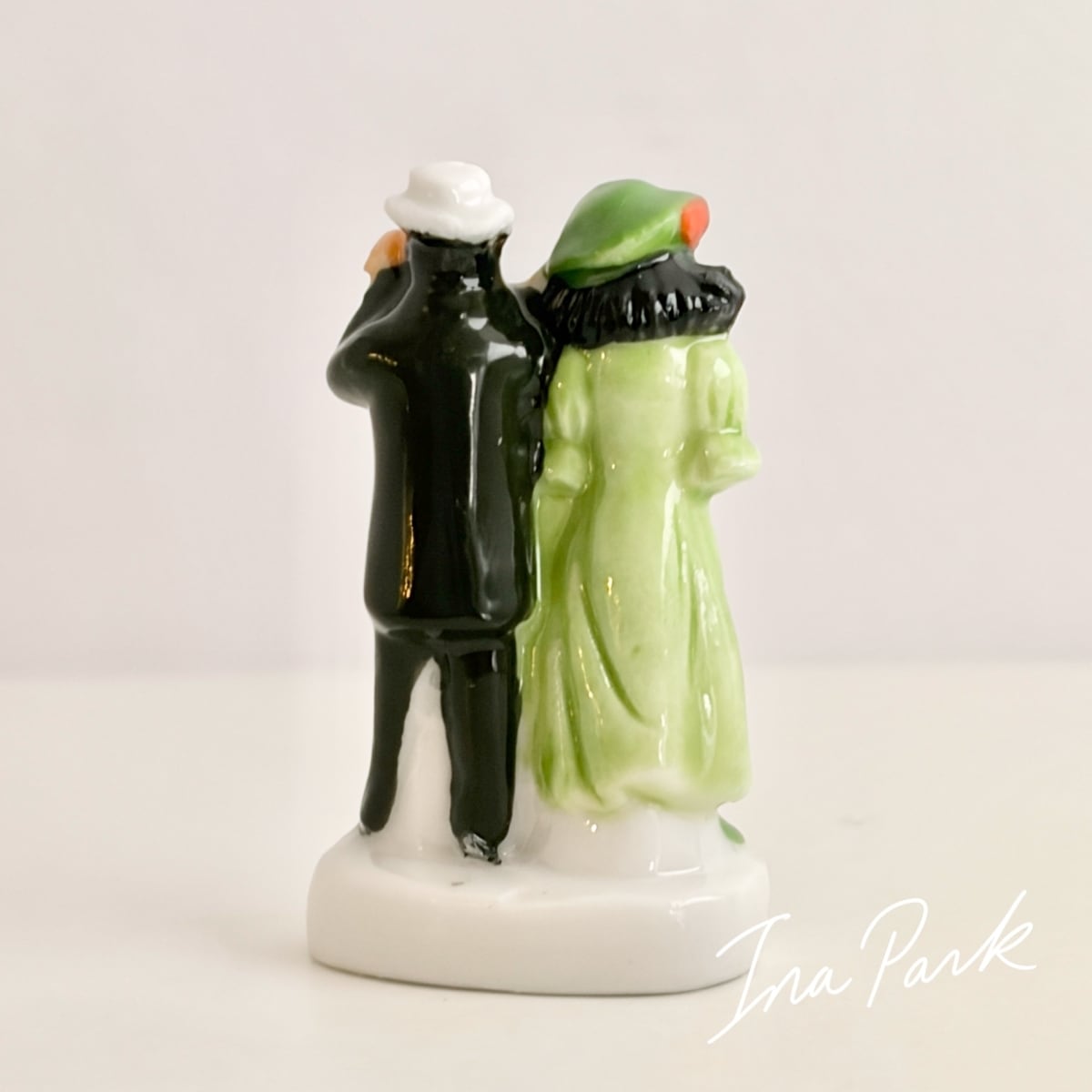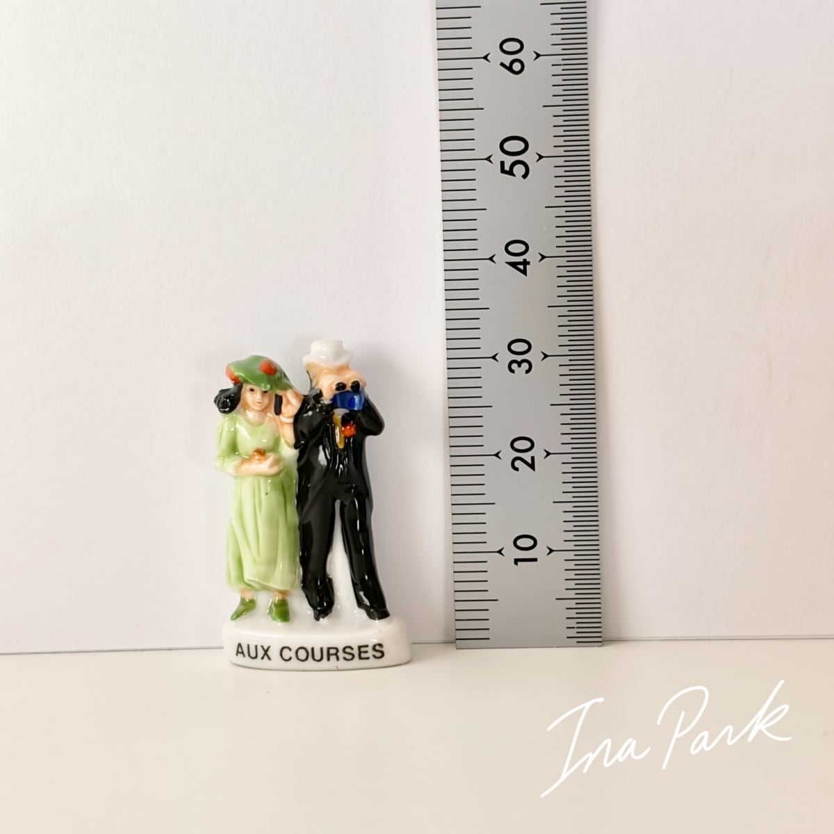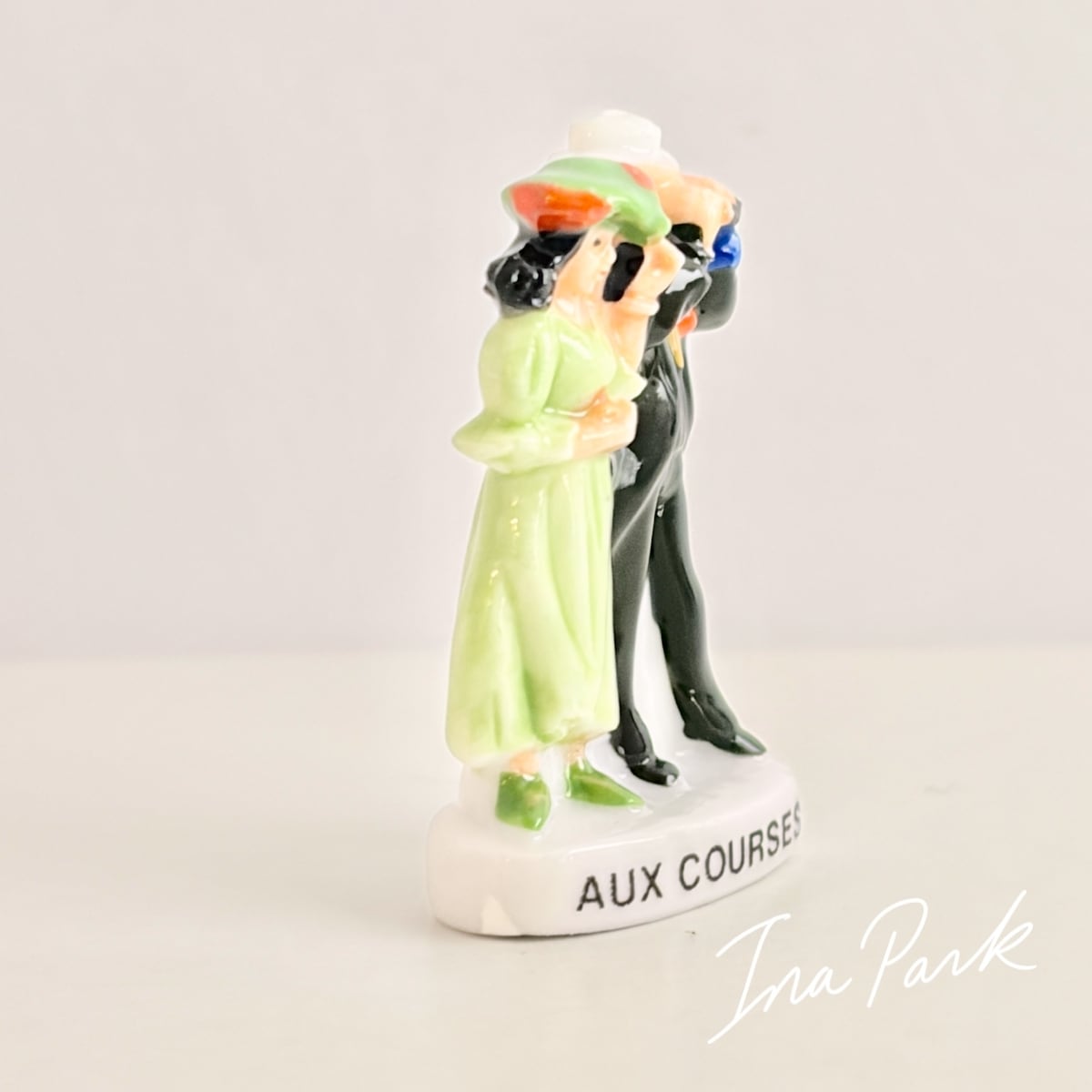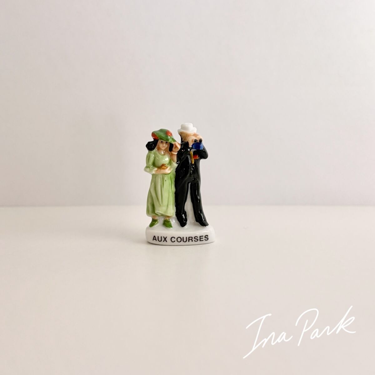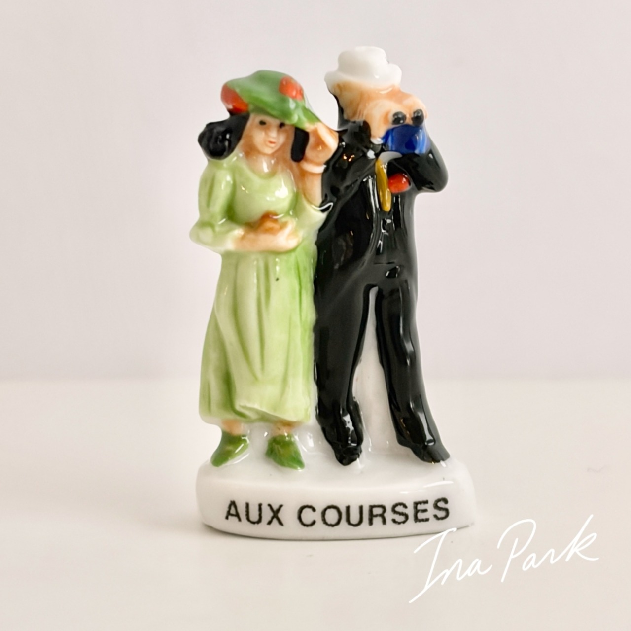 競馬を観戦する男女のフェーヴ うま フェーブ フランス製 ミニチュア 陶器 雑貨 置物