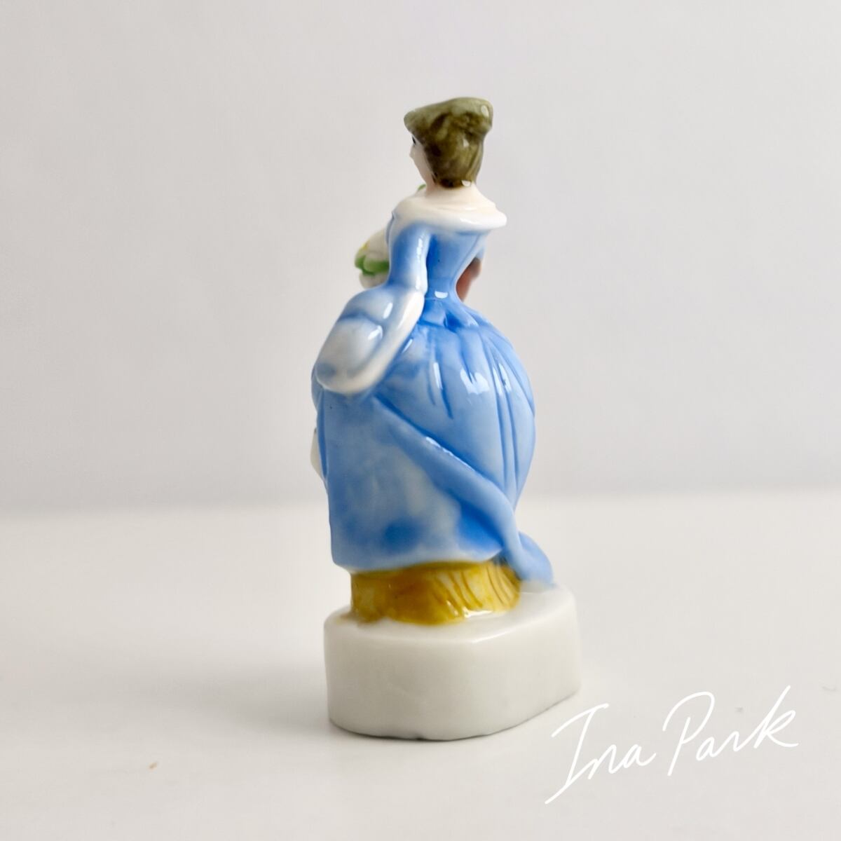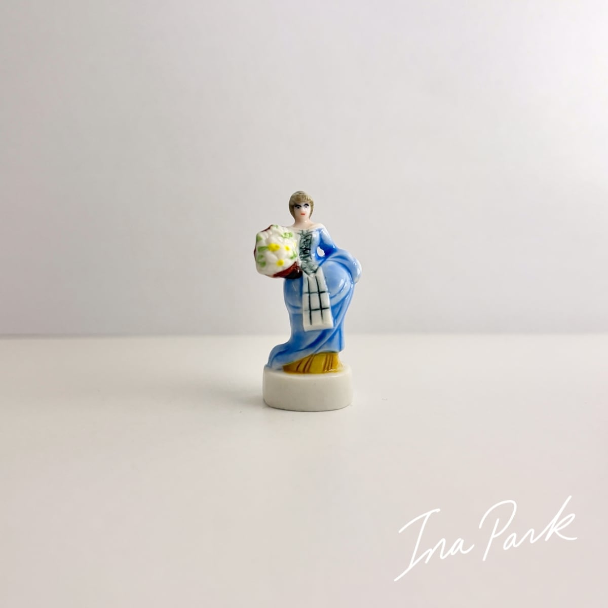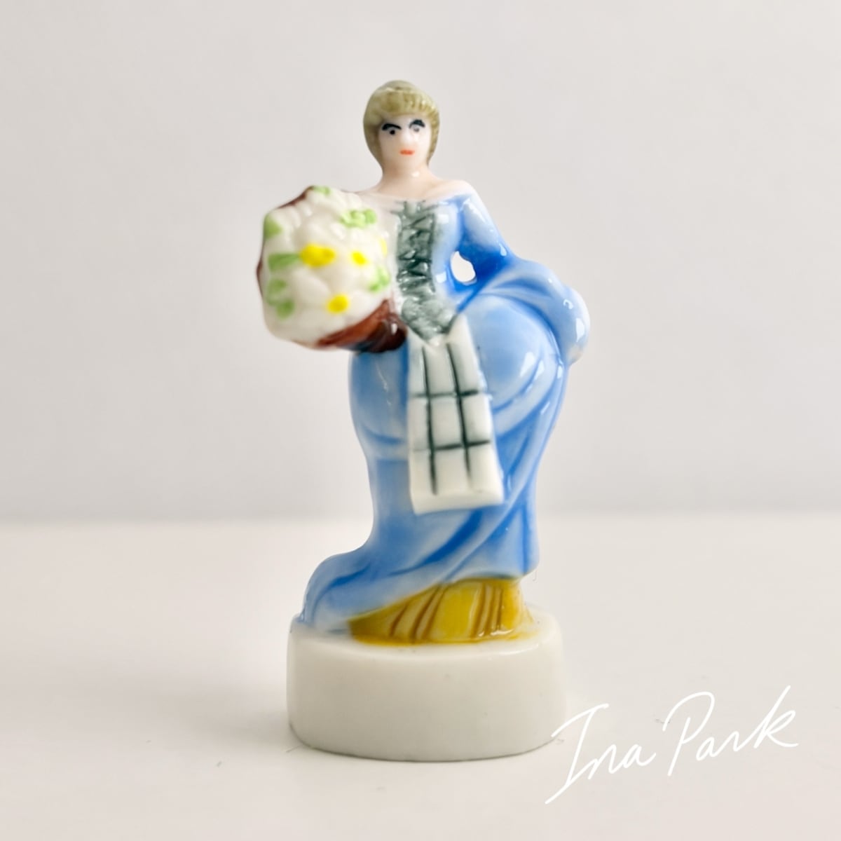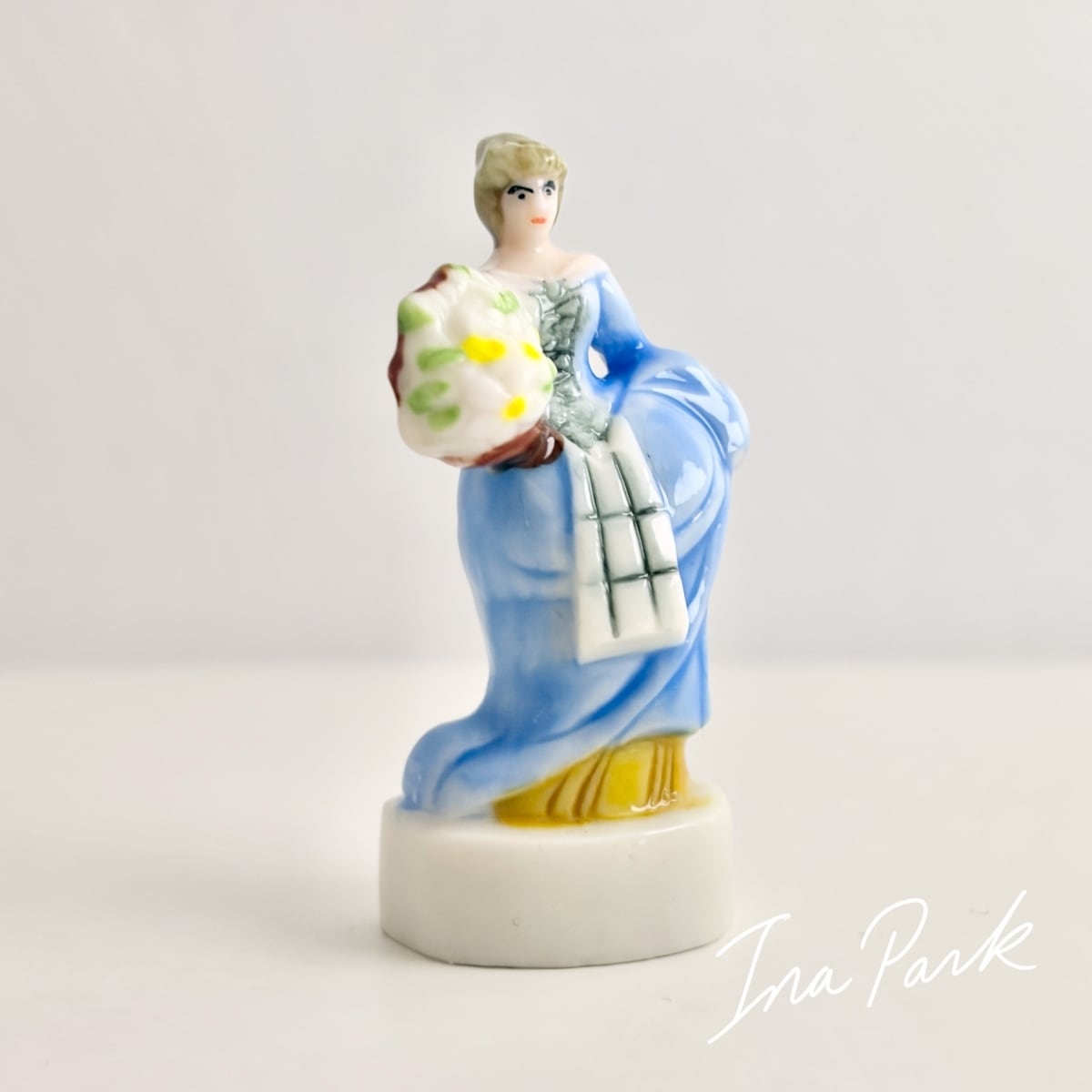 花束を持つ青いドレスの貴婦人 ガリバー旅行記 小人の国リリパットの人々 フェーヴ フェーブ フランス製 ミニチュア 陶器 雑貨 置物