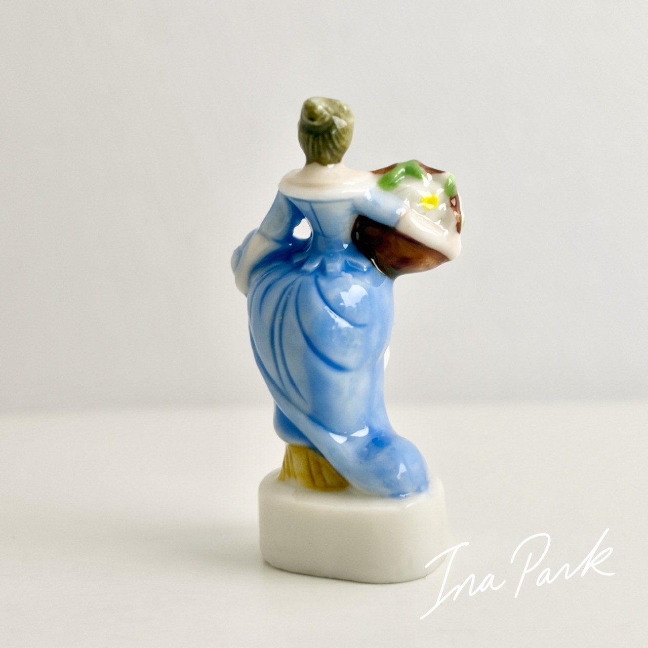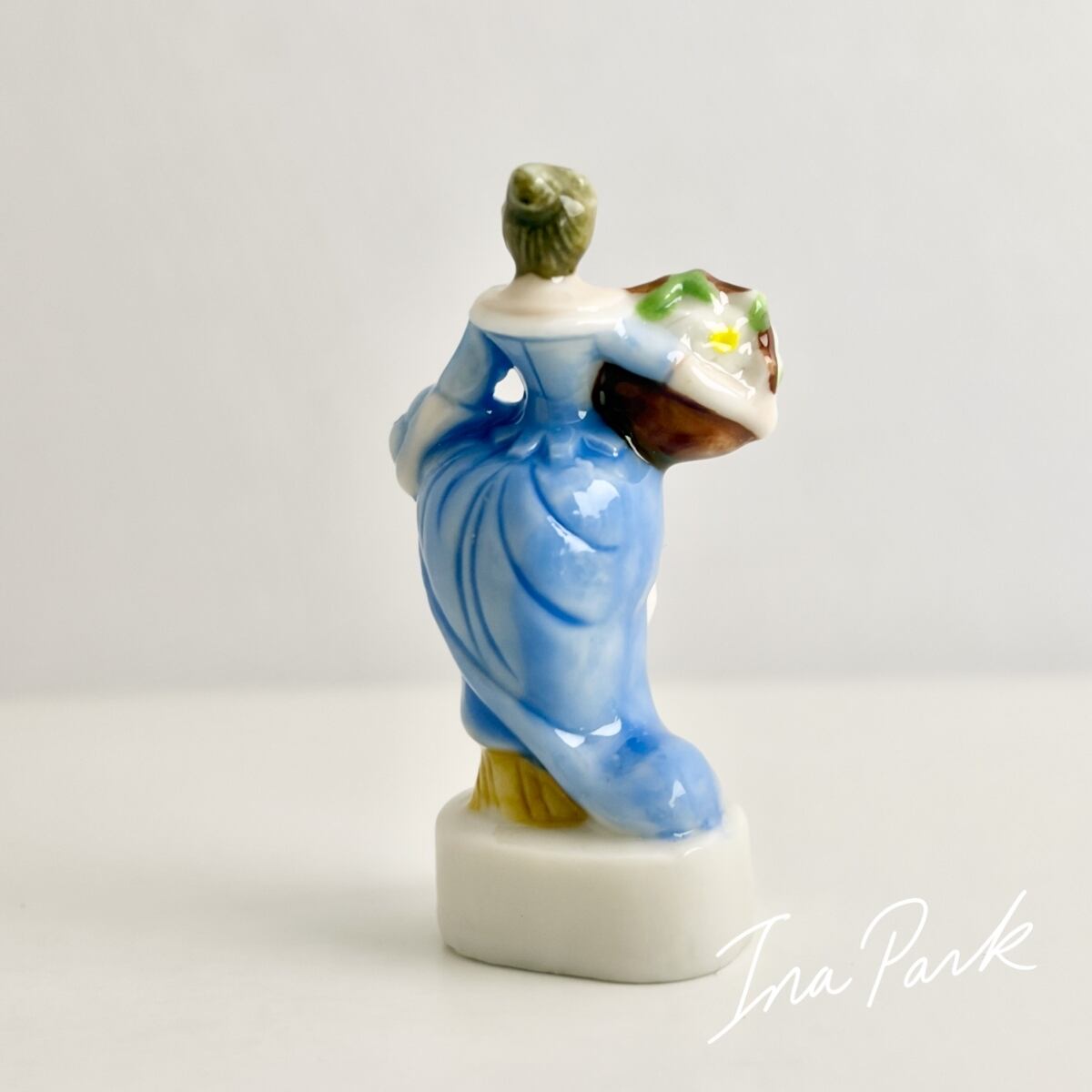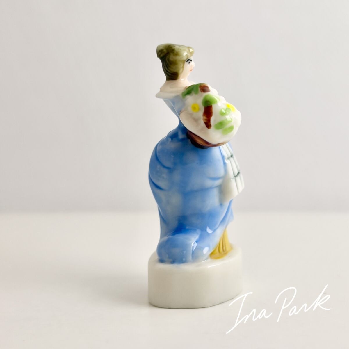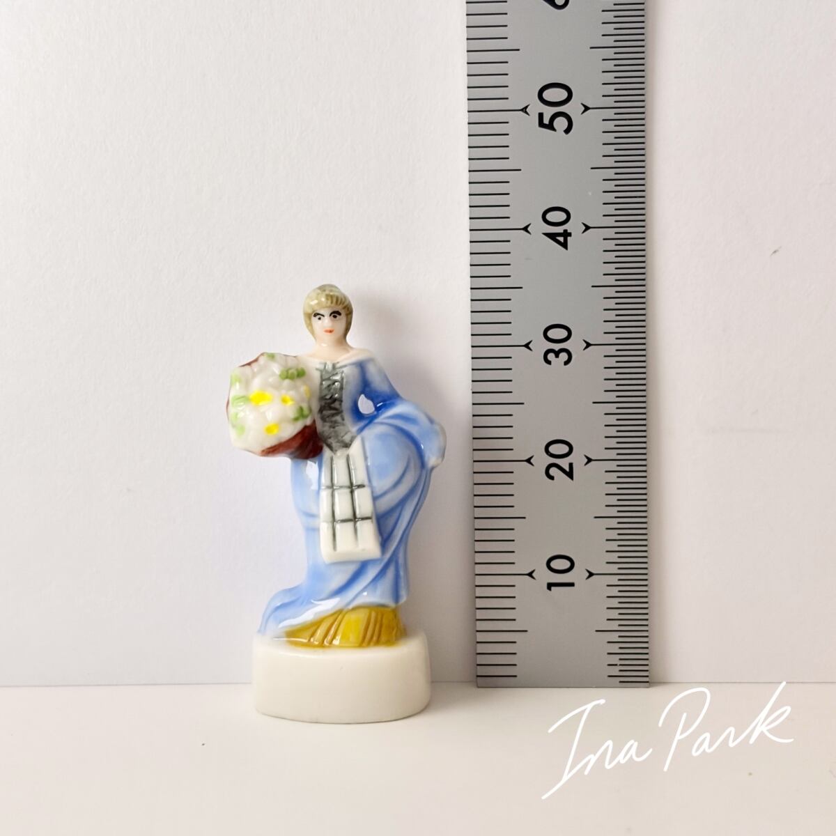 花束を持つ青いドレスの貴婦人 ガリバー旅行記 小人の国リリパットの人々 フェーヴ フェーブ フランス製 ミニチュア 陶器 雑貨 置物