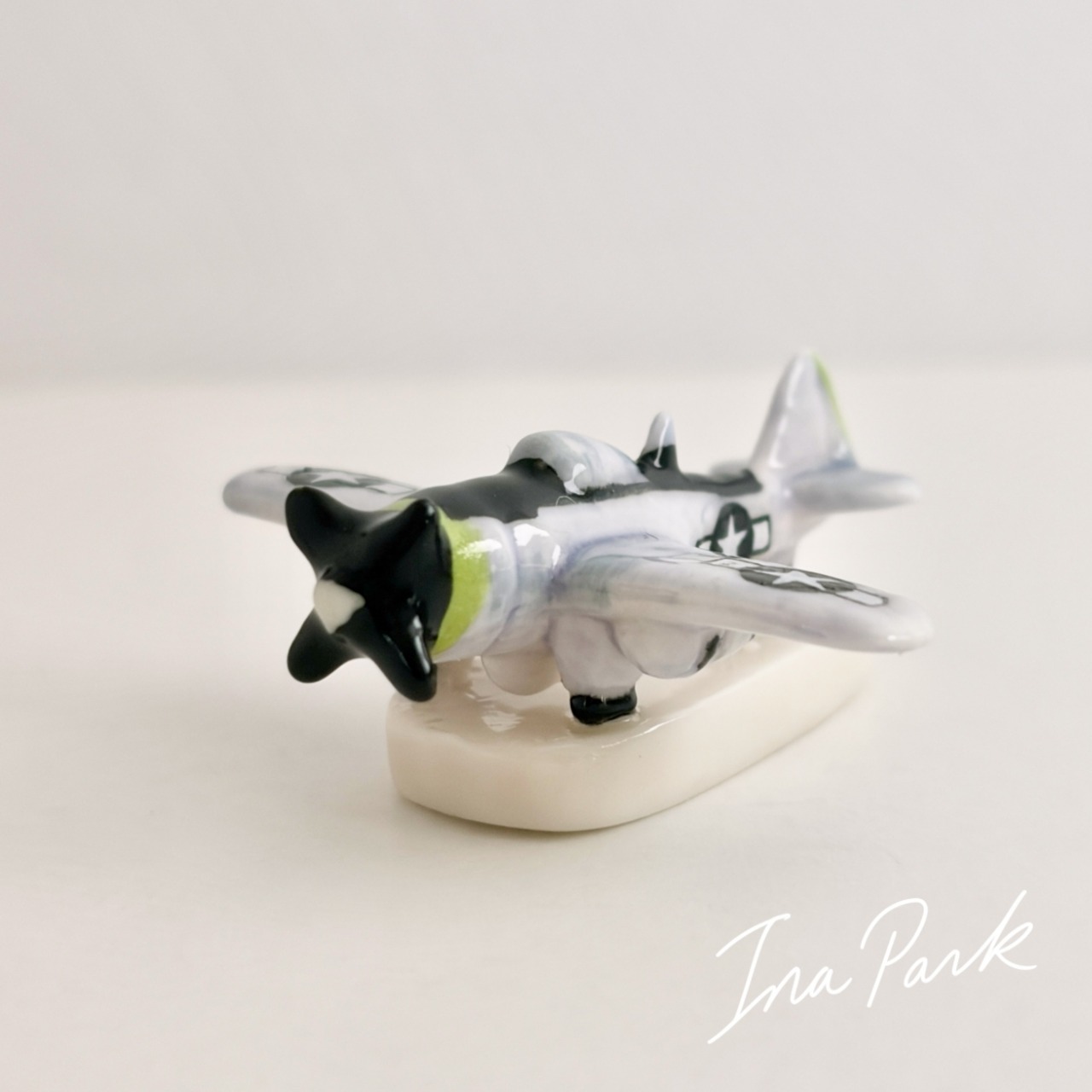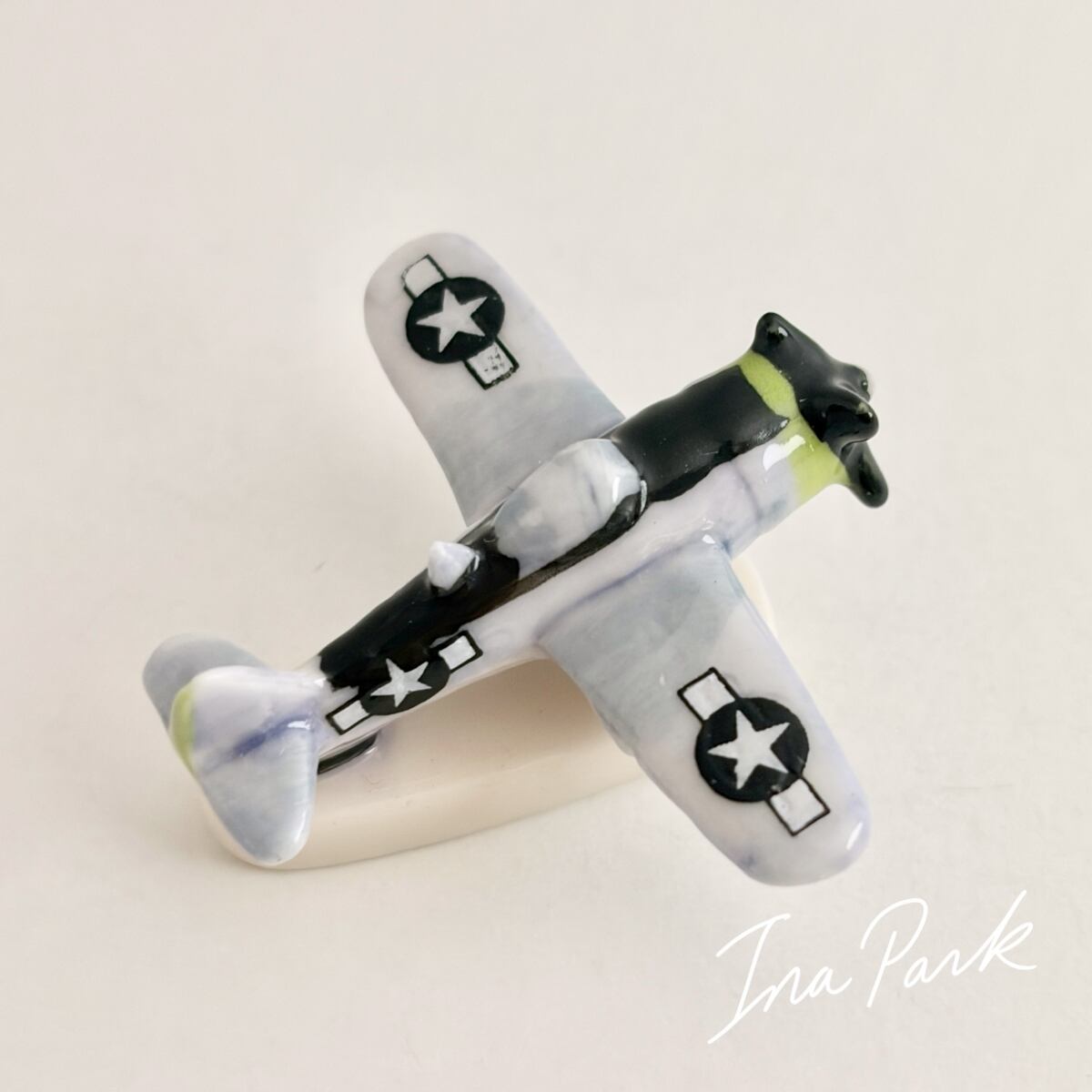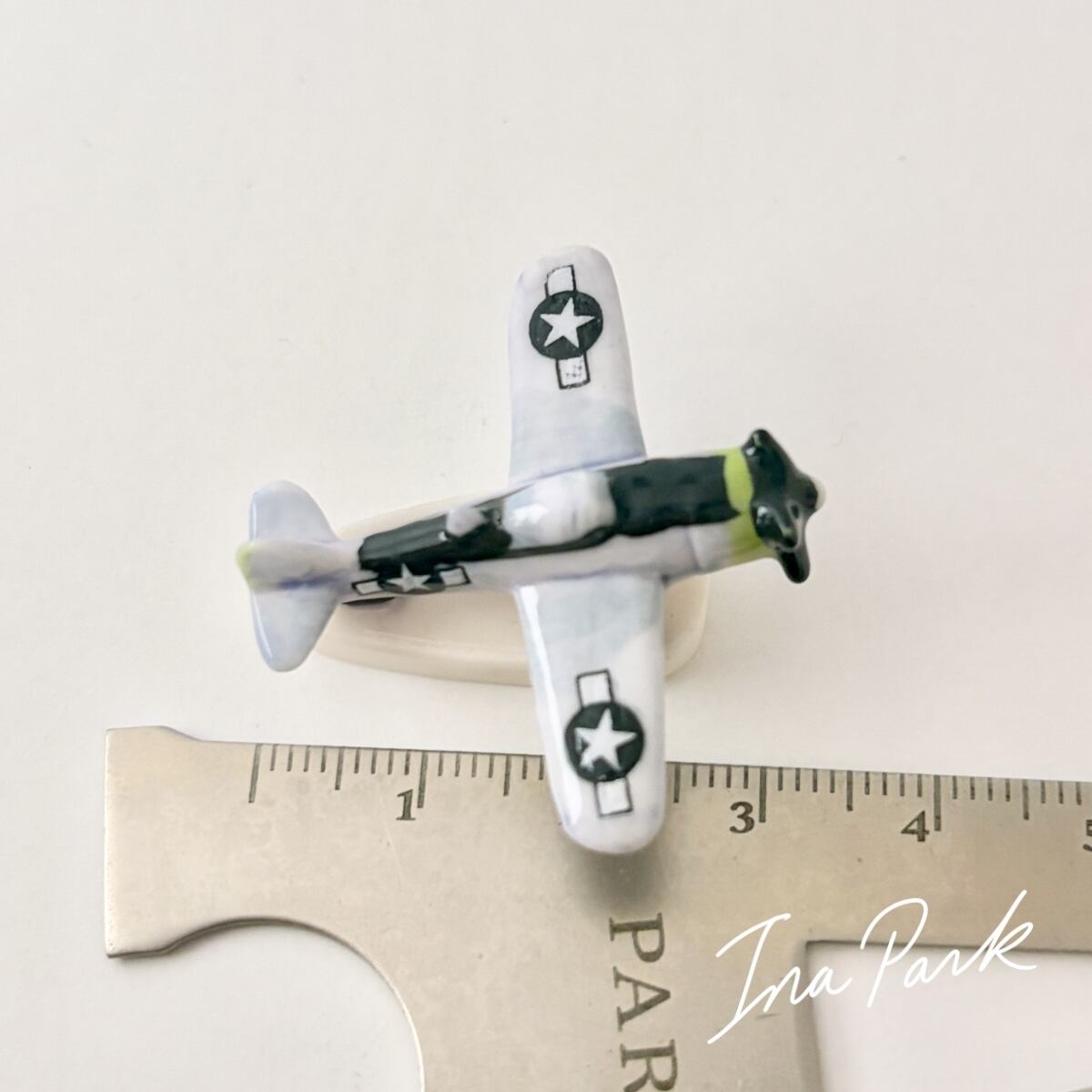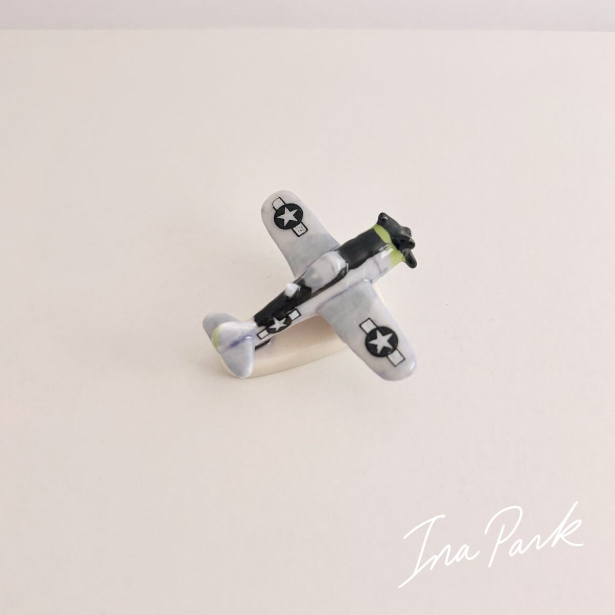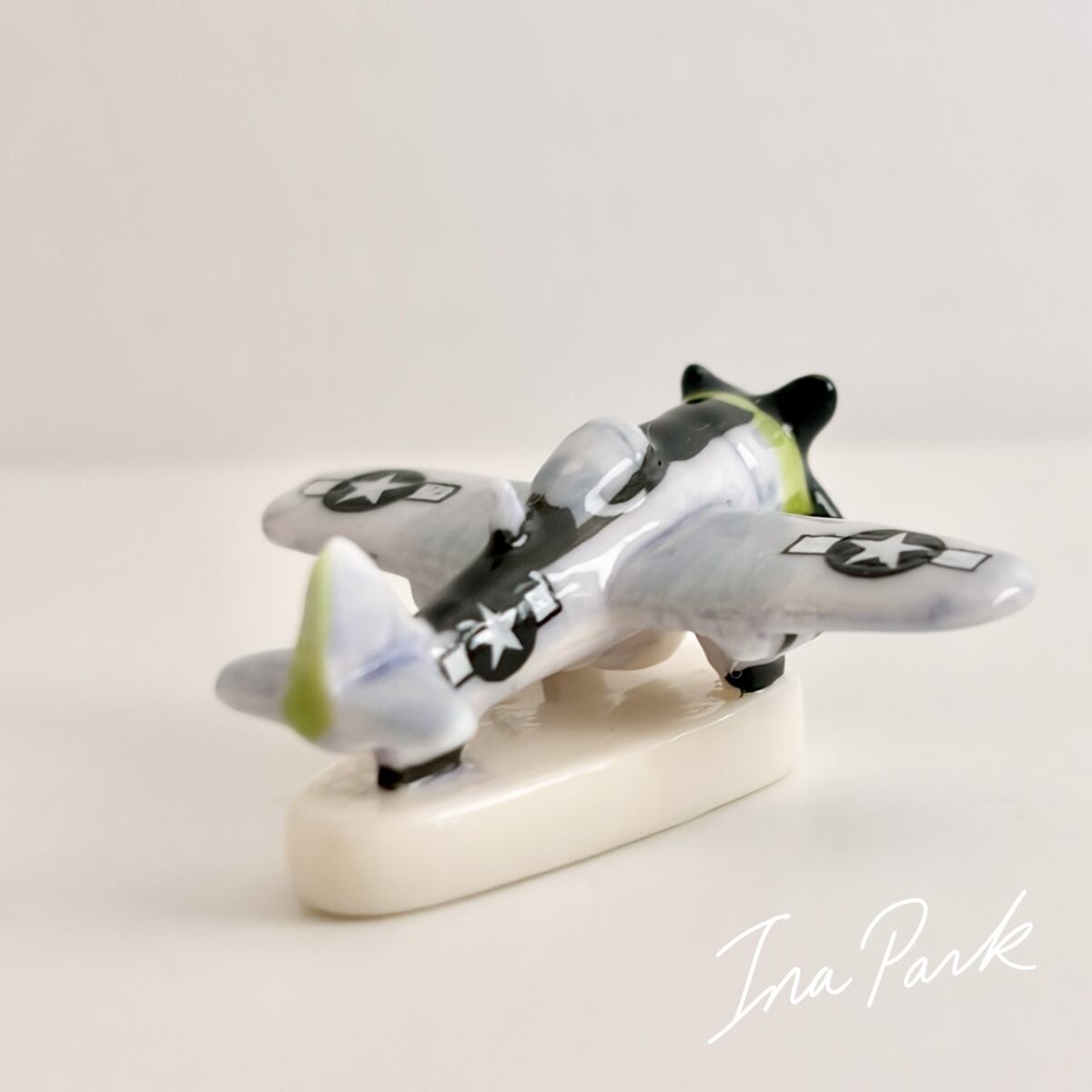 WW II アメリカ軍戦闘機 飛行機のフェーヴ フェーブ フランス製 ミニチュア 陶器 雑貨 置物