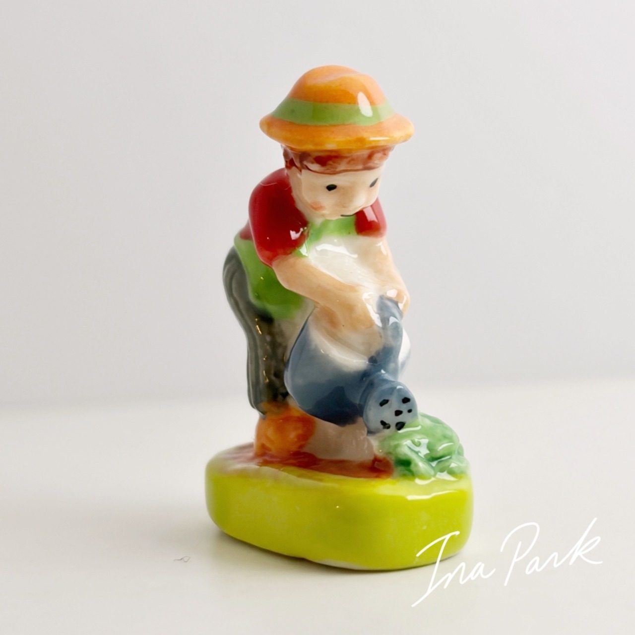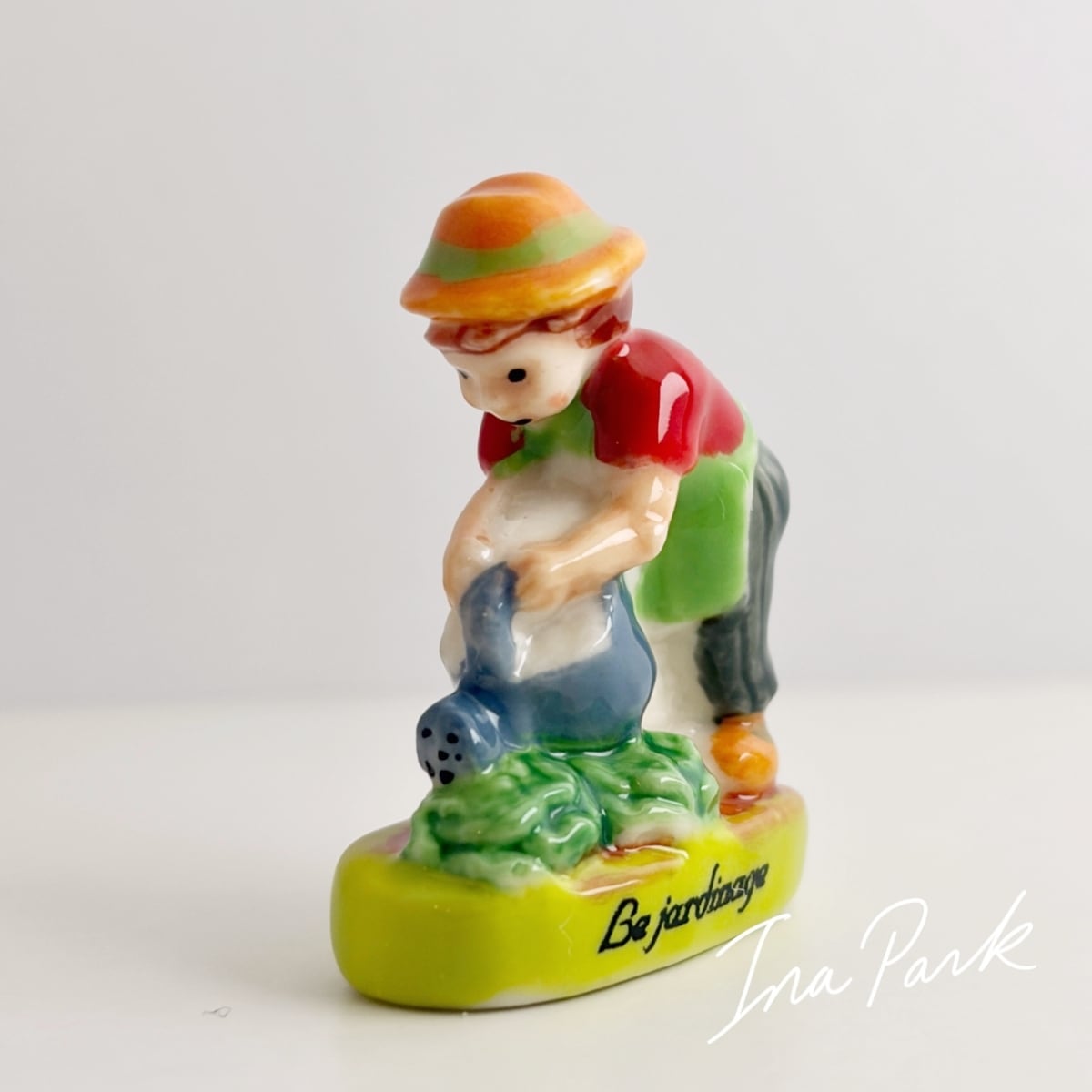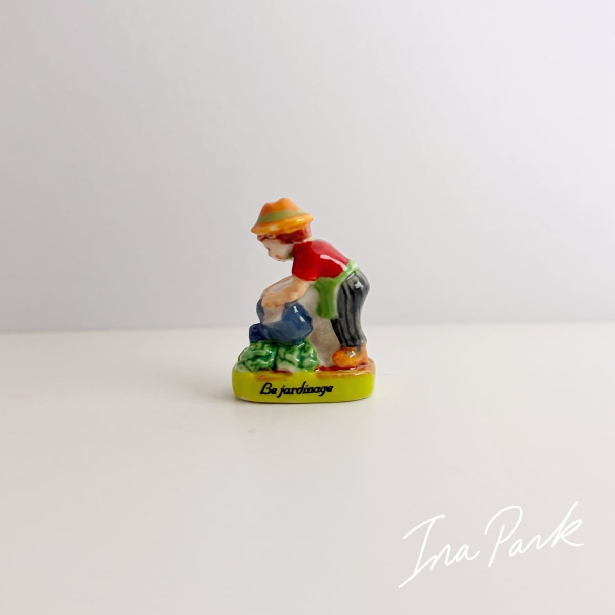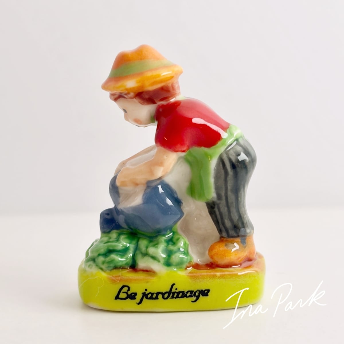 ガーデニングをする子ども フェーヴ フェーブ フランス製 ミニチュア 陶器 雑貨 置物