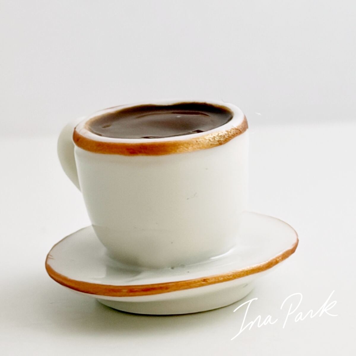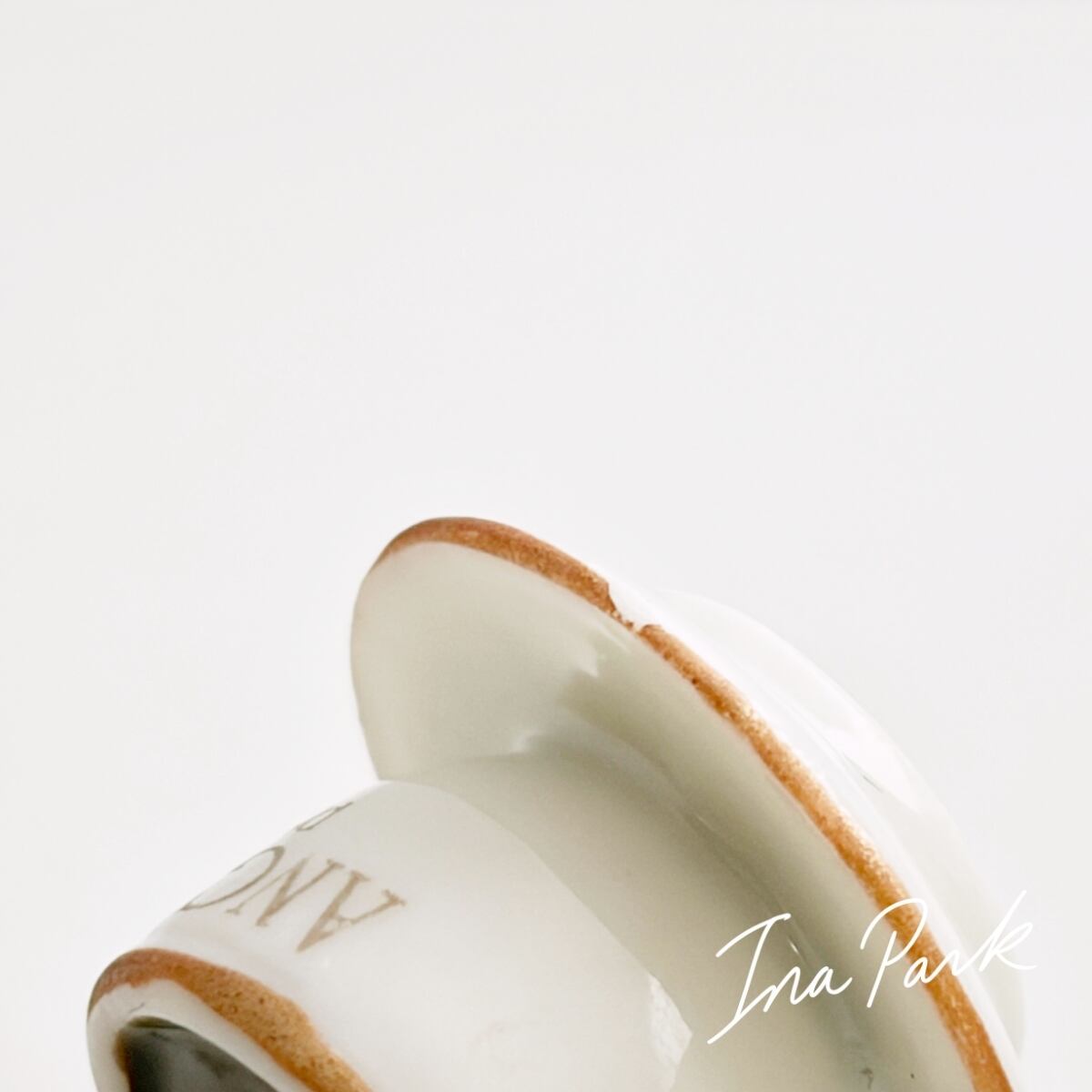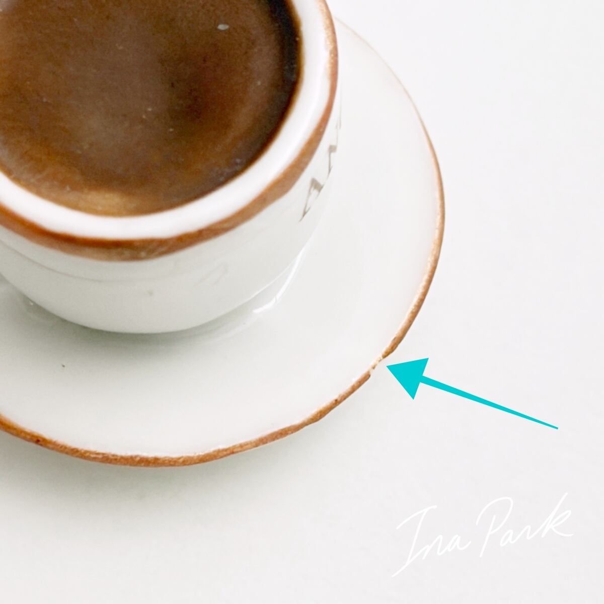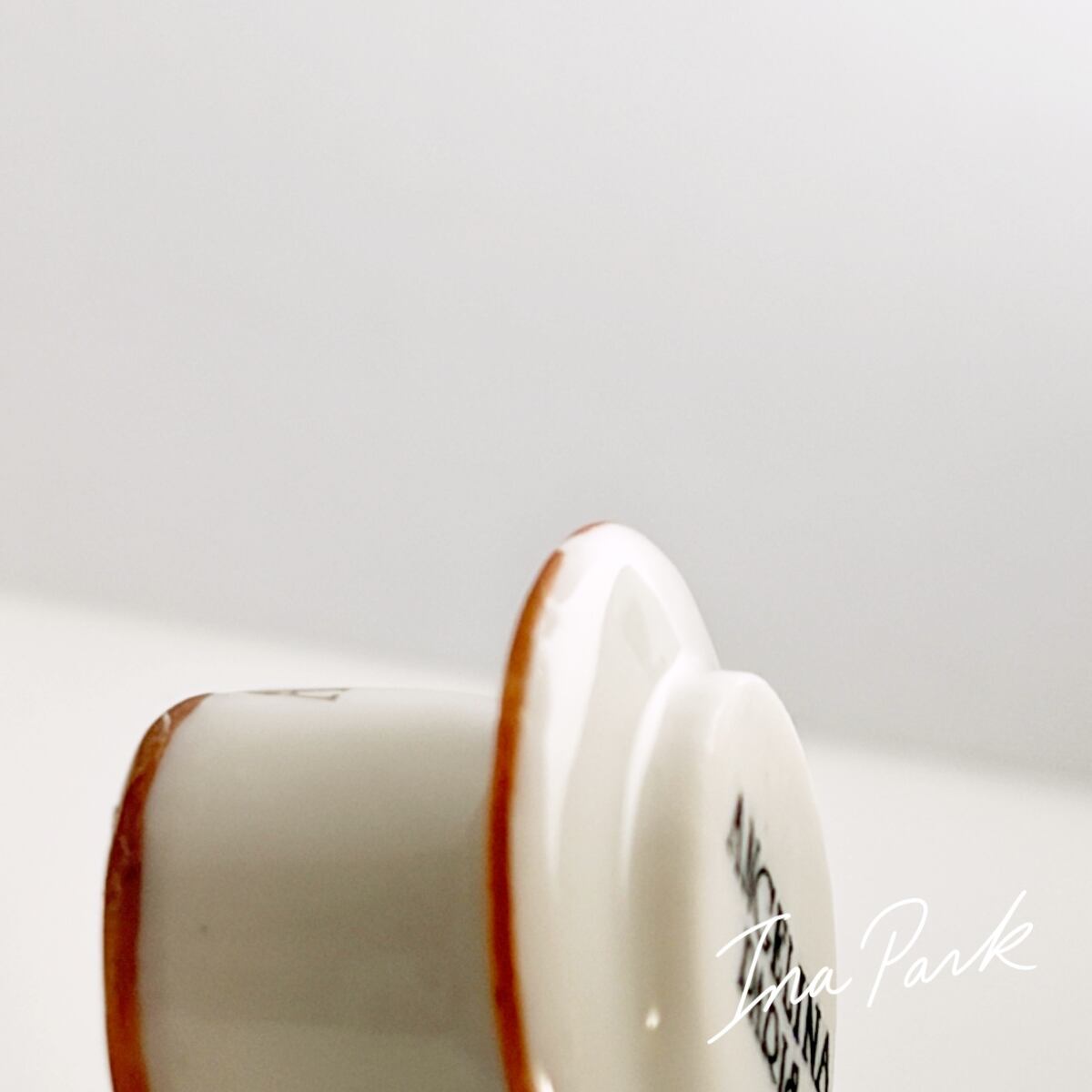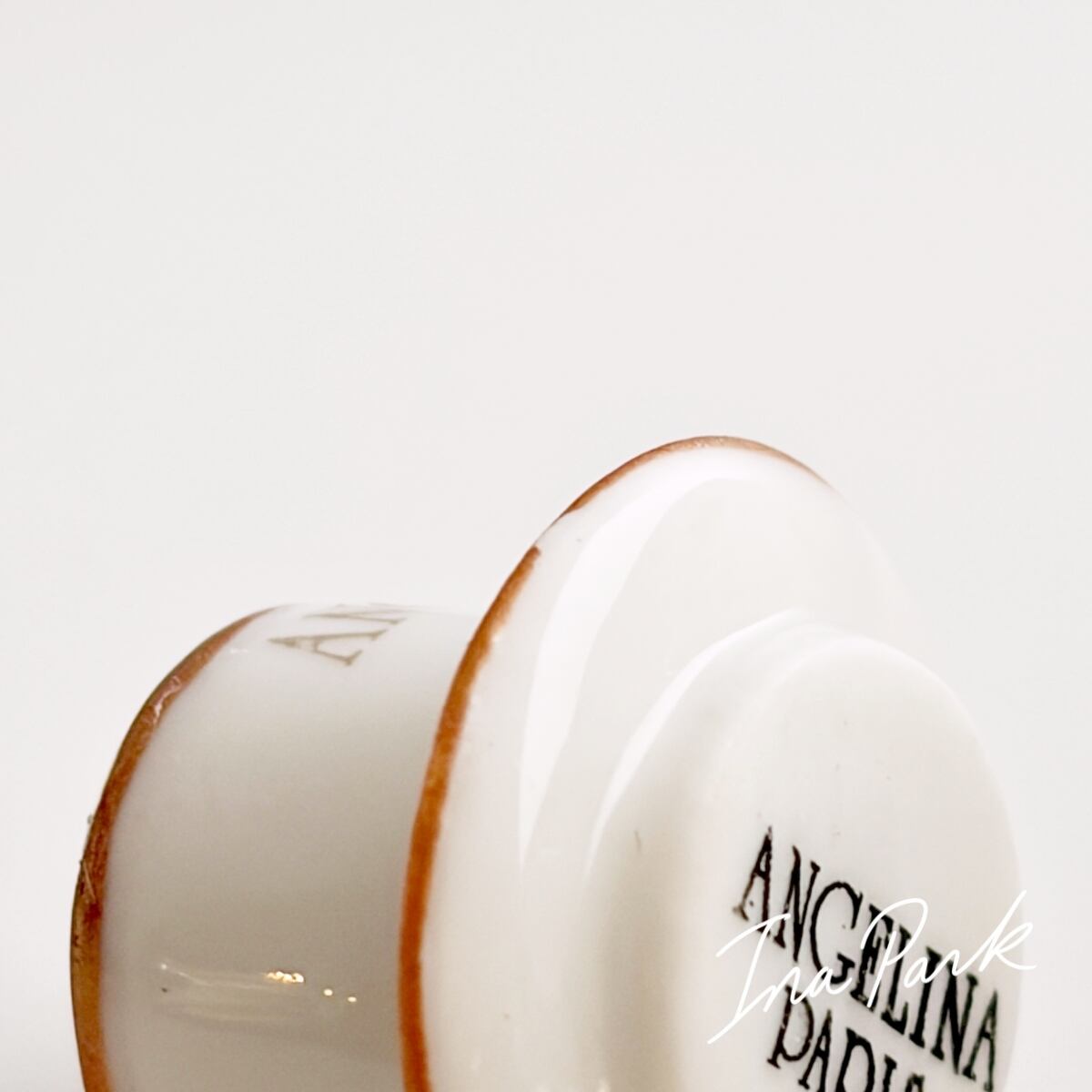 パリの老舗サロン・ド・テ「アンジェリーナ」の看板的ドリンク、濃厚ショコラ・ショー(ホットチョコレート)の入ったカップ&ソーサーのフェーブ。アンジェリーナのフェーブは年号が入っていないので厳密には分かりませんが、おそらく2016年前後のもの。