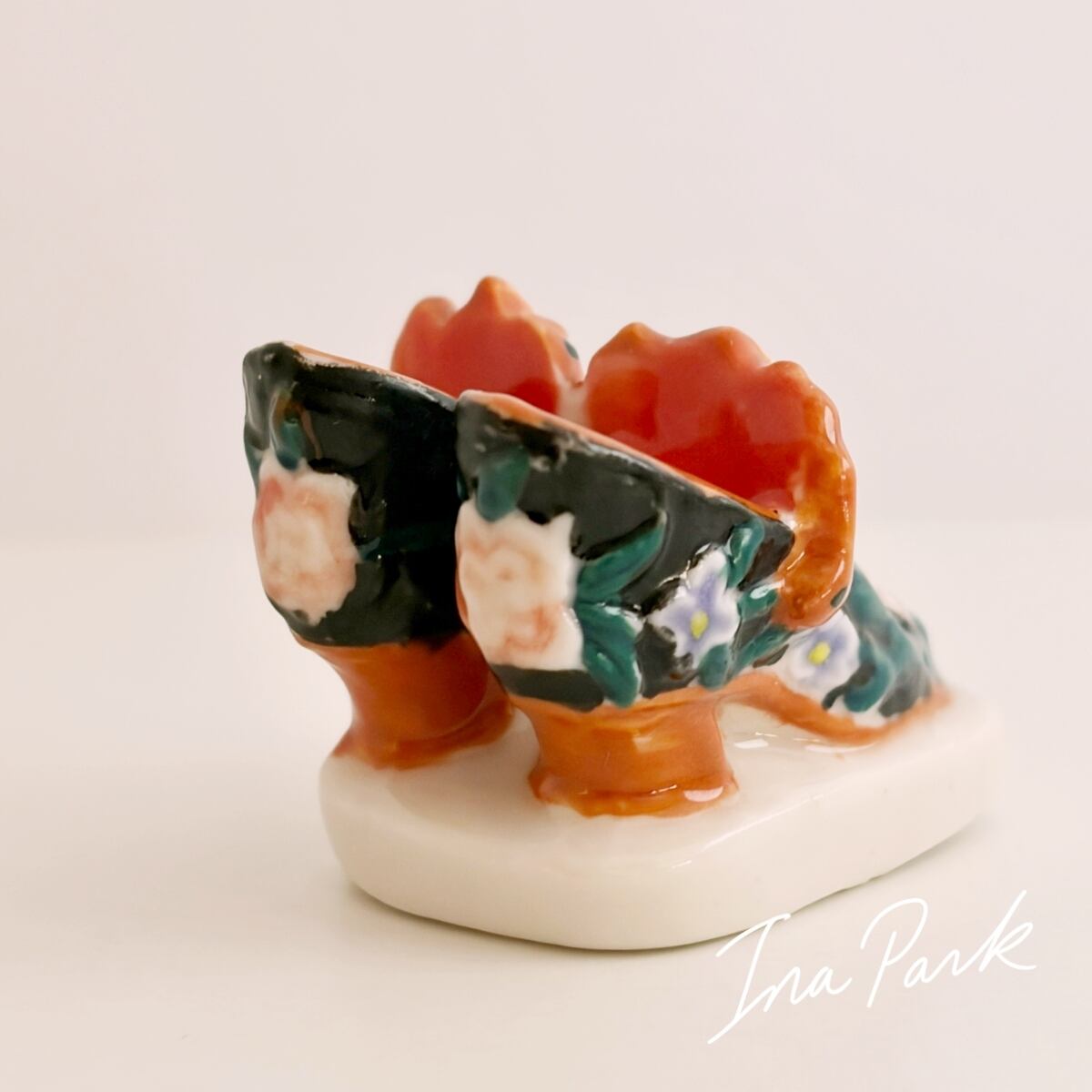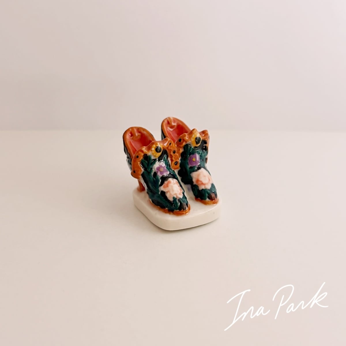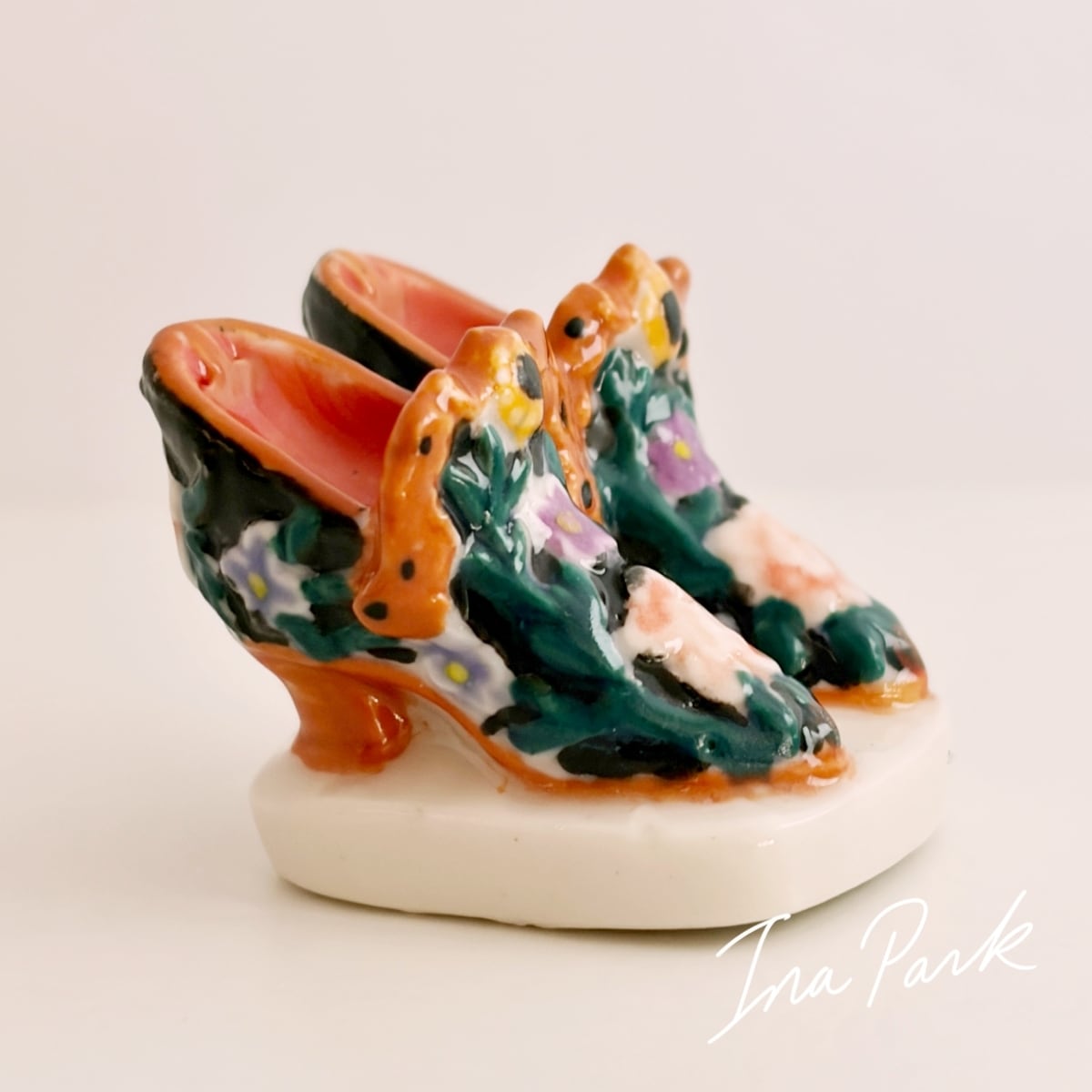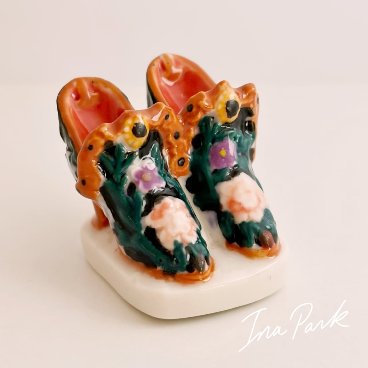 エレガントな花の装飾の靴 ブーツ フェーヴ フェーブ フランス製 ミニチュア 陶器 雑貨 置物