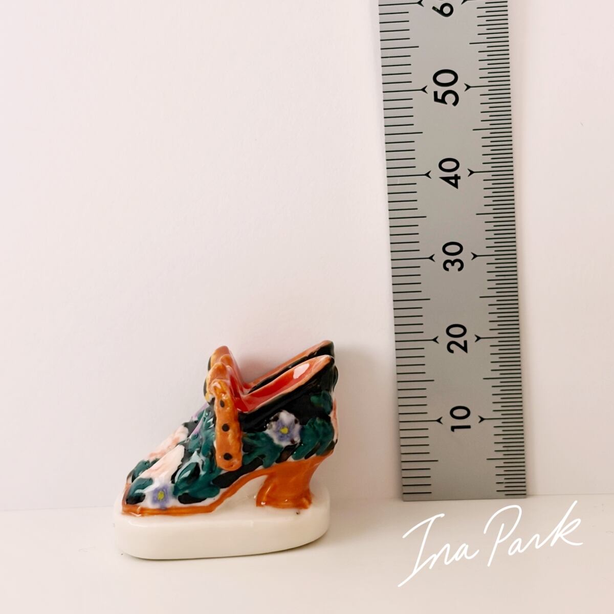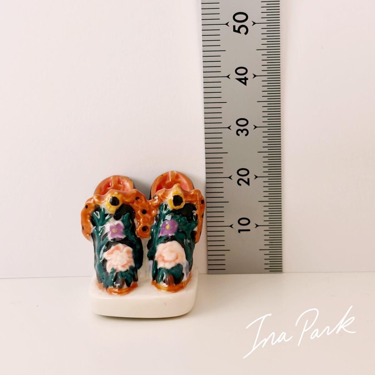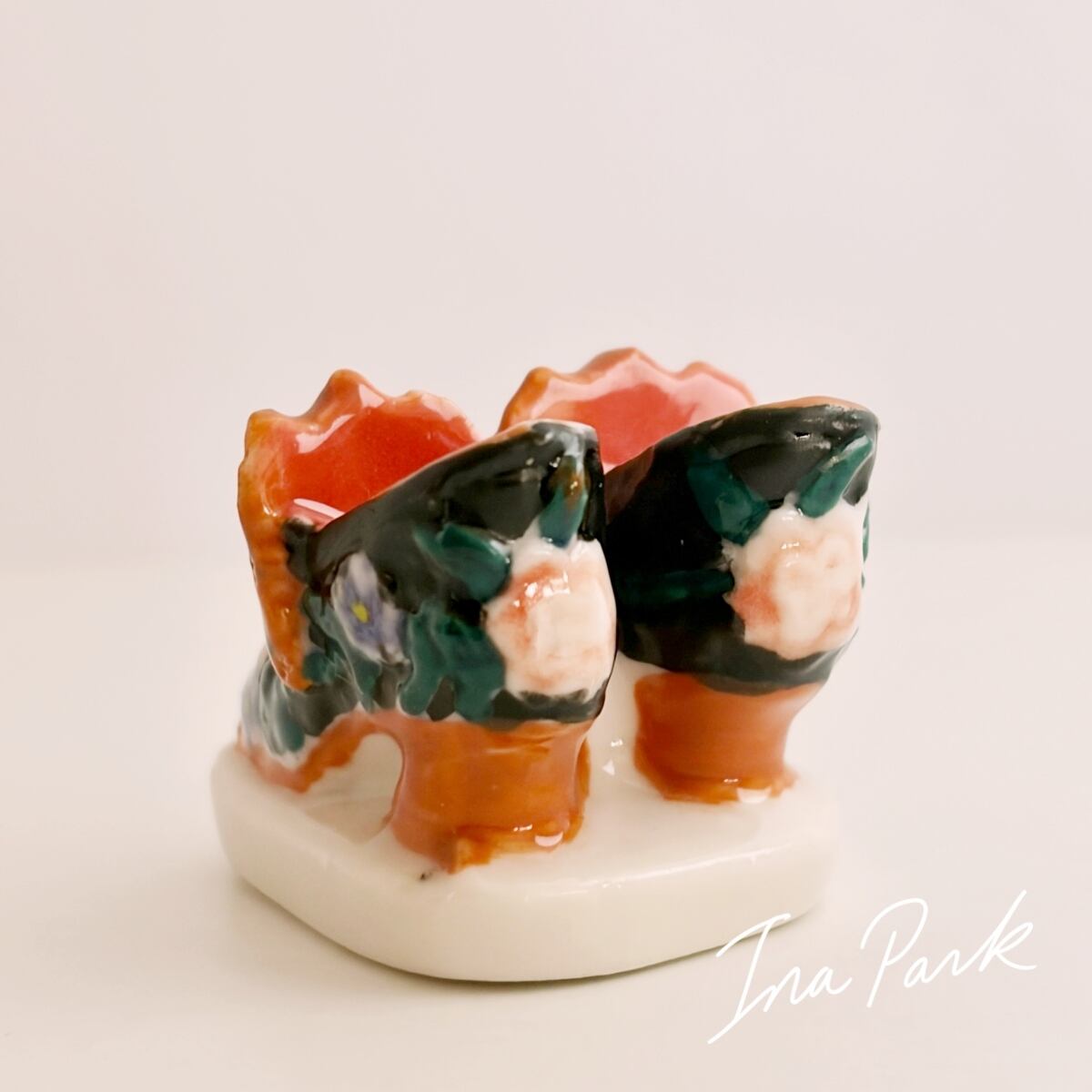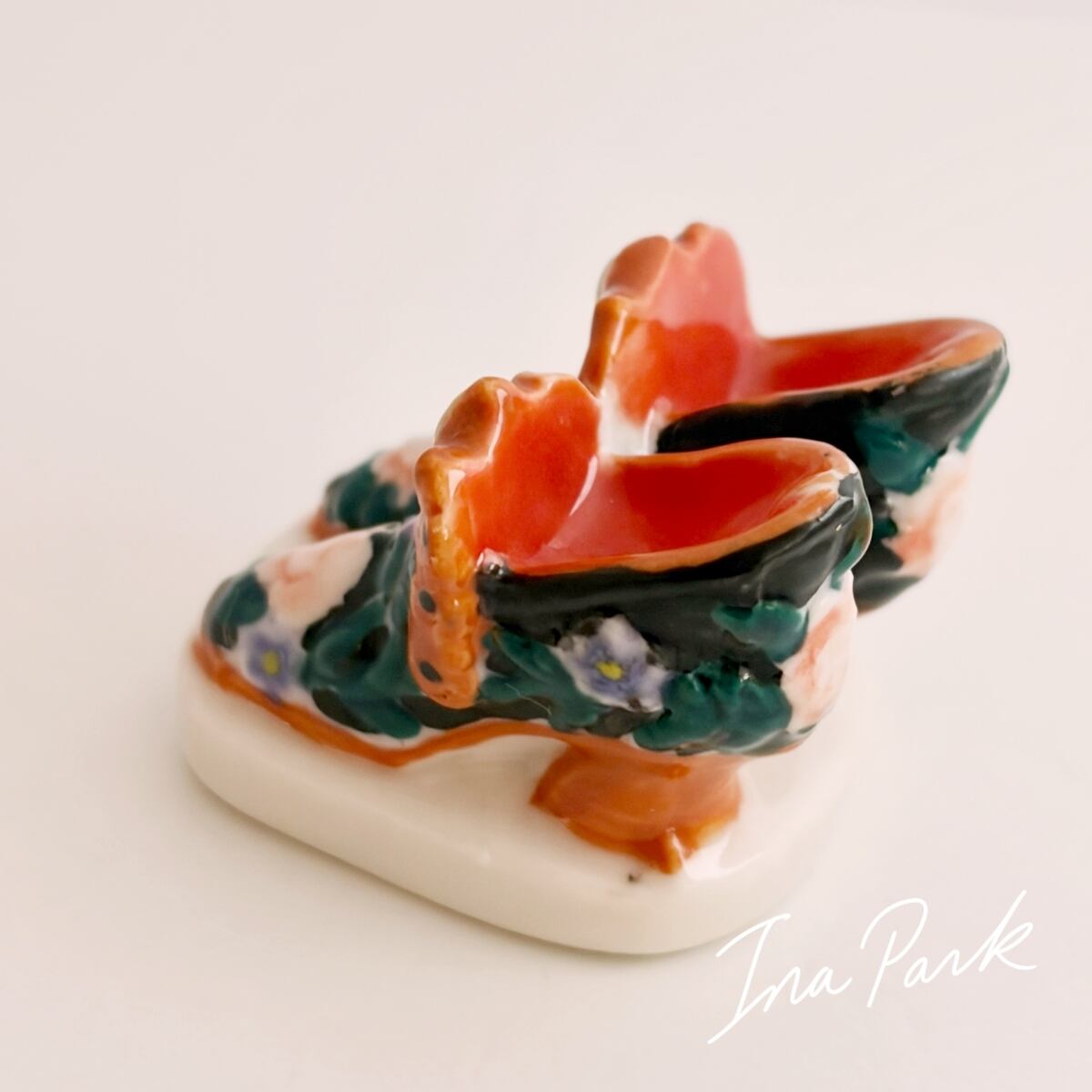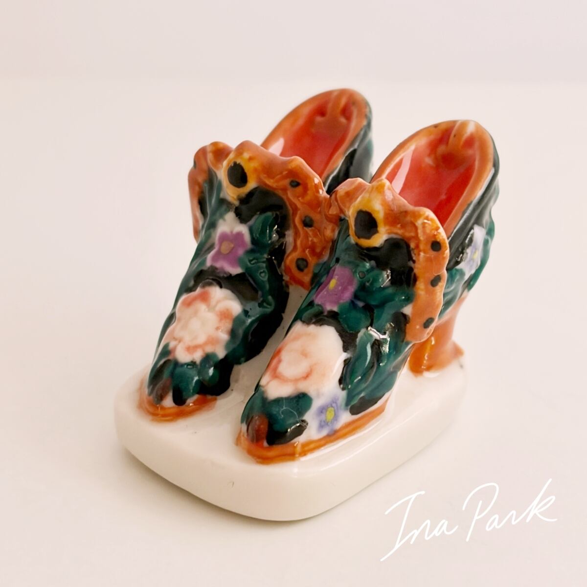 エレガントな花の装飾の靴 ブーツ フェーヴ フェーブ フランス製 ミニチュア 陶器 雑貨 置物