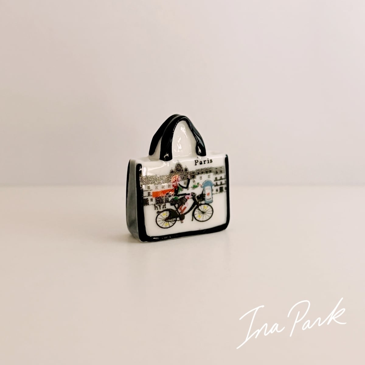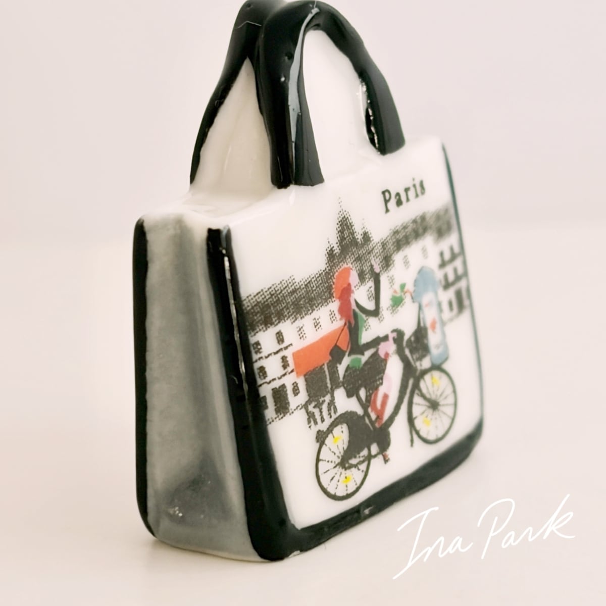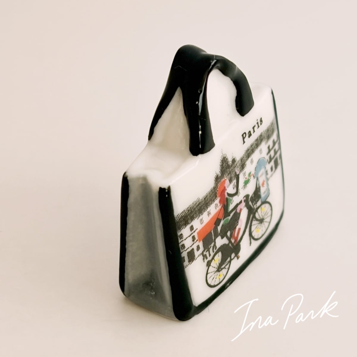 パリの絵柄のバッグ フェーヴ フェーブ フランス製 ミニチュア 陶器 雑貨 置物