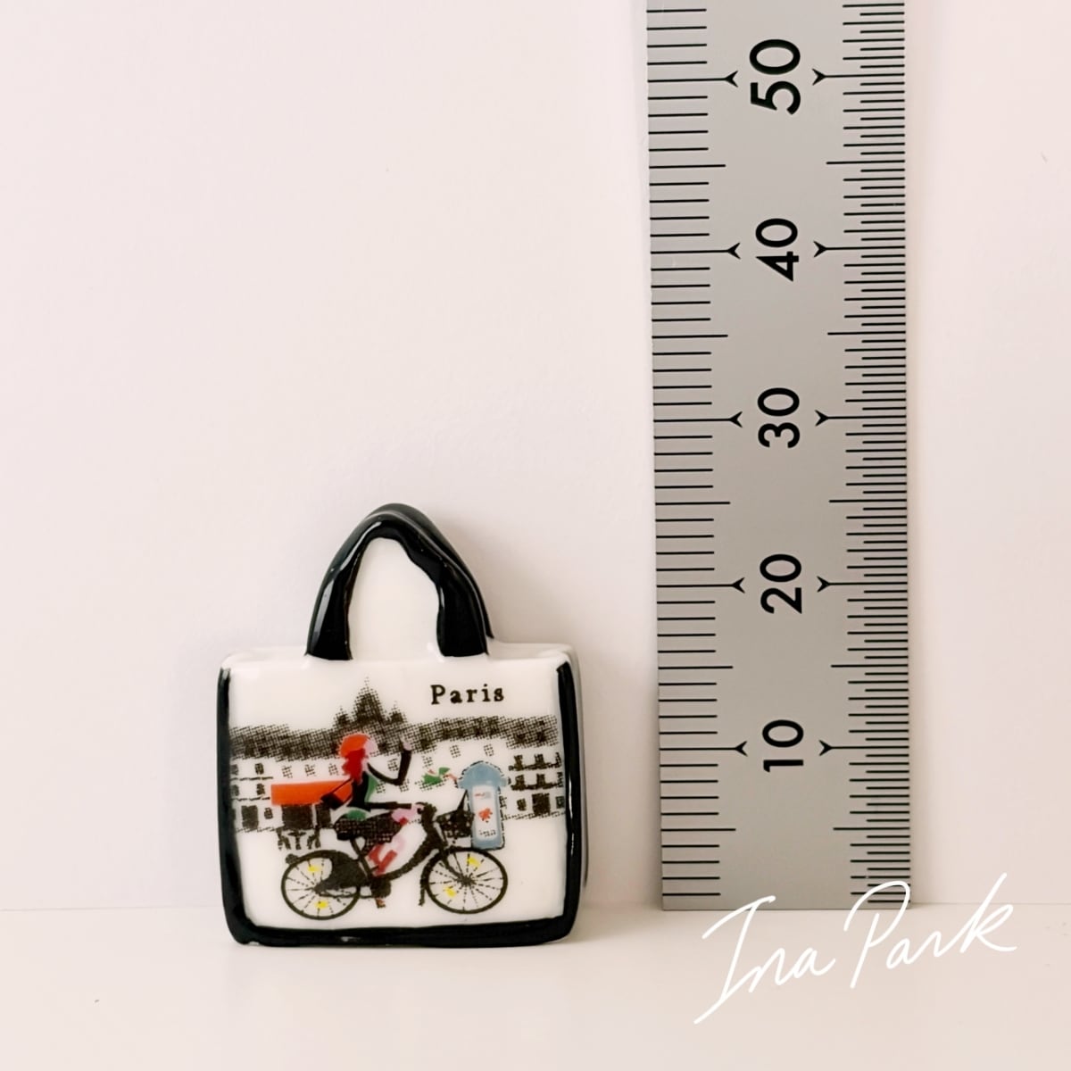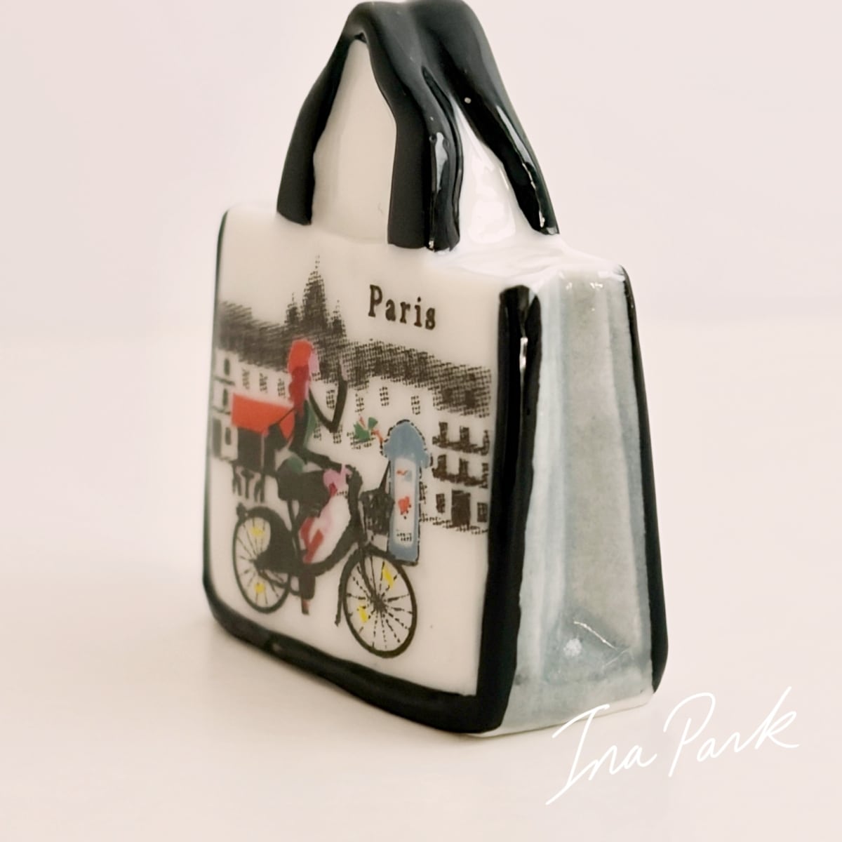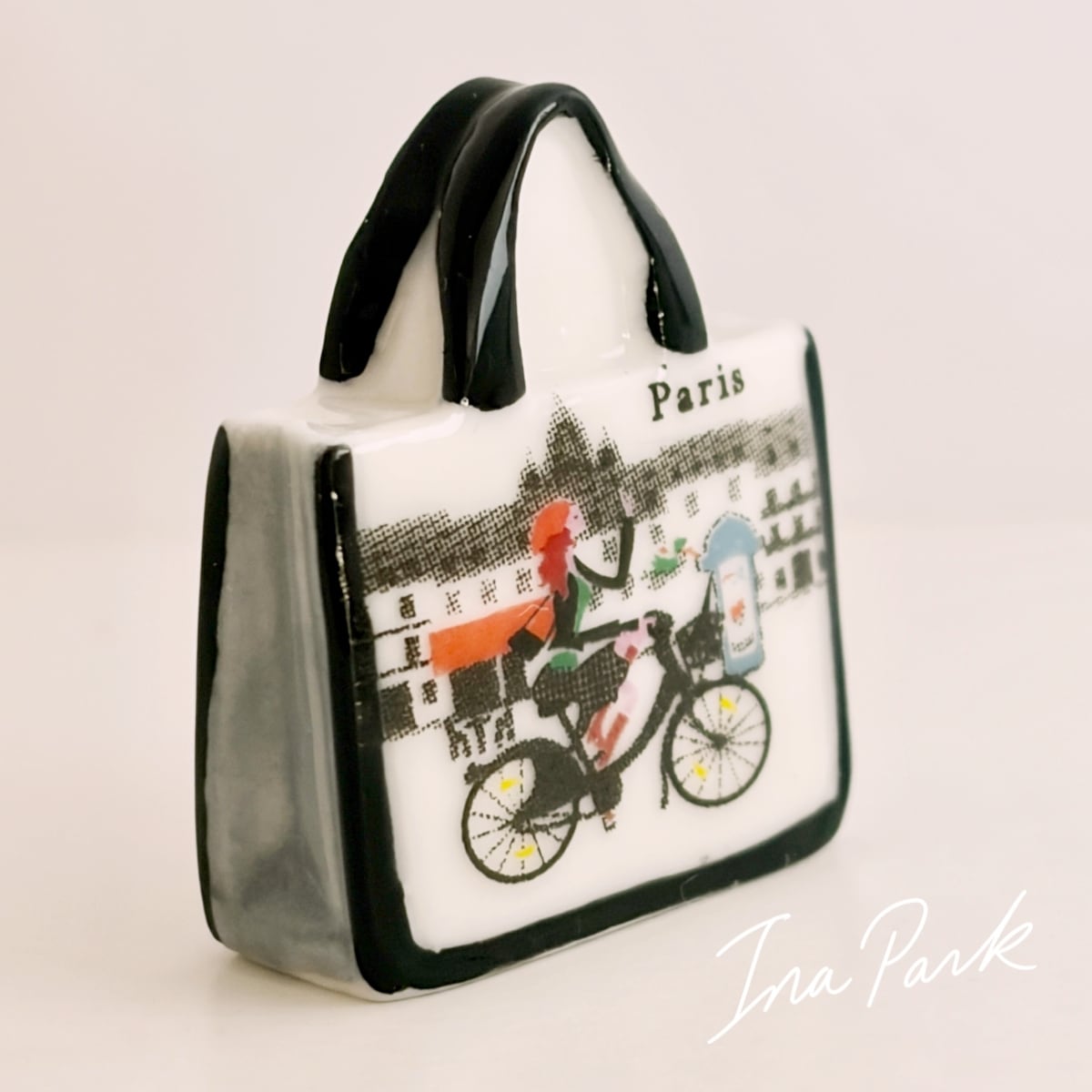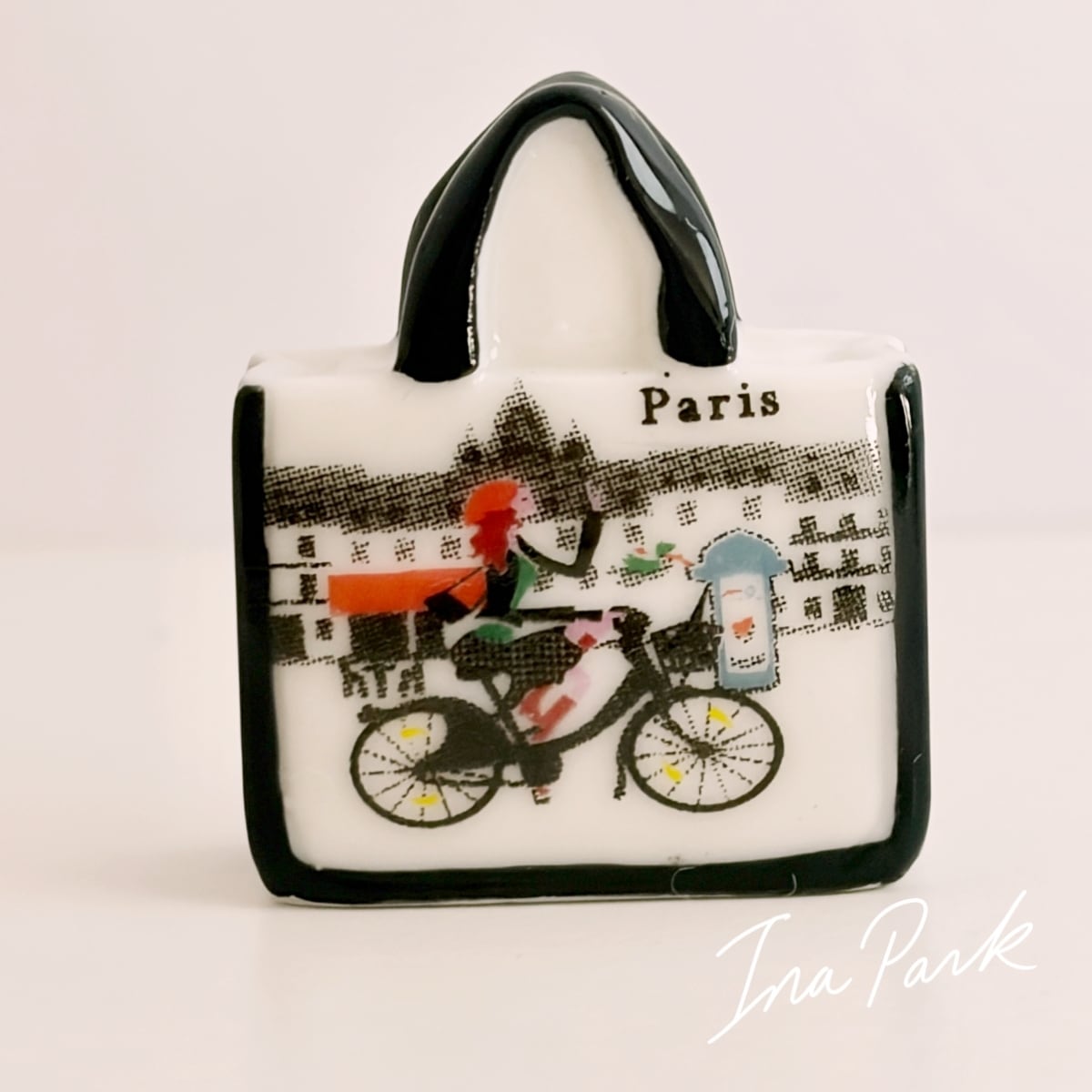 パリの絵柄のバッグ フェーヴ フェーブ フランス製 ミニチュア 陶器 雑貨 置物