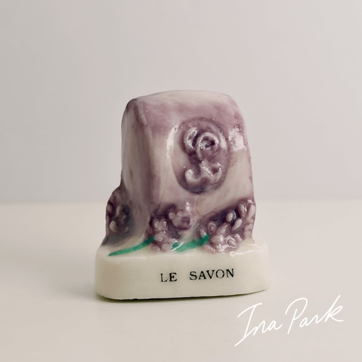 ラベンダーのマルセイユ石鹸 フェーヴ フェーブ フランス製 ミニチュア 陶器 雑貨 置物