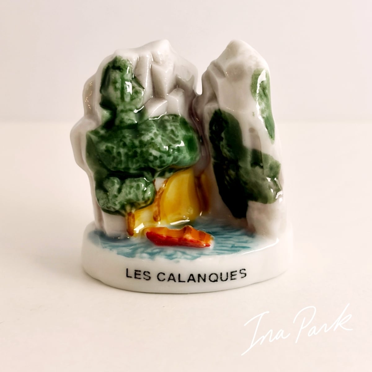 カランク 断崖の海とボートのフェーヴ プロヴァンス フェーブ 南仏 フランス製 ミニチュア 陶器 雑貨 置物