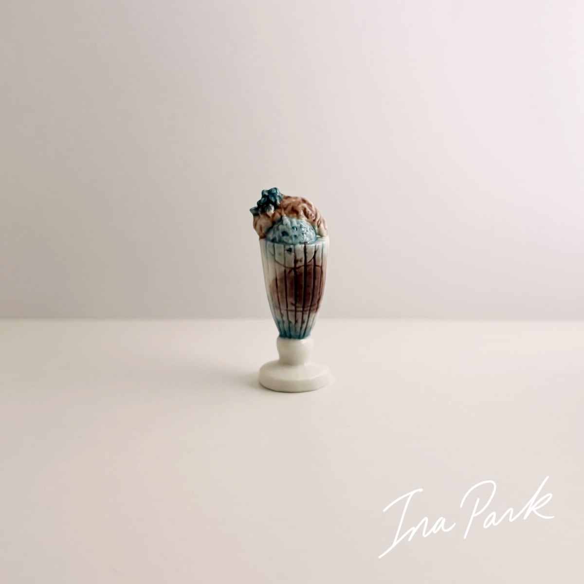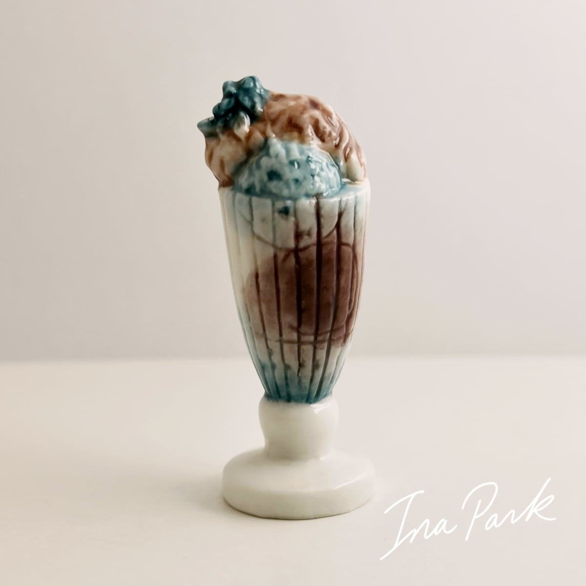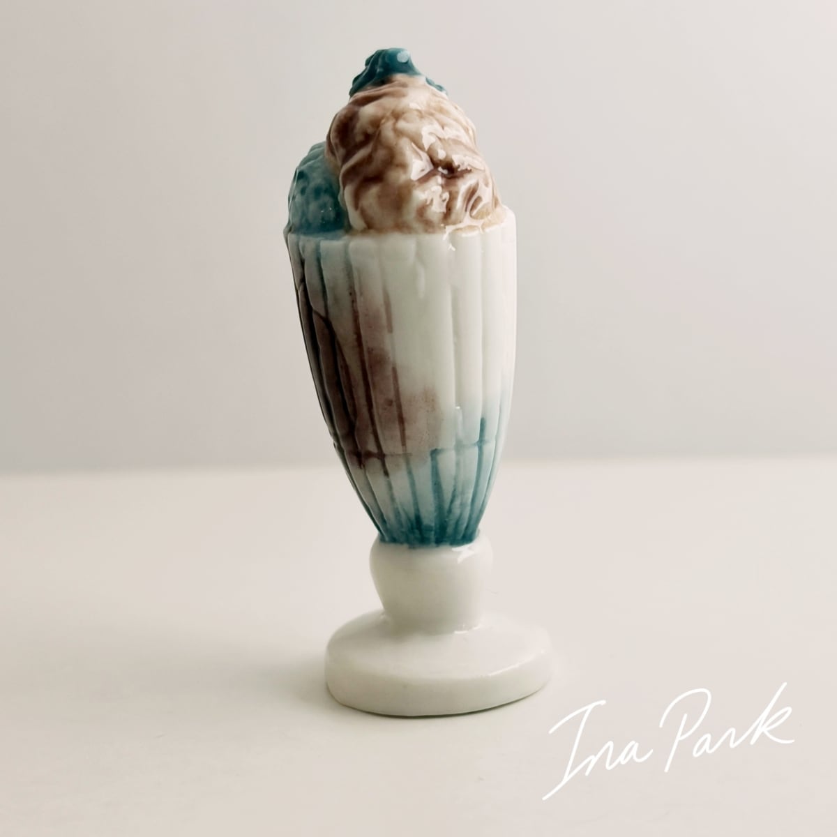 ミントアイスクリームパルフェ アイスクリームのフェーヴ フェーブ フランス製 ミニチュア 陶器 雑貨 置物
