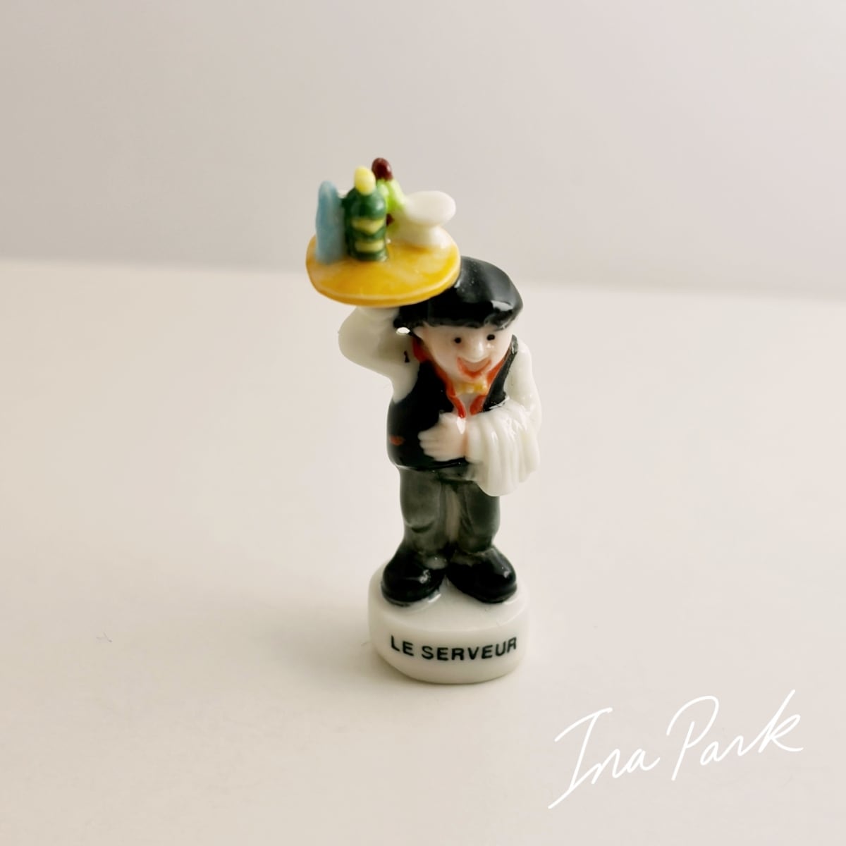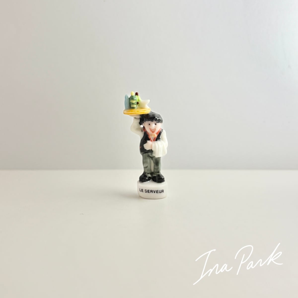 お皿を運ぶウェイターのフェーヴ フェーブ ミニチュア 陶器 雑貨 レストラン
