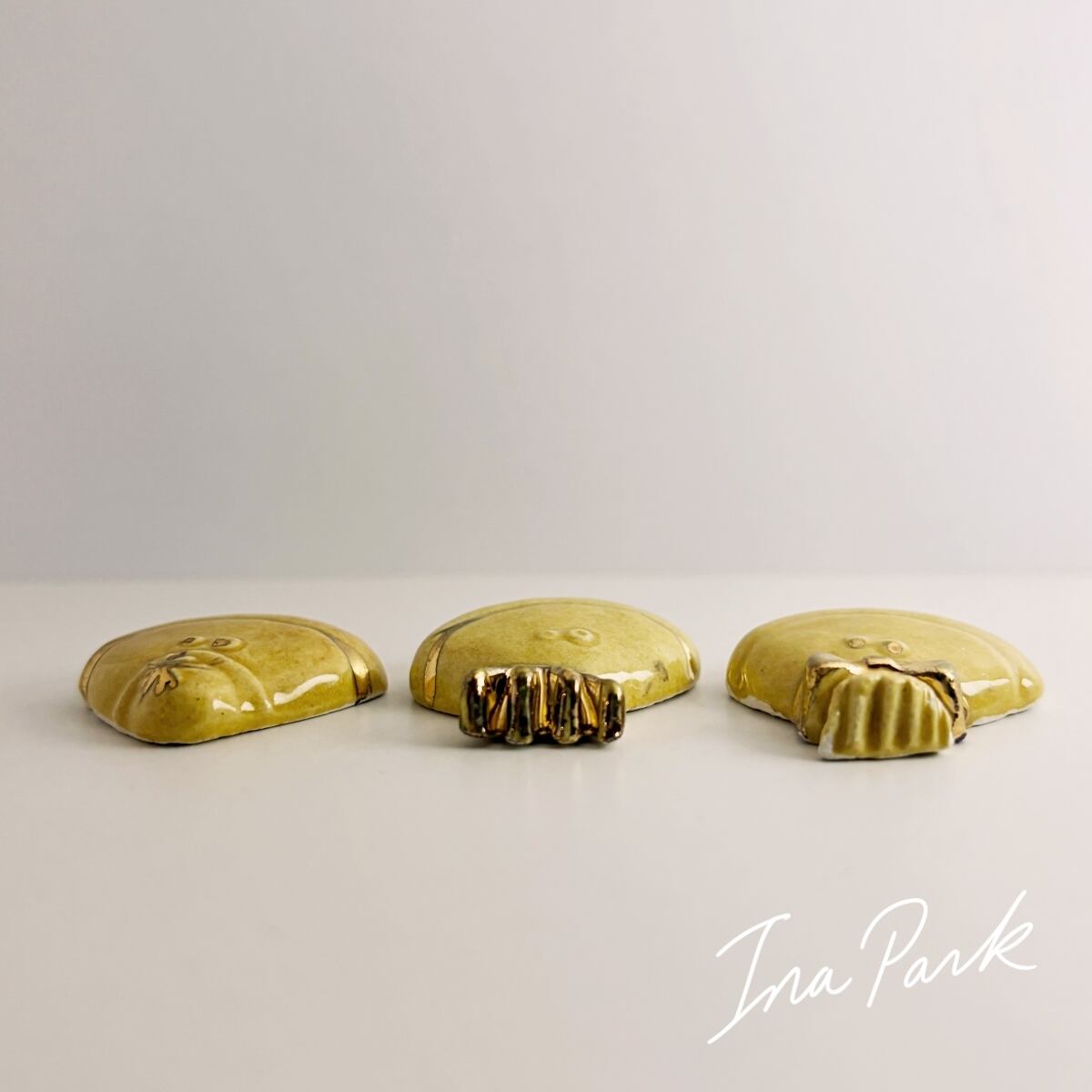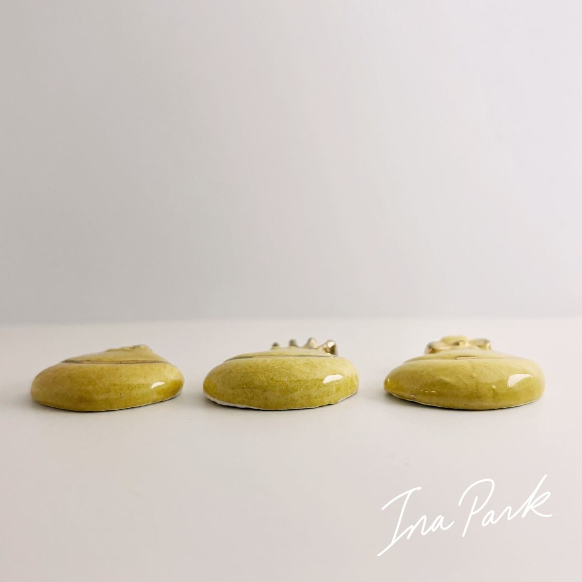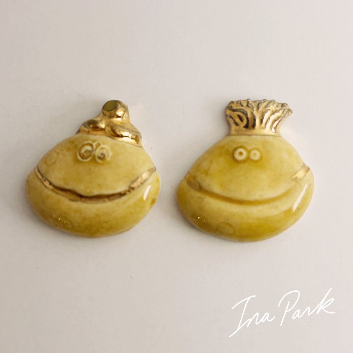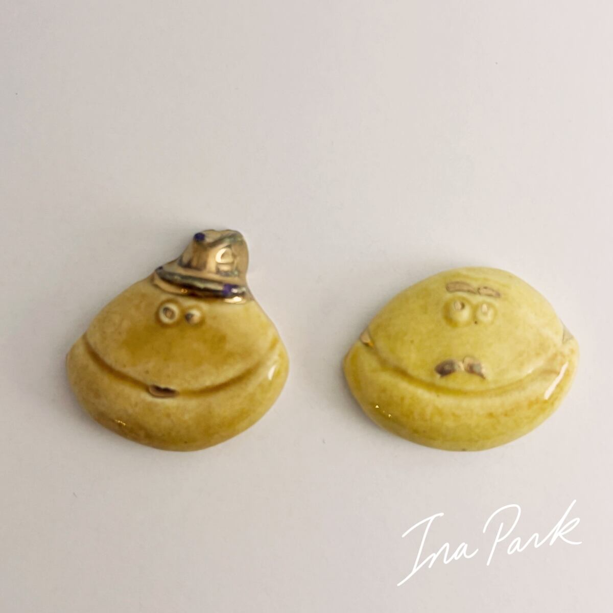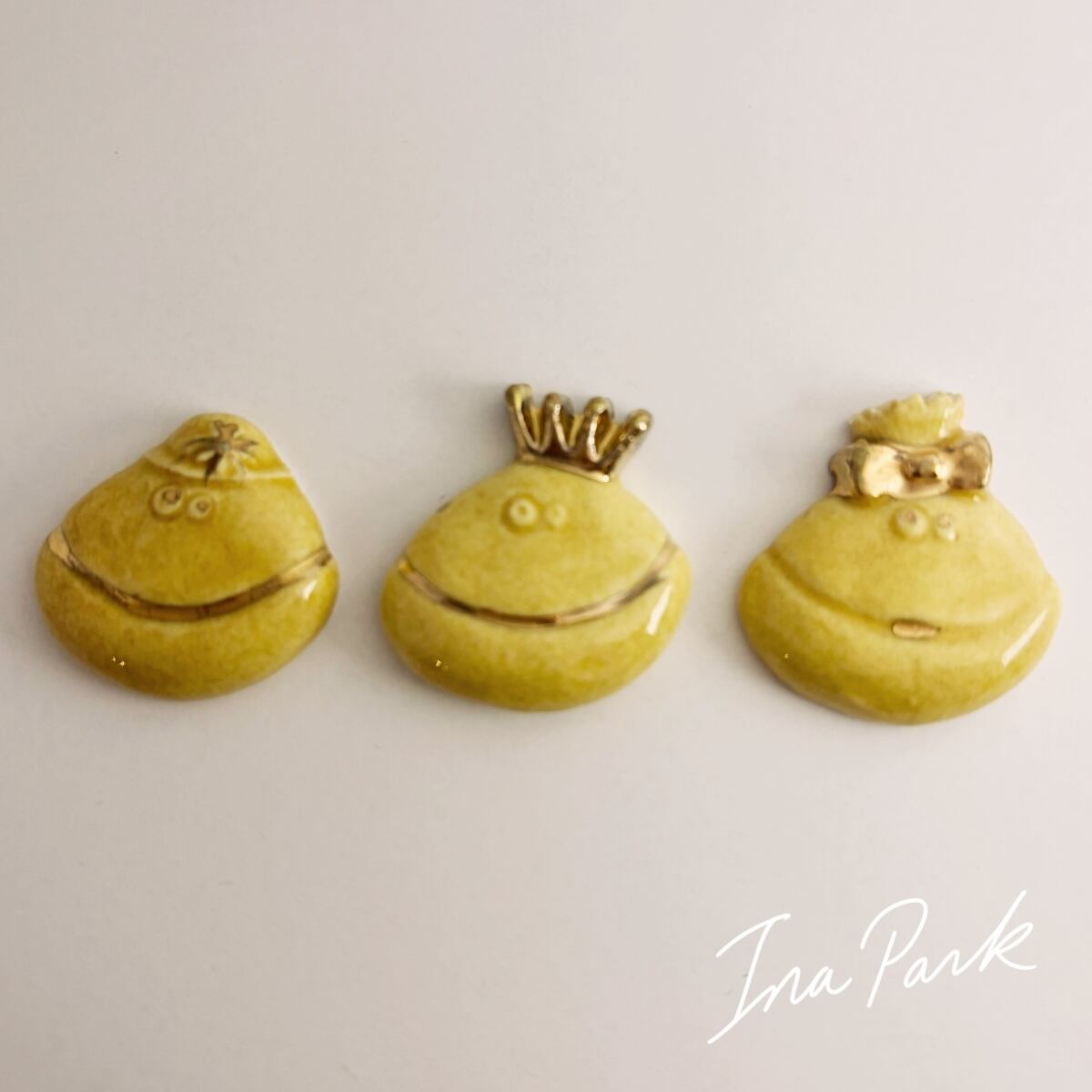 それぞれ、かぶりものや顔の一部に金彩で絵付けがされていて、とってもユーモラス。