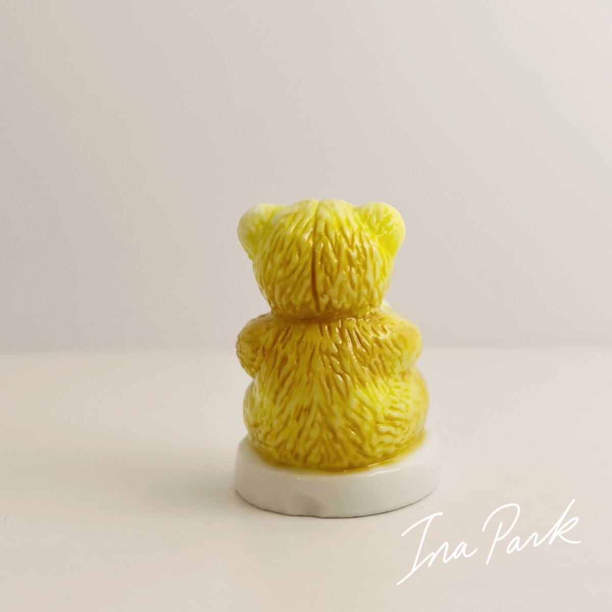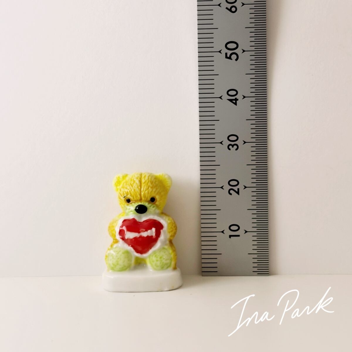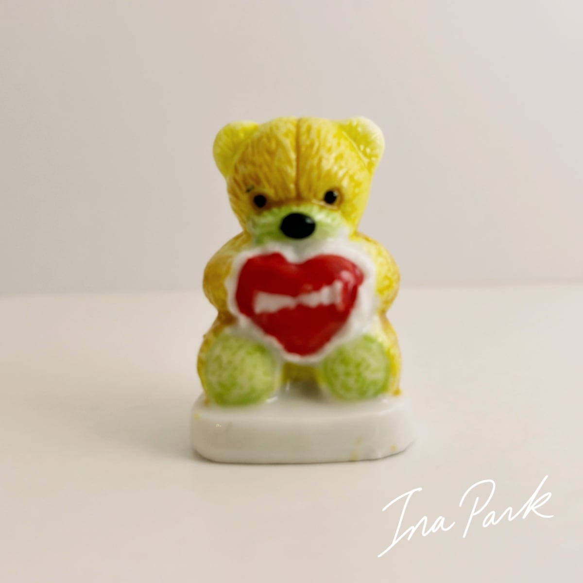 2006年 ハートクッションを持ったクマのぬいぐるみのフェーブ テディベア フェーヴ くま フランス製 ミニチュア 陶器 雑貨 置物