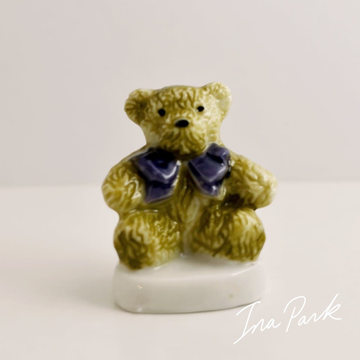 2006年 首にリボンを結んだクマのぬいぐるみのフェーブ テディベア フェーヴ くま フランス製 ミニチュア 陶器 雑貨 置物