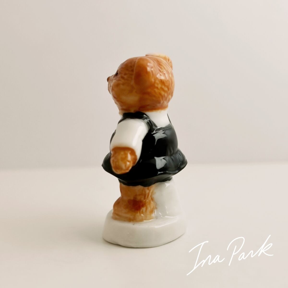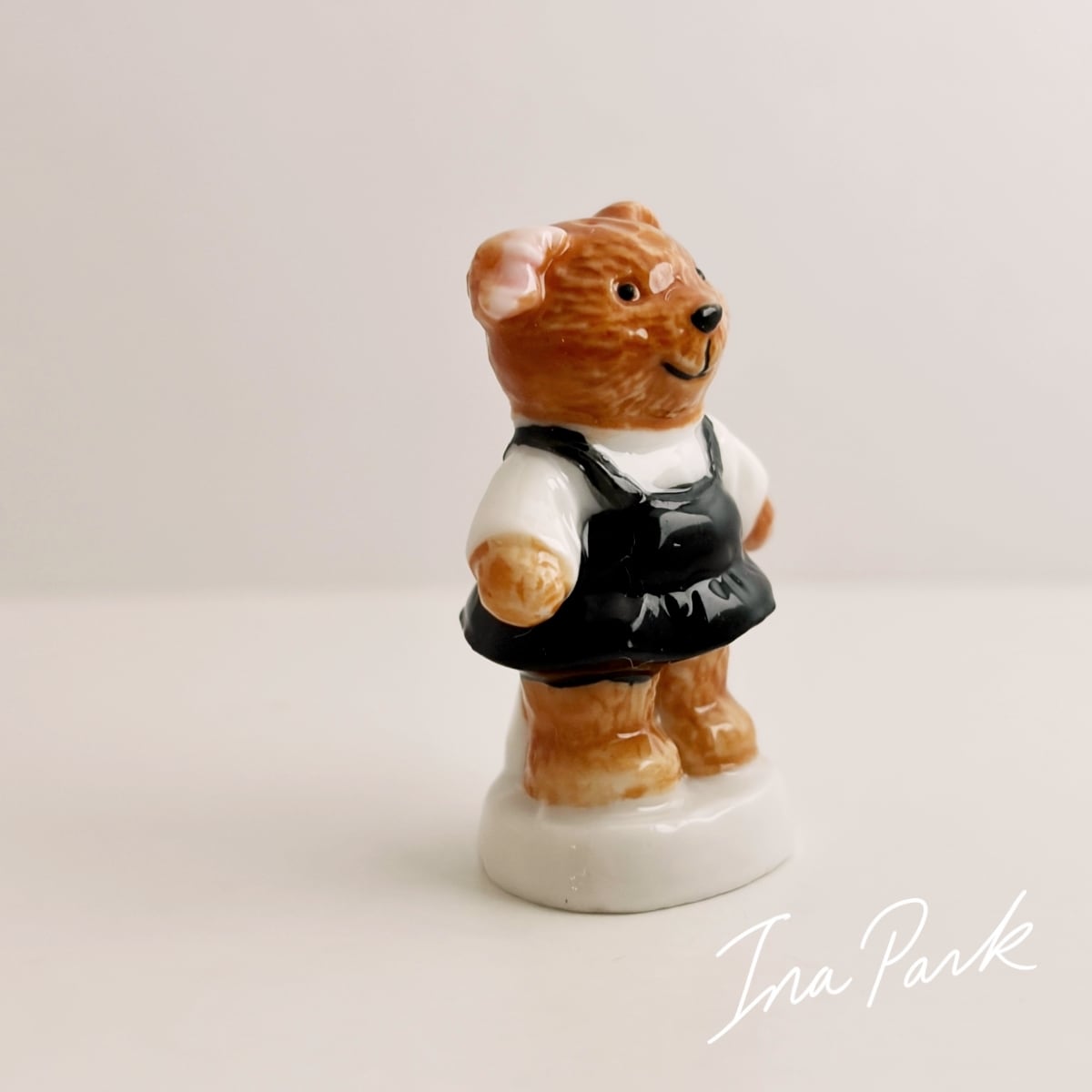 2006年 ジャンパースカートのクマのぬいぐるみのフェーブ テディベア フェーヴ くま フランス製 ミニチュア 陶器 雑貨 置物