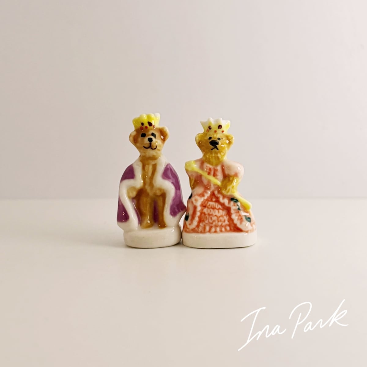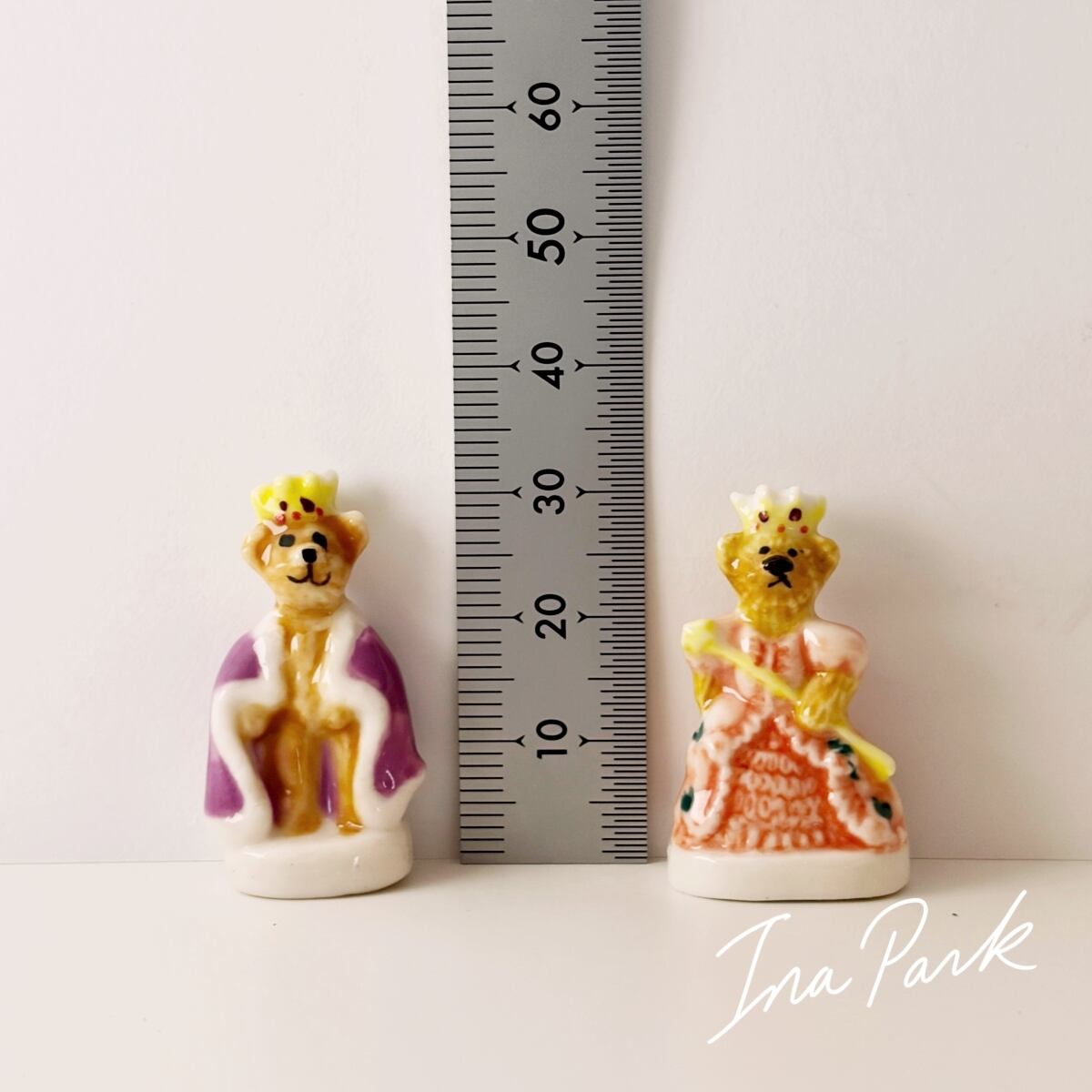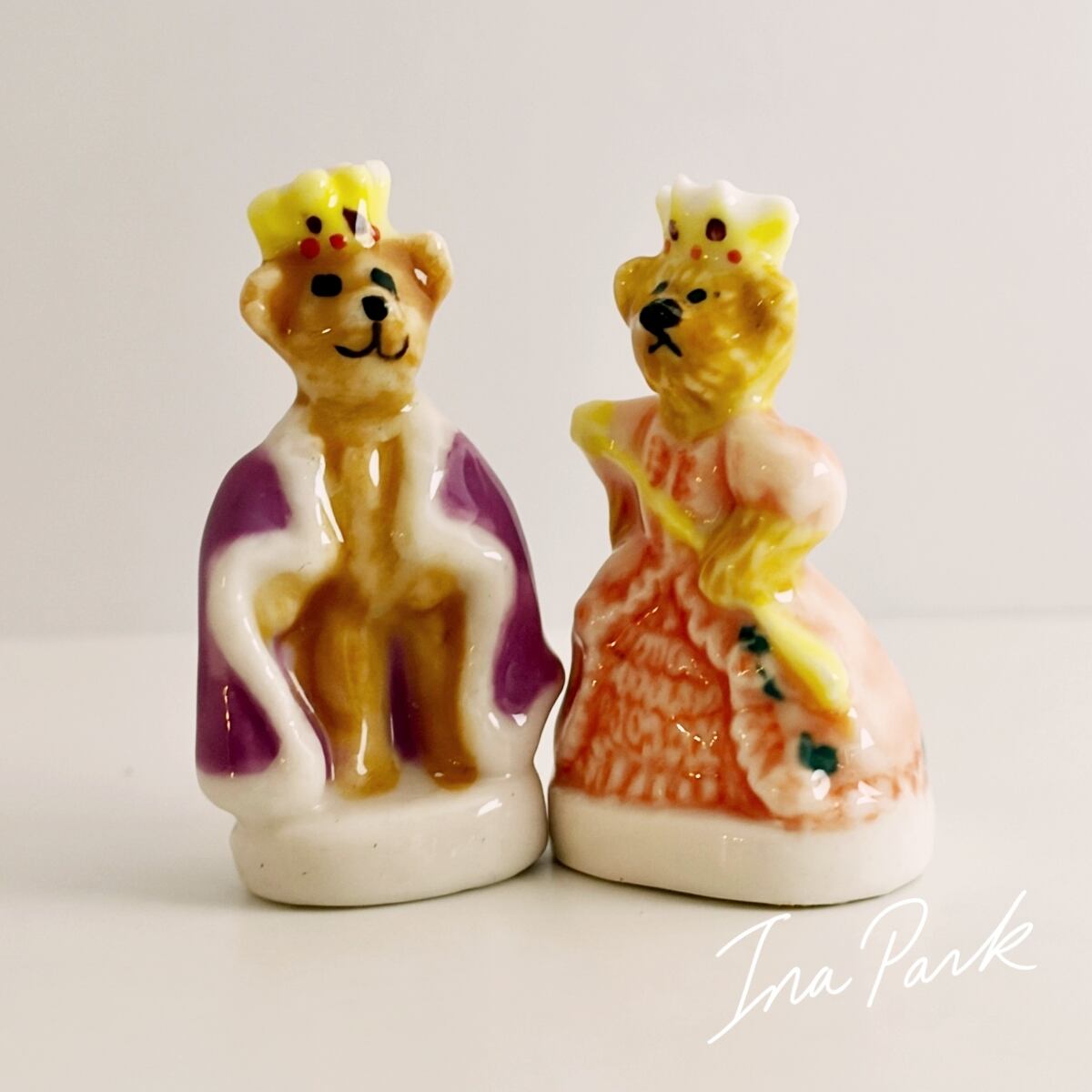 90sヴィンテージ 王様と王妃様 カップルのテディベアのフェーヴ クマのフェーブ くま フランス製 ミニチュア 陶器 雑貨 置物
