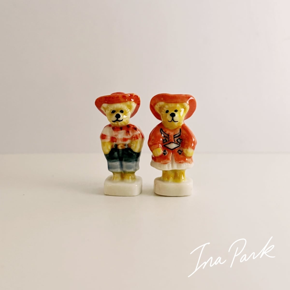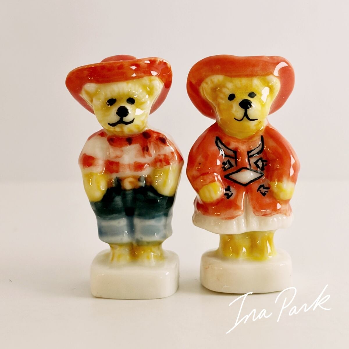 90sヴィンテージ ウエスタンなカップルのテディベアのフェーヴ クマのフェーブ くま フランス製 ミニチュア 陶器 雑貨 置物