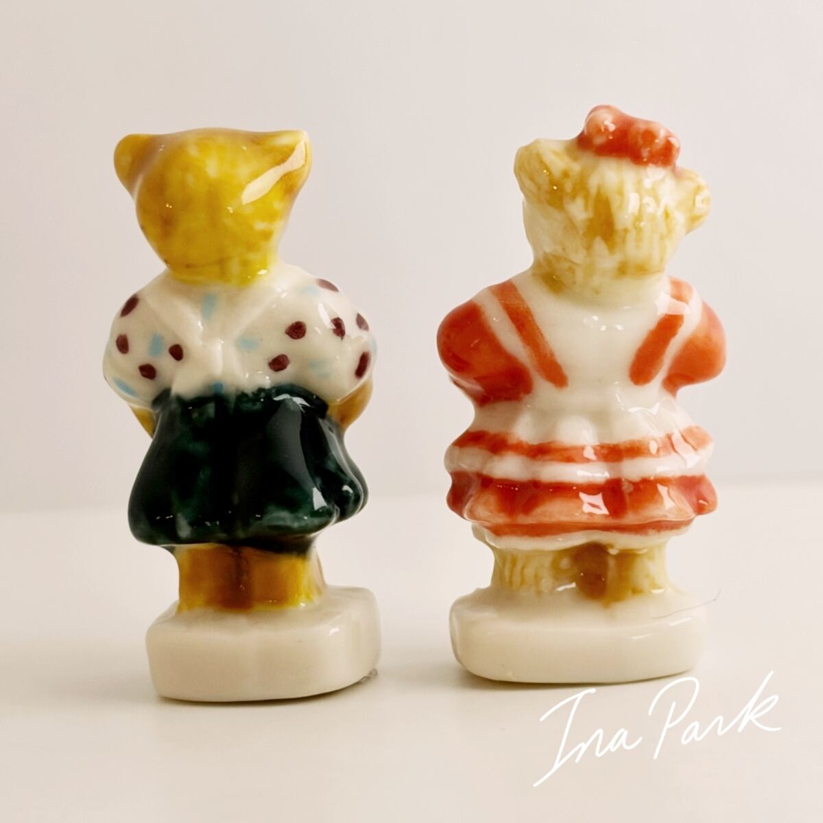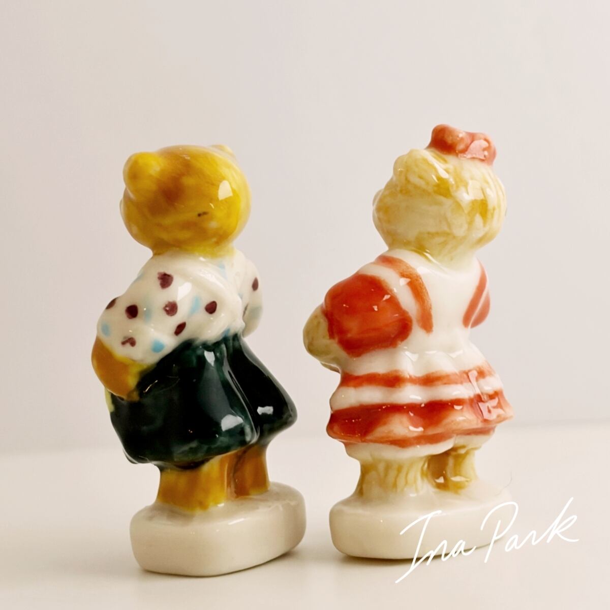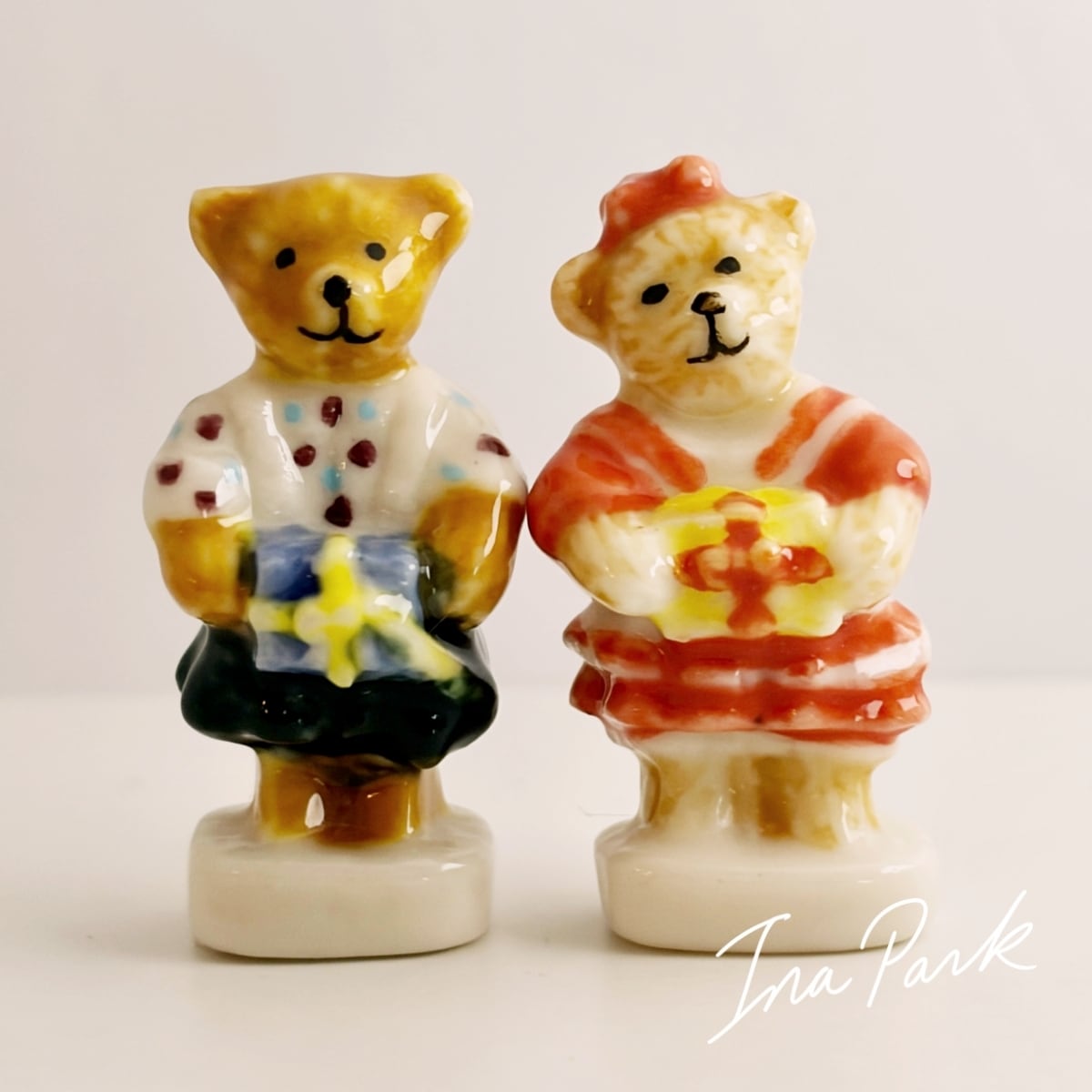 90sヴィンテージ プレゼントを持つカップルのテディベアのフェーヴ クマのフェーブ くま フランス製 ミニチュア 陶器 雑貨 置物