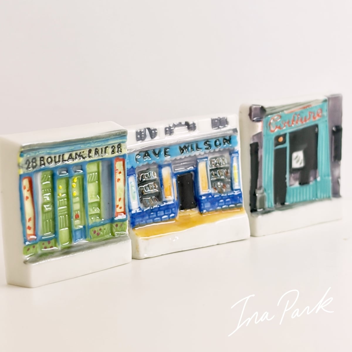 フランスの通りにあるお店の外観をイメージしたフェーブたち。