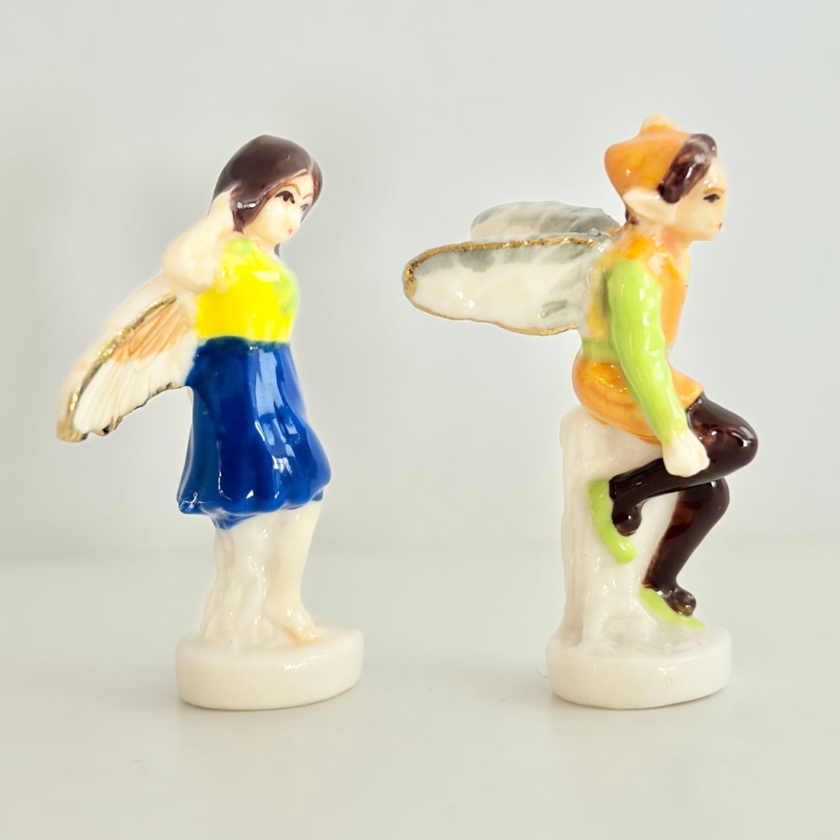 金彩の羽を持つ花の妖精・エルフのフェーヴ フェーブ フランス製 ミニチュア 陶器 雑貨 置物