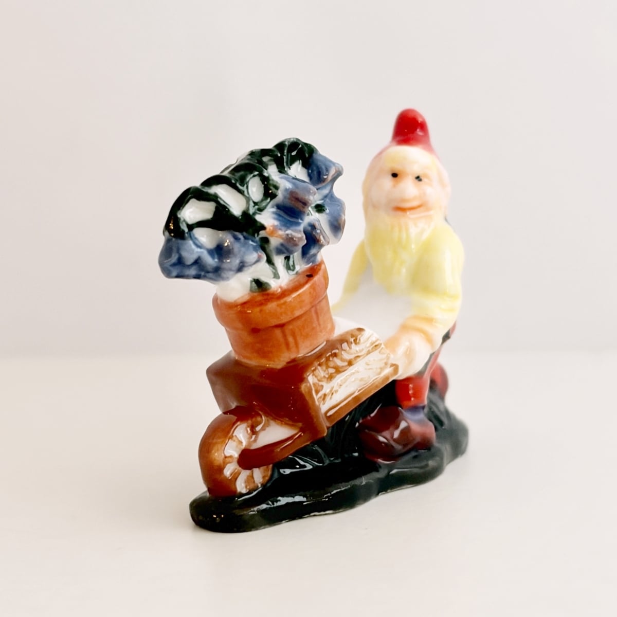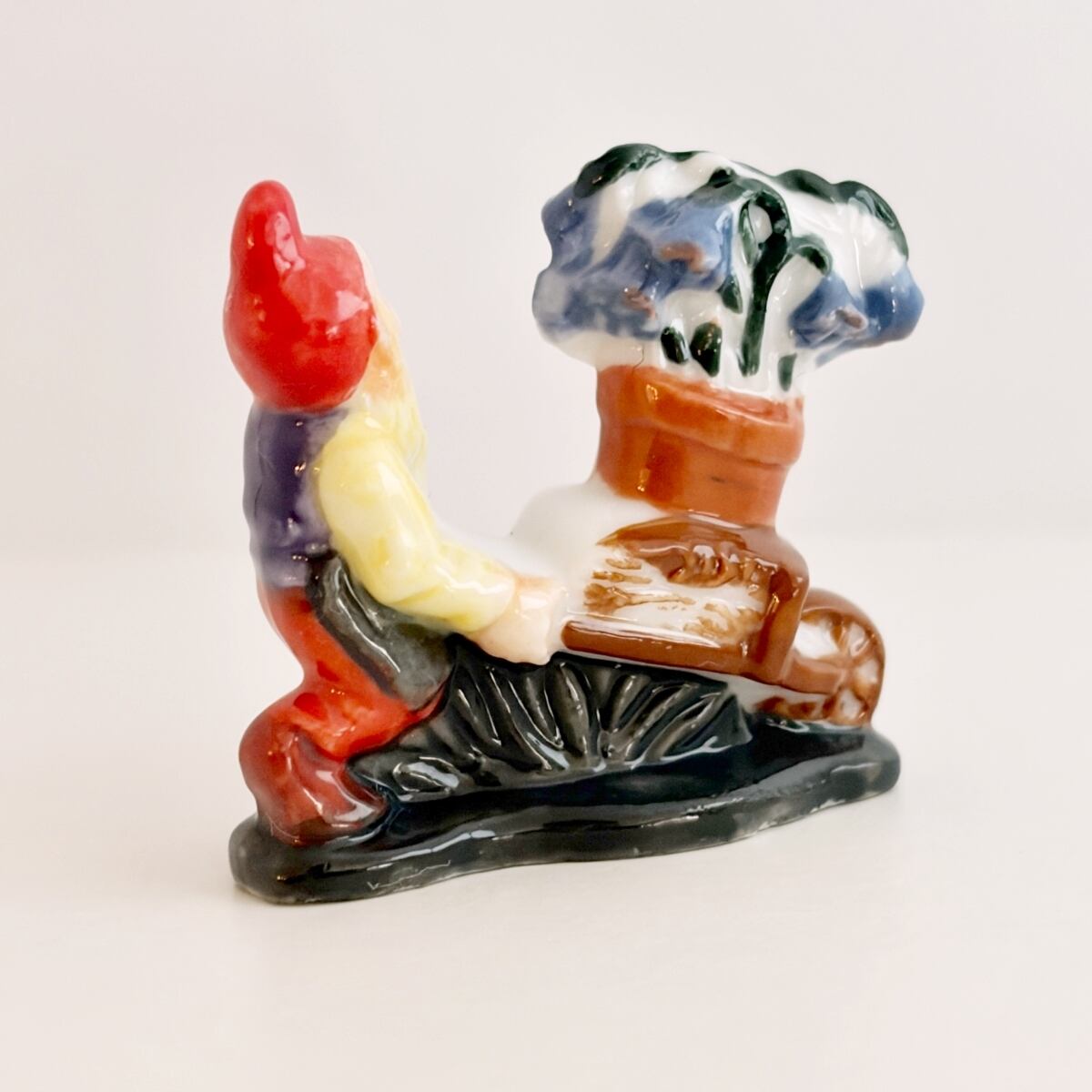花の鉢を運ぶ庭の小人のフェーヴ フェーブ フランス製 ミニチュア 陶器 雑貨 置物