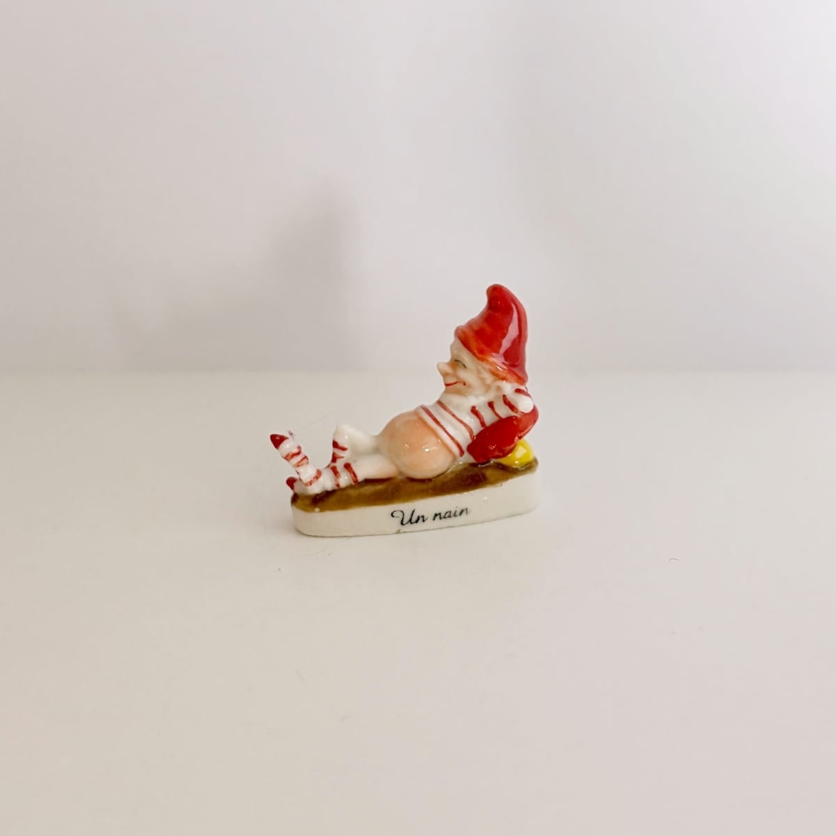 くつろぐドワーフのフェーヴ 妖精たちの国 フェーブ フランス製 ミニチュア 陶器 雑貨 置物
