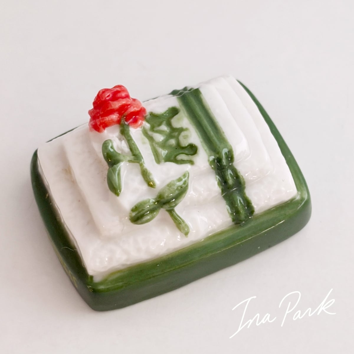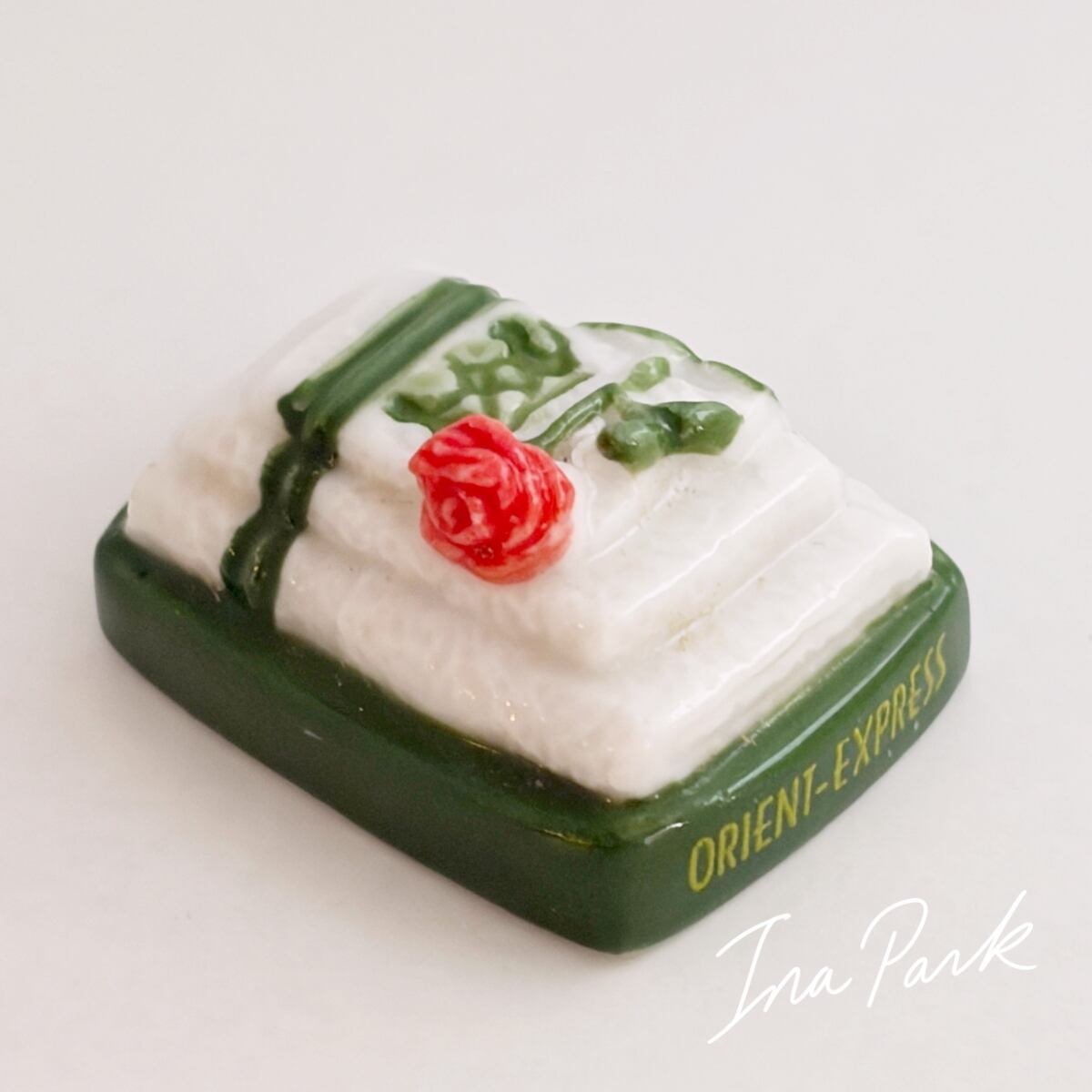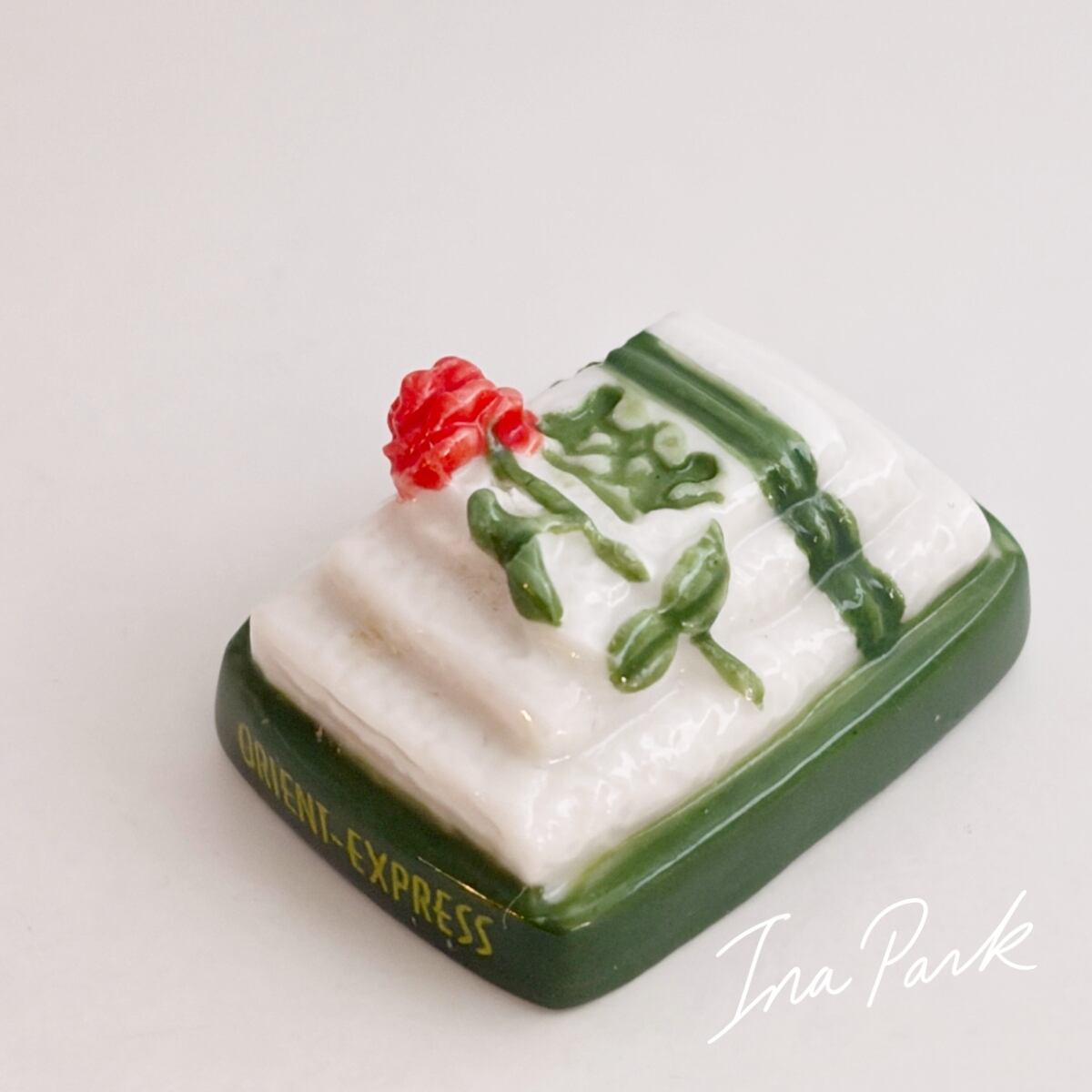 薔薇があつらえられたアメニティのタオル フェーヴ オリエント急行 フェーブ フランス製 ミニチュア 陶器 雑貨 置物