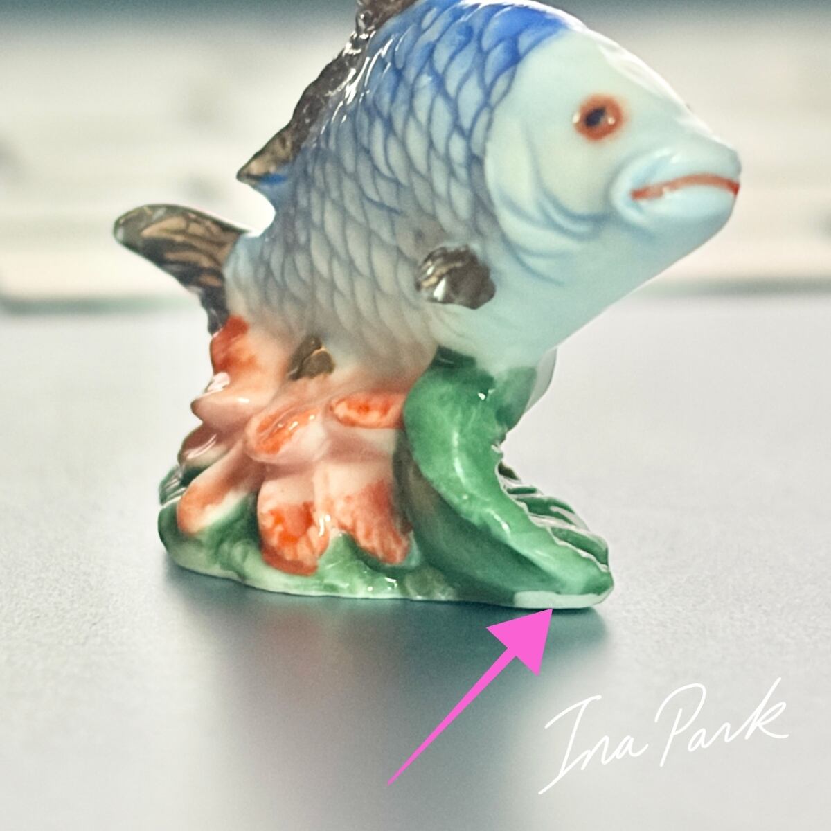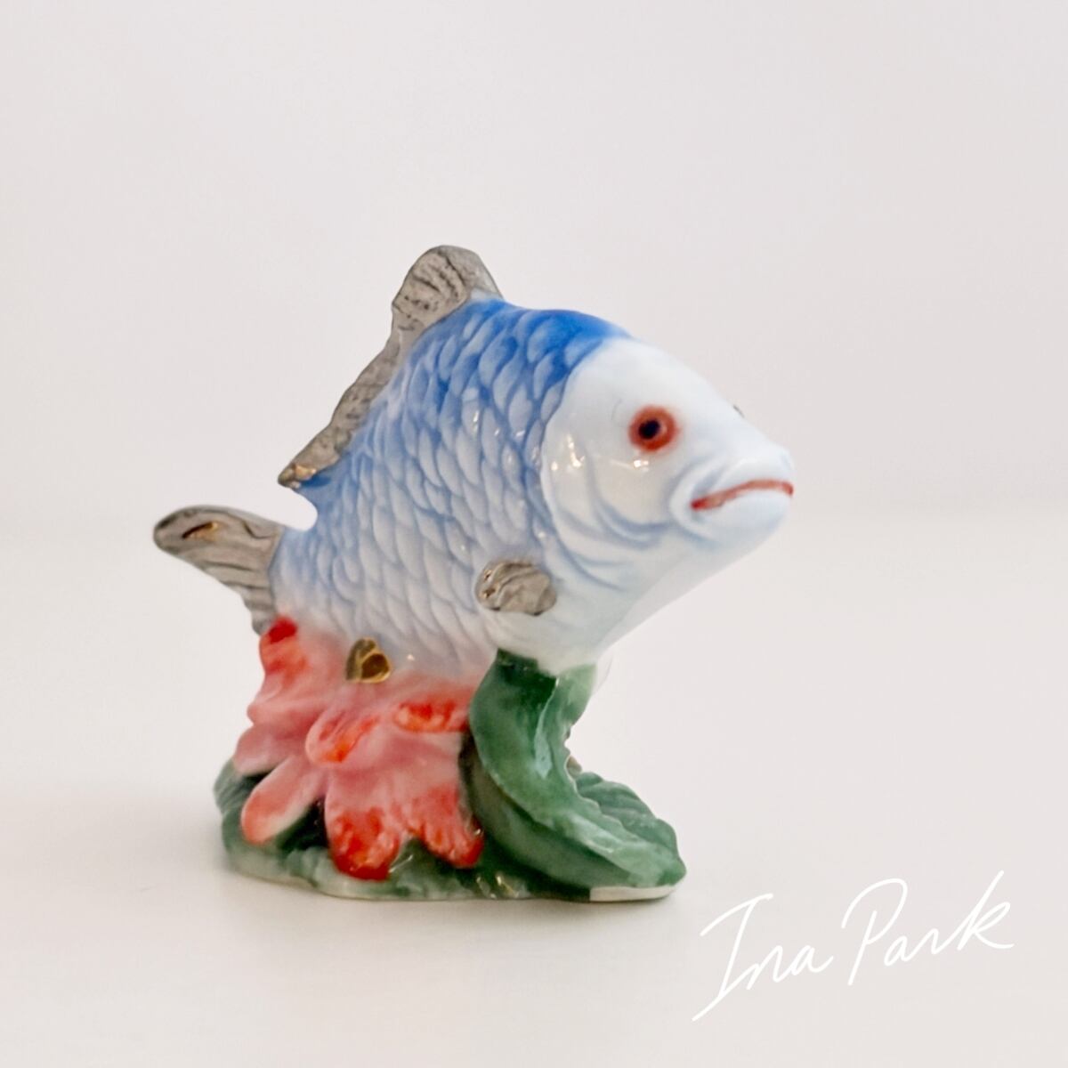 蓮と魚 フェーヴ フランス製 ミニチュア 陶器 雑貨 置物