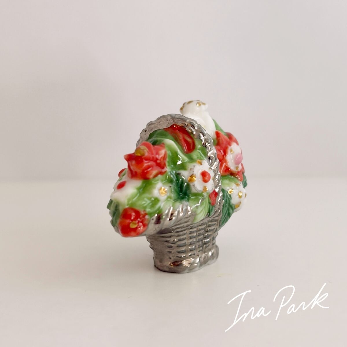 花いっぱいの王様のパニエ バスケット フェーヴ フェーブ フランス製 ミニチュア 陶器 雑貨 置物