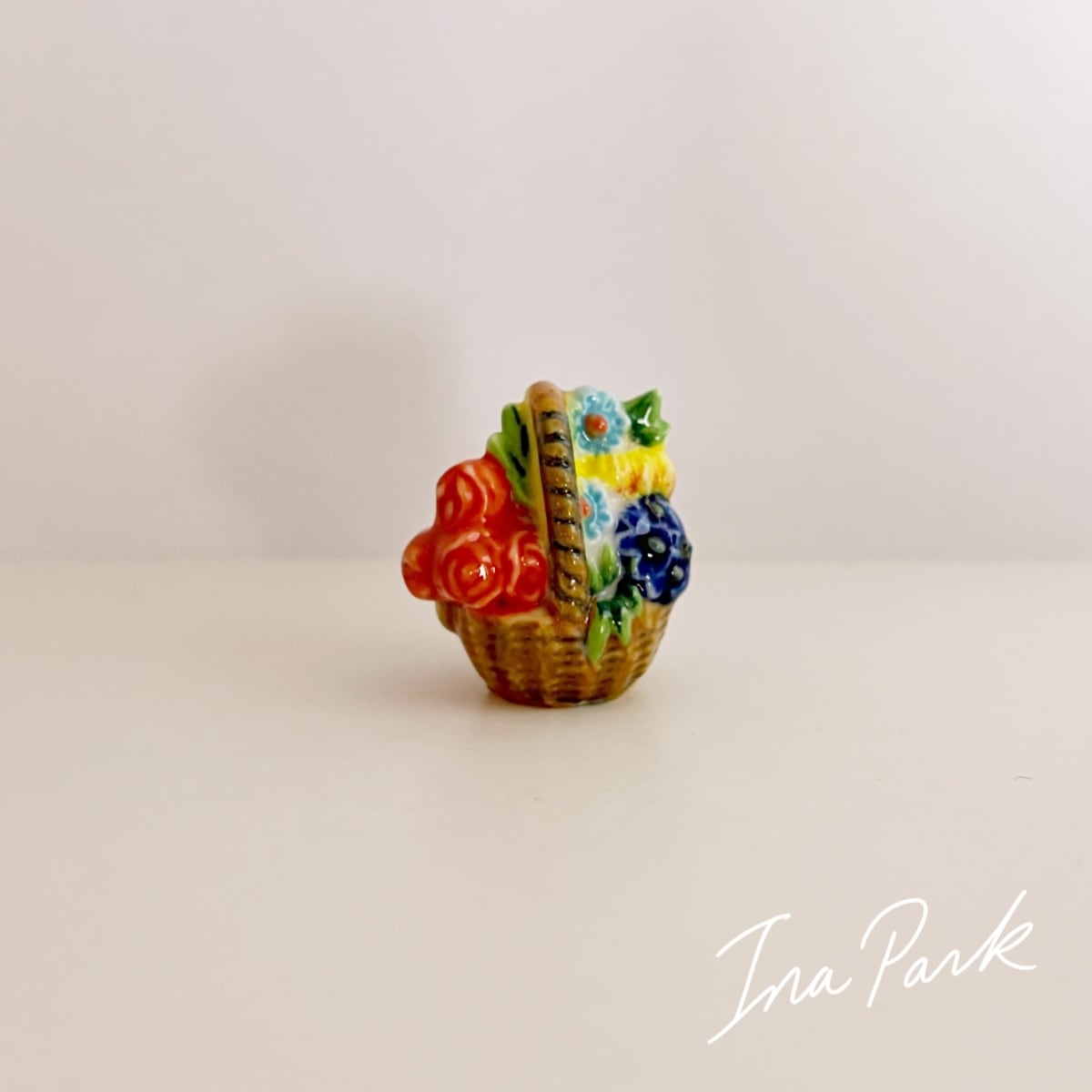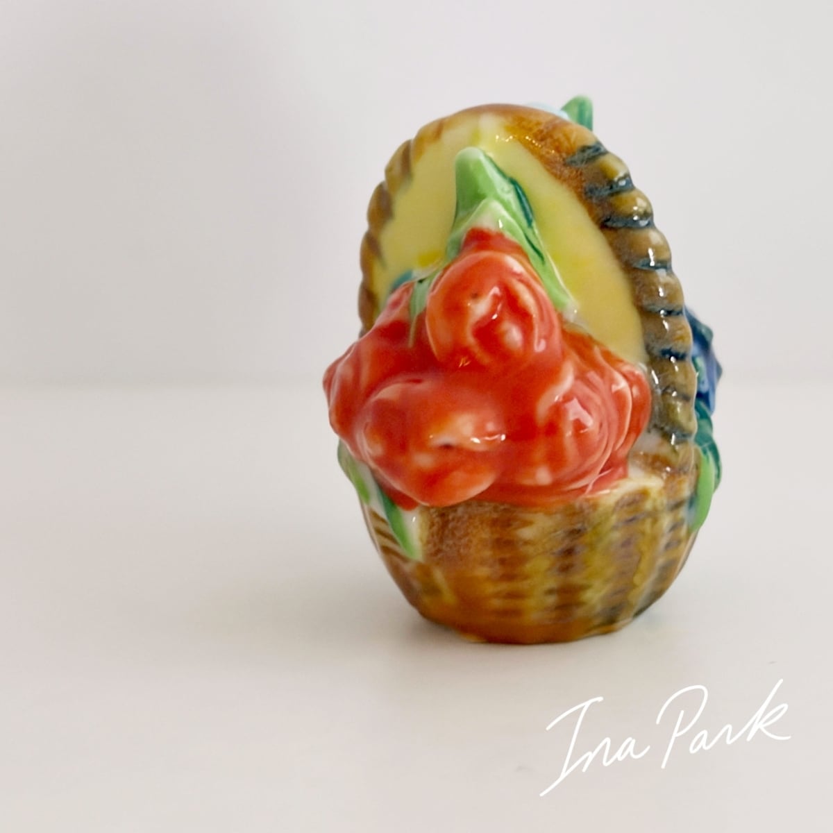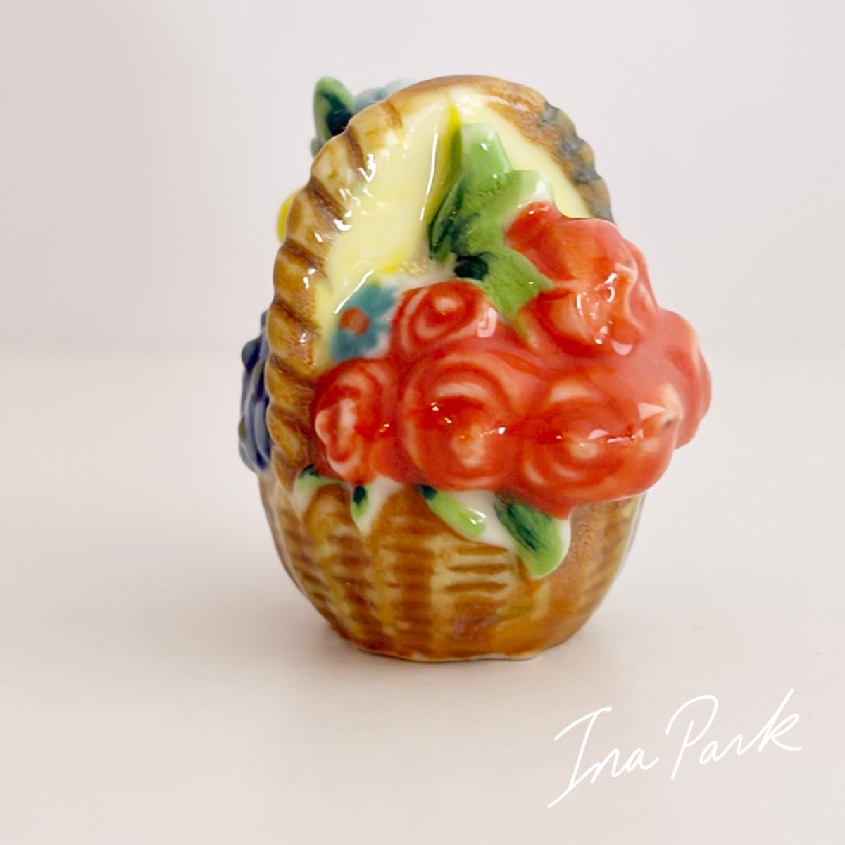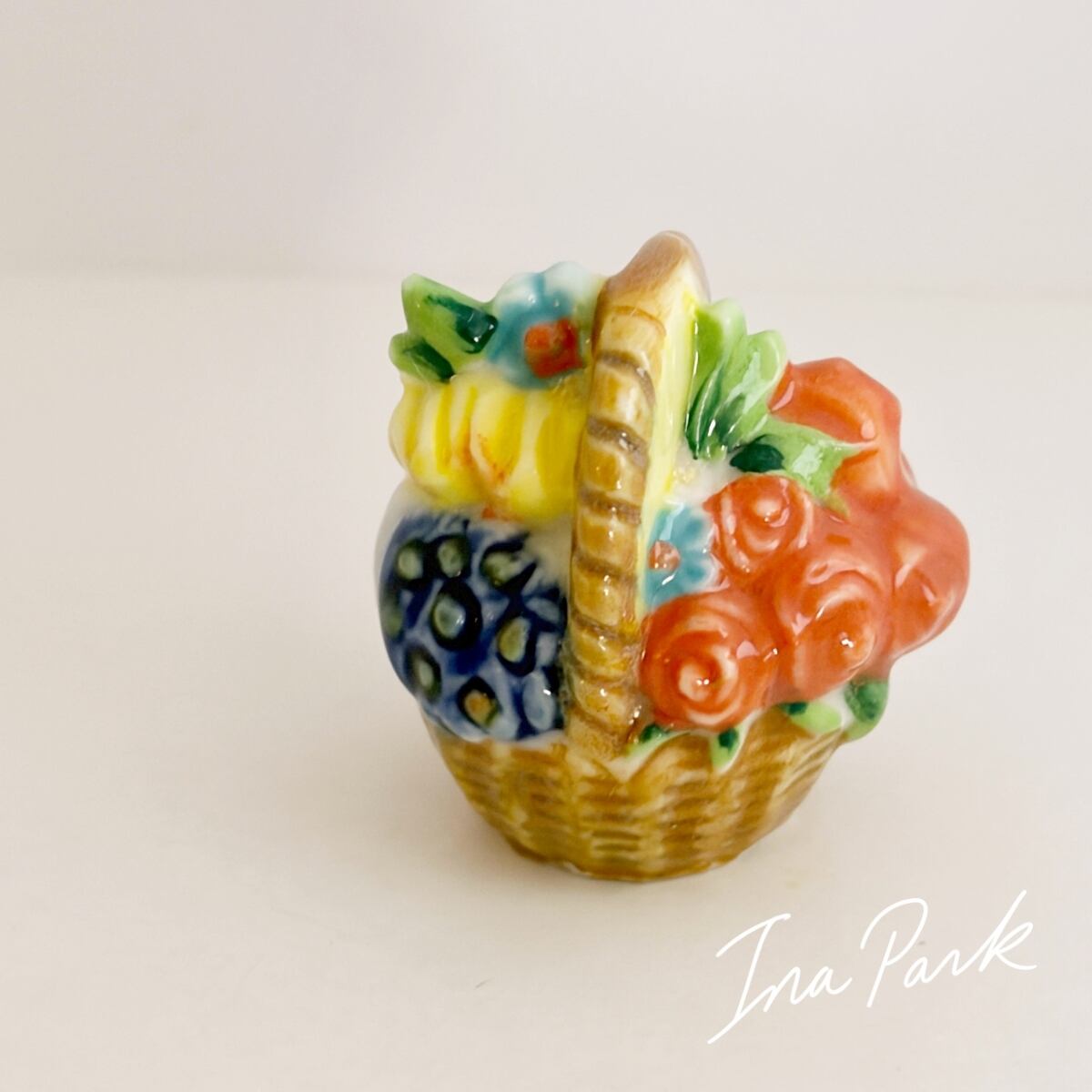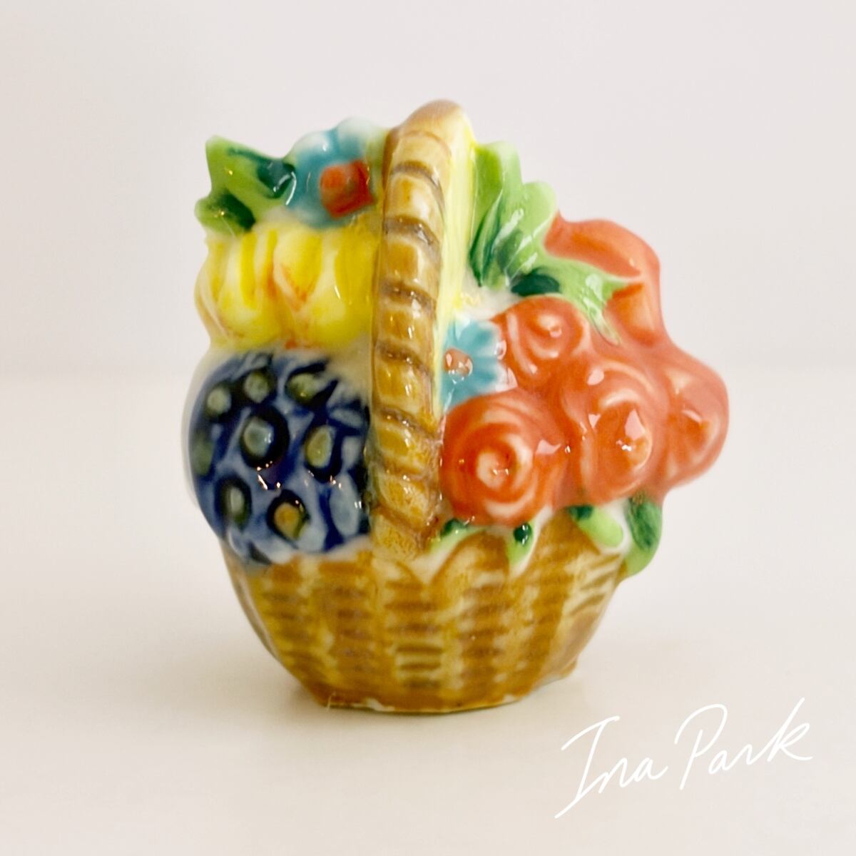 色とりどりの花のパニエ 薔薇 バスケット フェーヴ フェーブ フランス製 ミニチュア 陶器 雑貨 置物