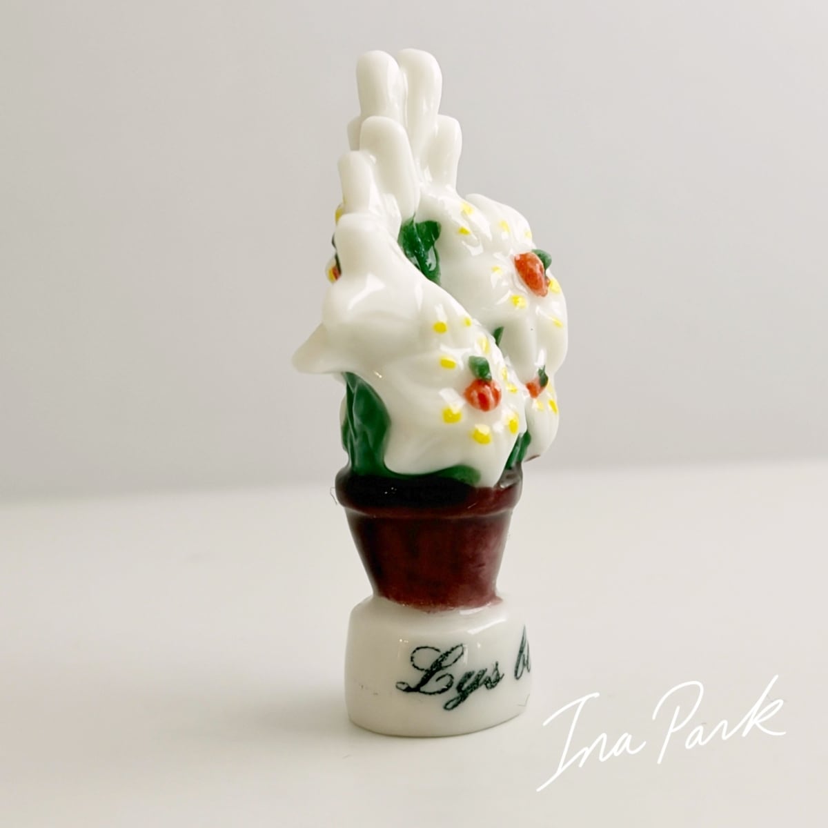 ⚠︎有 白い百合の鉢植え フェーヴ フェーブ フランス製 ミニチュア 陶器 雑貨 置物