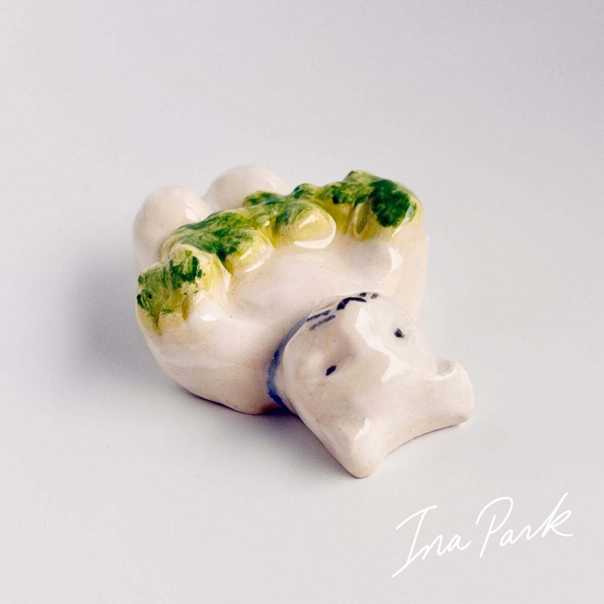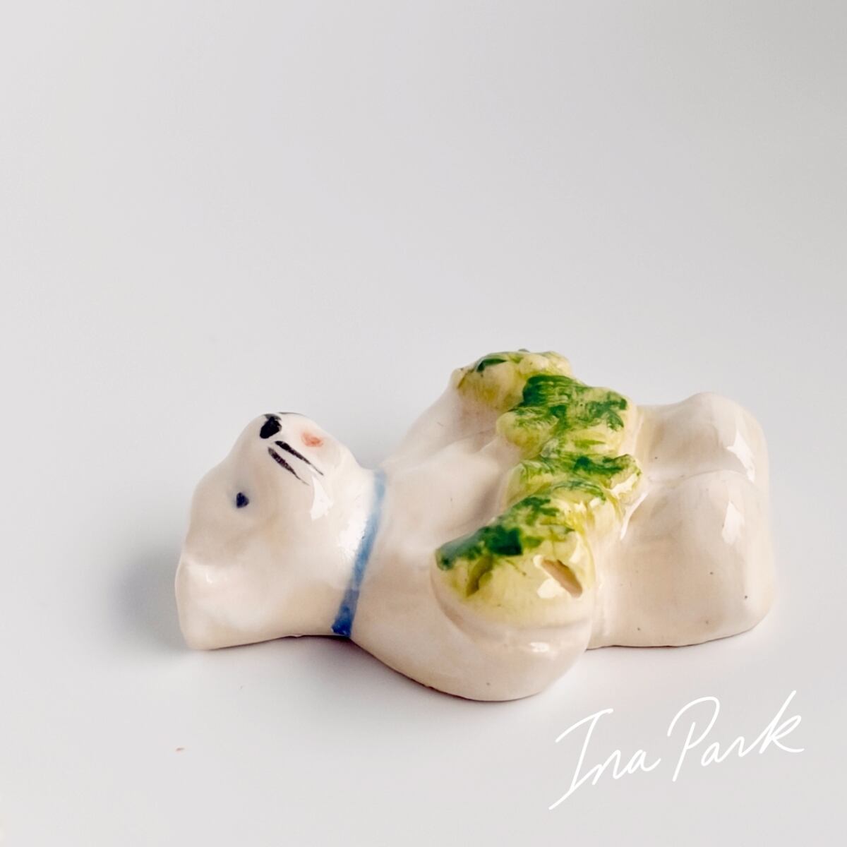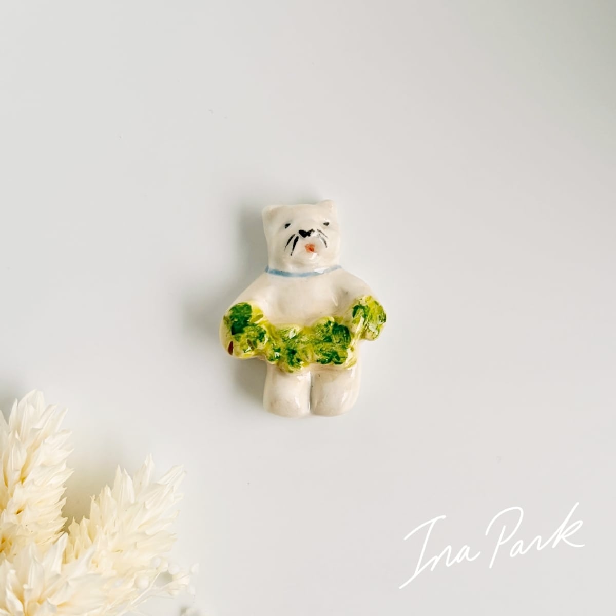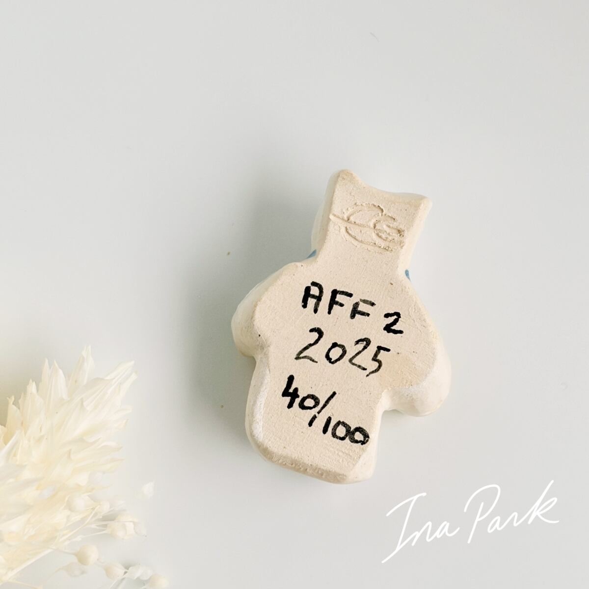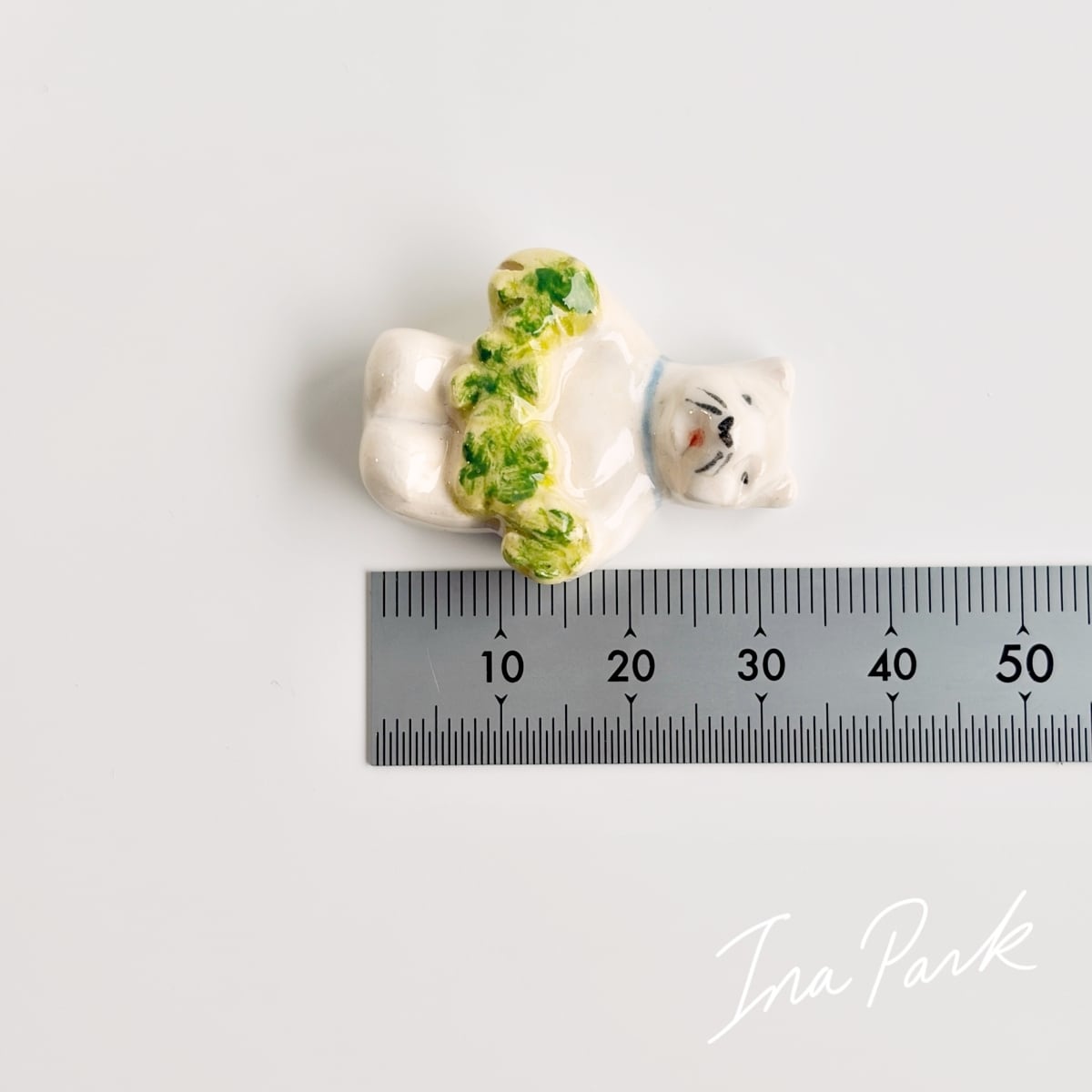 エリック・エ・ジル2025 四葉のクローバーを持った猫のフェーヴ 白ねこ フランス製 陶器 Eric et Gilles