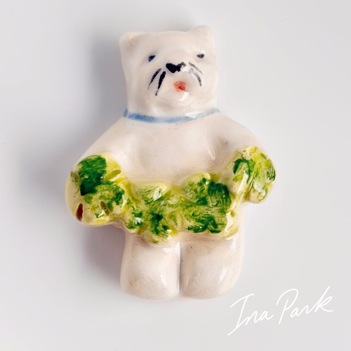 こちらはなんとも言えない表情のネコが、つなげたクローバーを持っている愛らしいシリーズ。それぞれ100個のみ生産されました。
