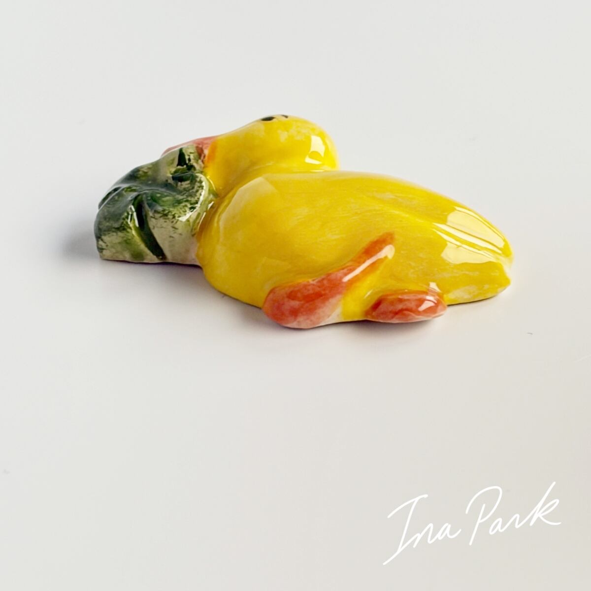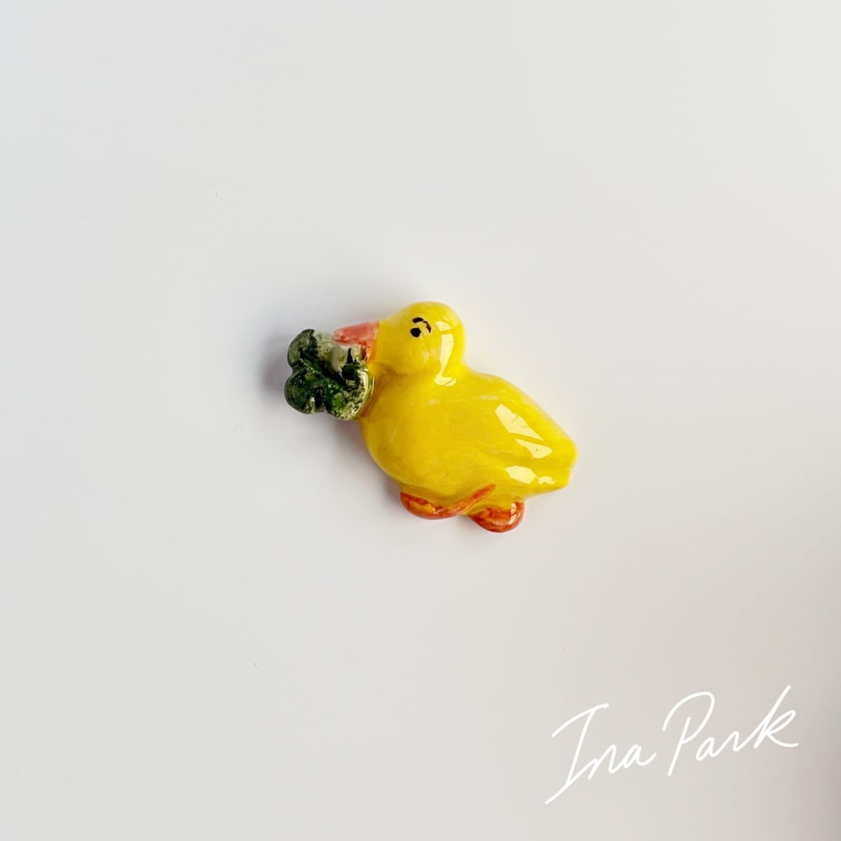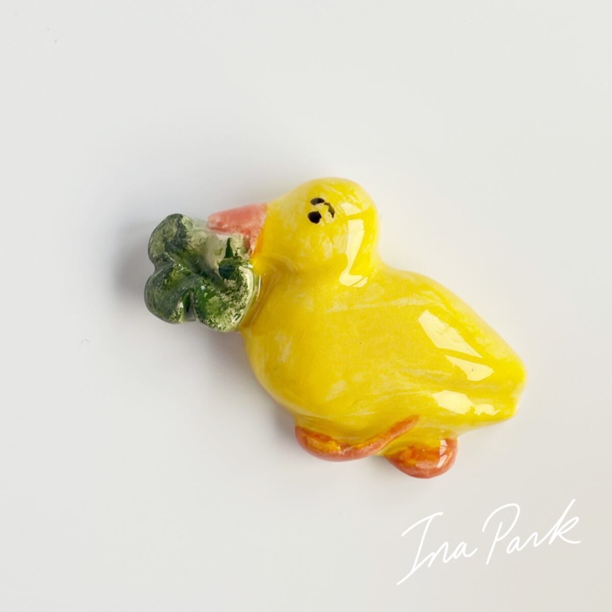 エリック・エ・ジル アヒルの子と四葉のクローバーのフェーヴ Eric et Gilles フェーブ フランス製 ミニチュア 陶器 雑貨 置物