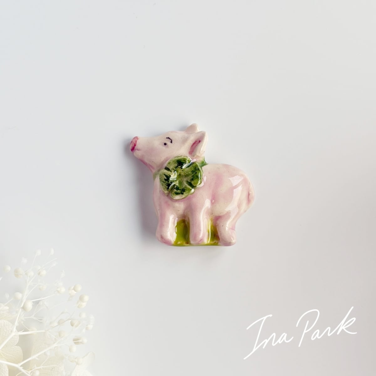エリック・エ・ジル ぶたの子と四葉のクローバーのフェーヴ Eric et Gilles フェーブ フランス製 ミニチュア 陶器 雑貨 ブタ 豚