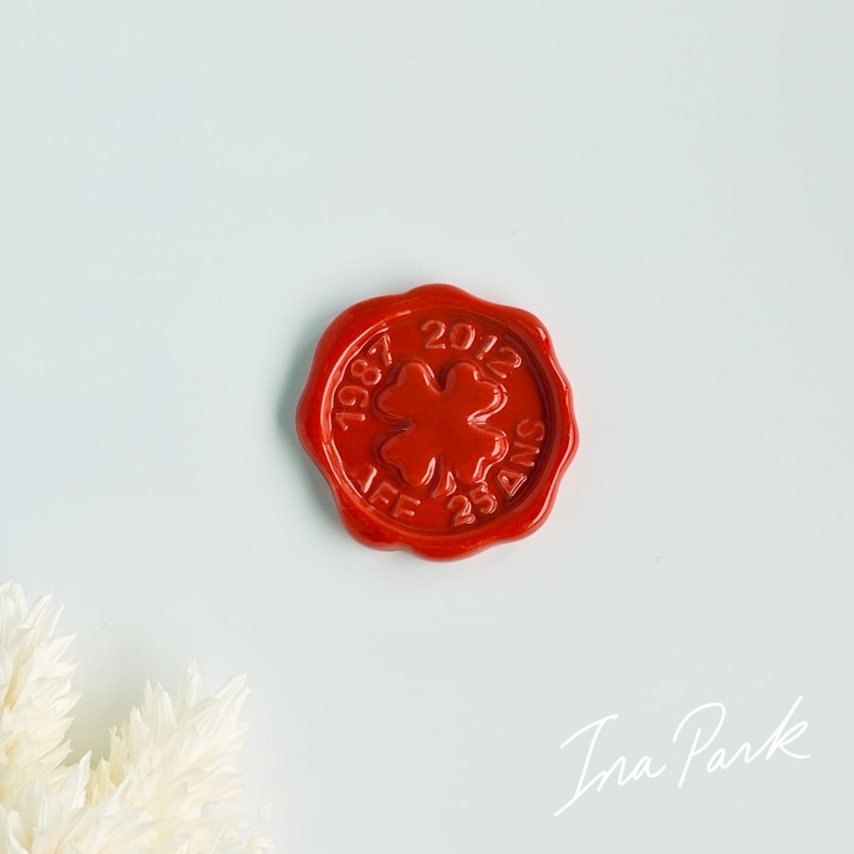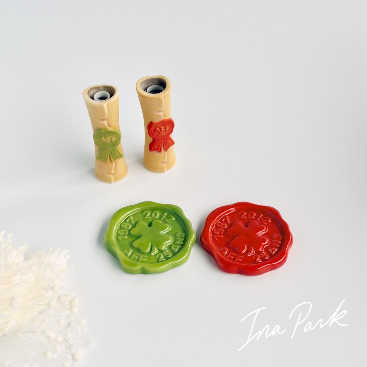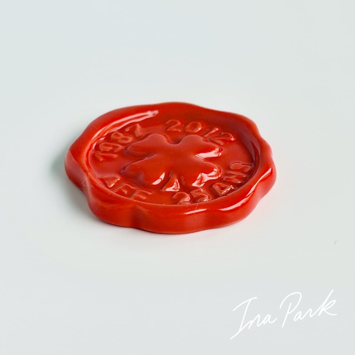 レアフェーブ AFF 25周年記念 四葉のクローバーの封蝋 幸運のシンボル フェーヴ フランス製 ミニチュア 陶器