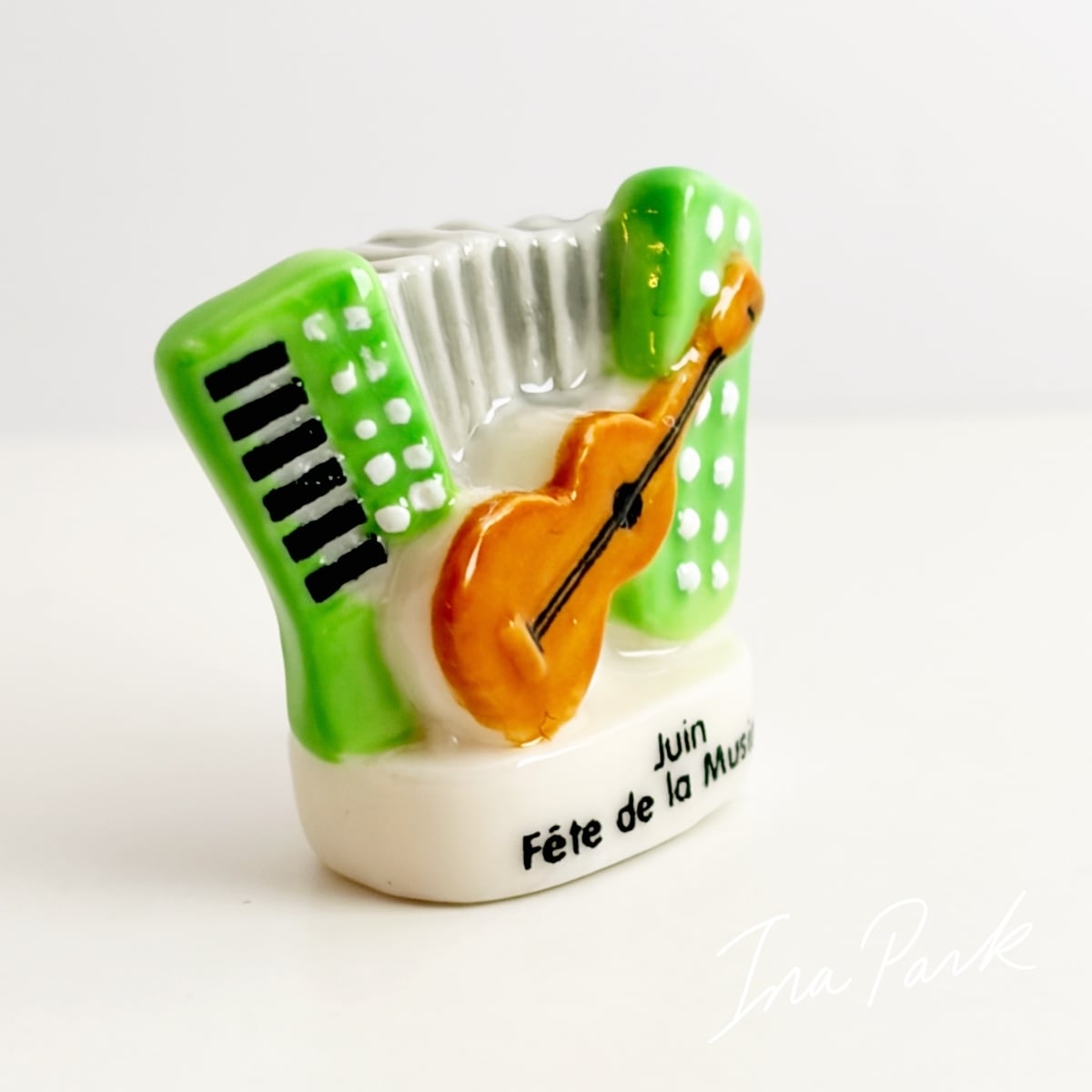 6月の音楽祭 アコーディオンとバイオリンの楽器のフェーヴ フェーブ フランス製 ミニチュア 陶器 雑貨 置物