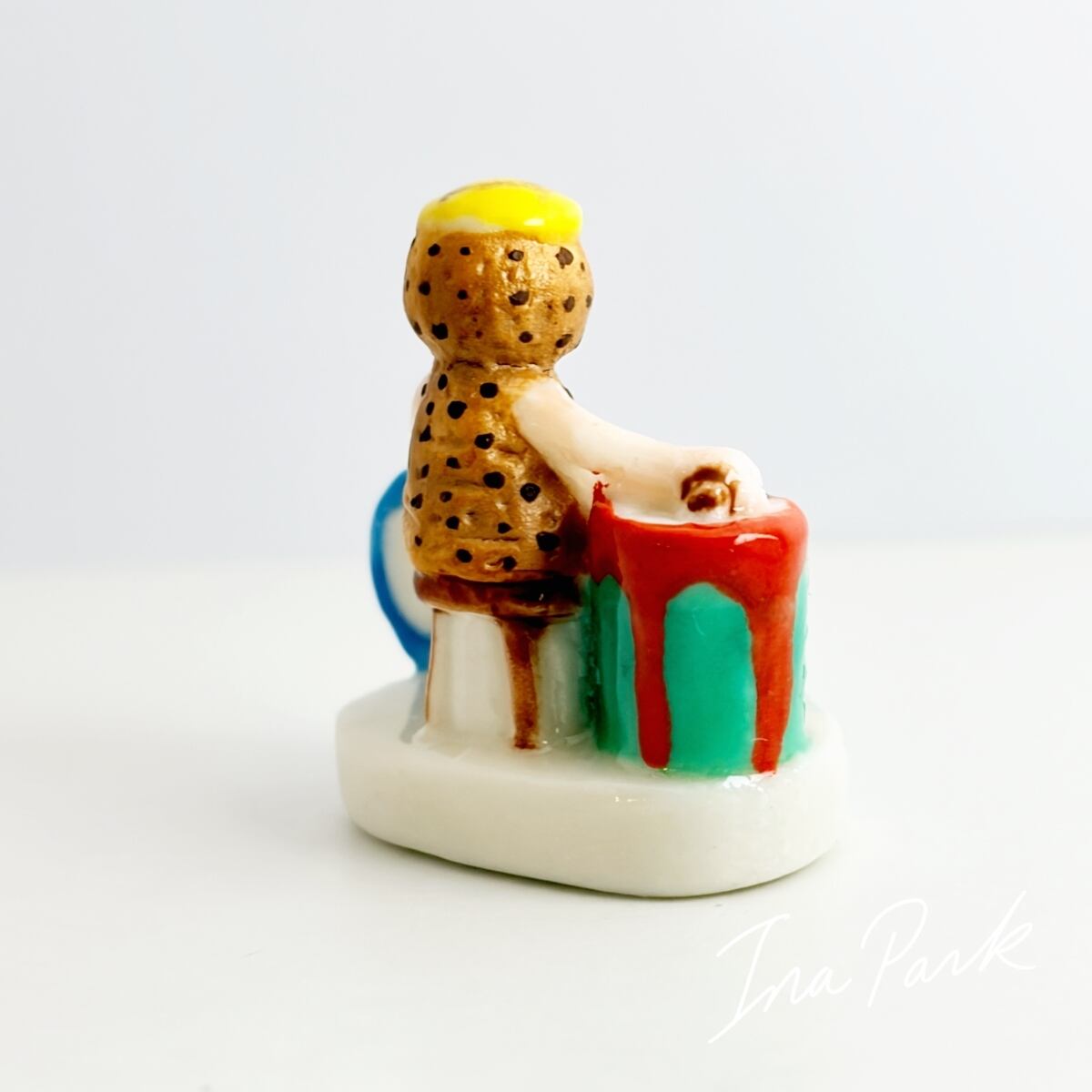 ドラムを演奏するワインコルクマンのフェーヴ オーケストラ フェーブ フランス製 ミニチュア 陶器 音楽