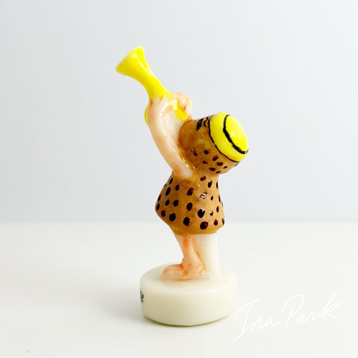 トランペットを演奏するワインコルクマンのフェーヴ 楽器 フェーブ フランス製 ミニチュア 陶器 音楽