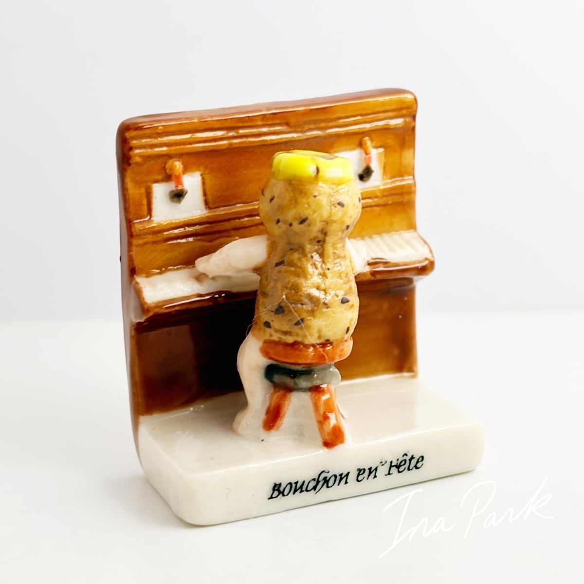 ピアノ演奏するワインコルクマンのフェーヴ 楽器 フェーブ フランス製 ミニチュア 陶器 音楽