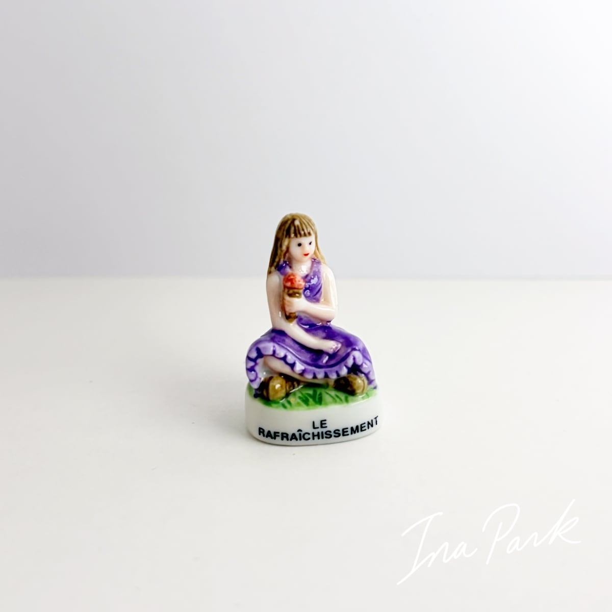 アイスを食べる女の子 村の音楽祭のフェーヴ フェーブ フランス製 ミニチュア 陶器 雑貨 置物