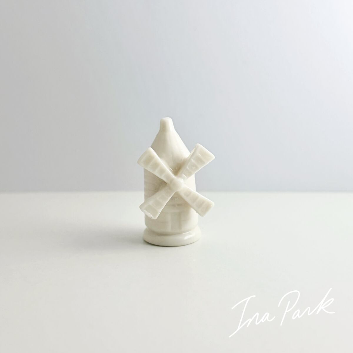 ☆白い風車のフェーヴ 建物 フェーブ フランス製 ミニチュア 陶器 雑貨 置物