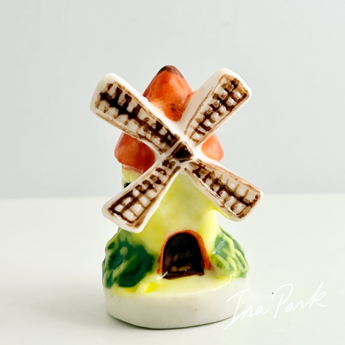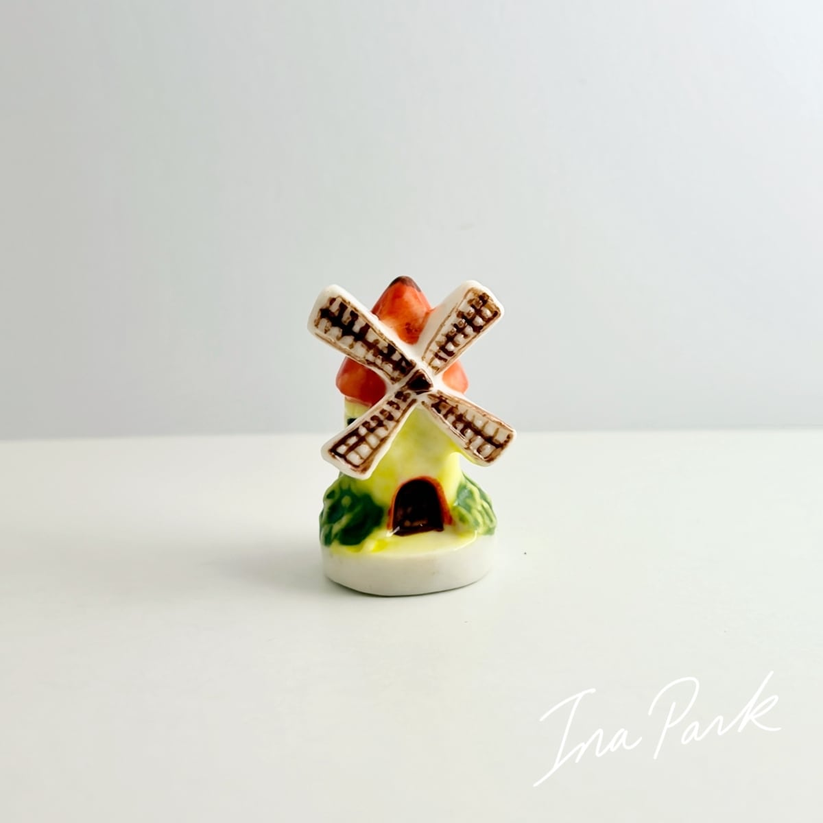 赤い屋根の風車のフェーヴ フェーブ フランス製 ミニチュア 陶器 建築