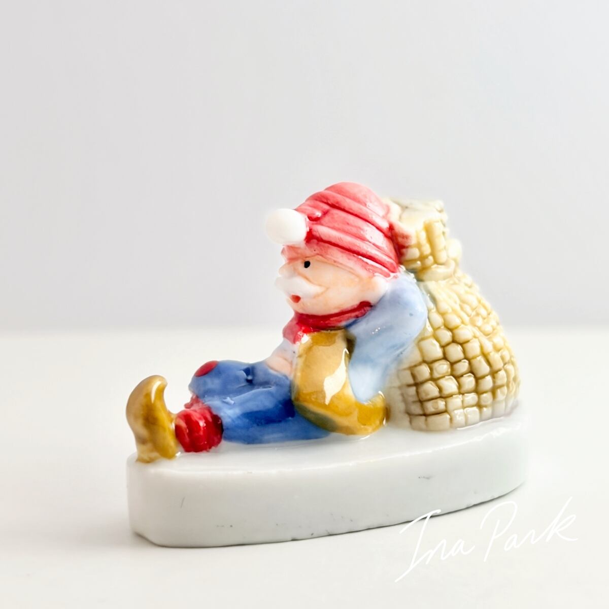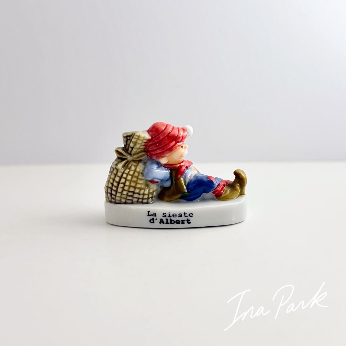 昼寝するアルベール 小さな風車と粉屋さん フェーヴ フェーブ フランス製 ミニチュア 陶器 パン